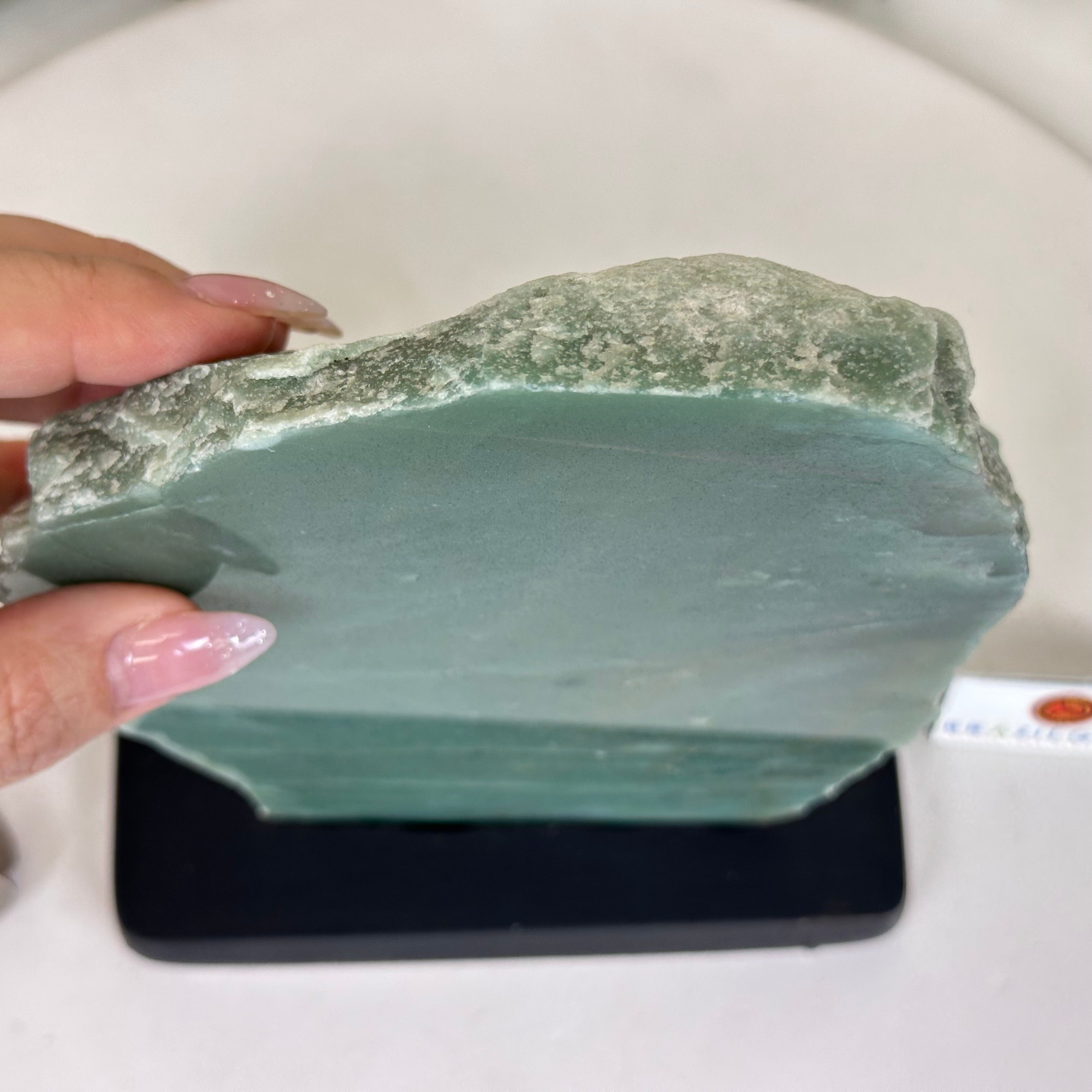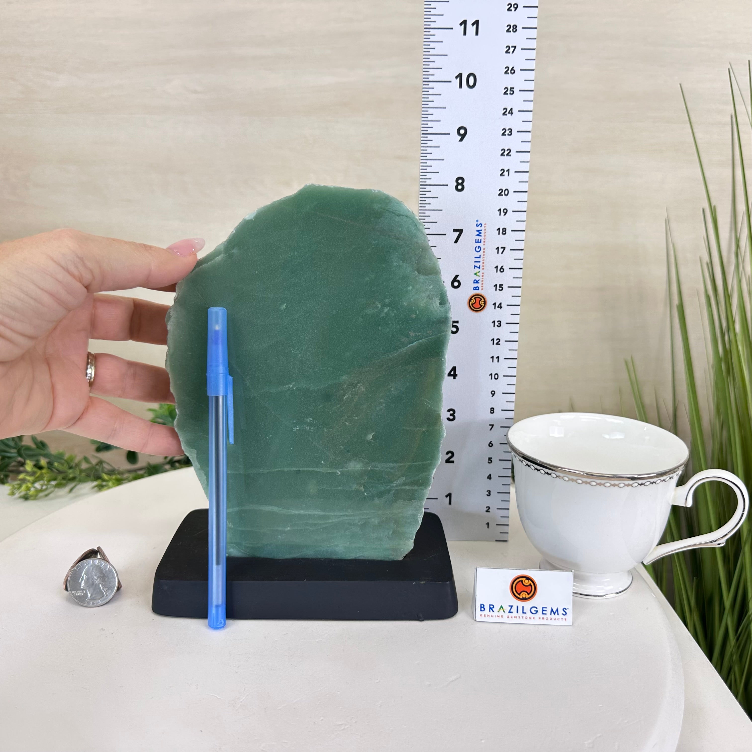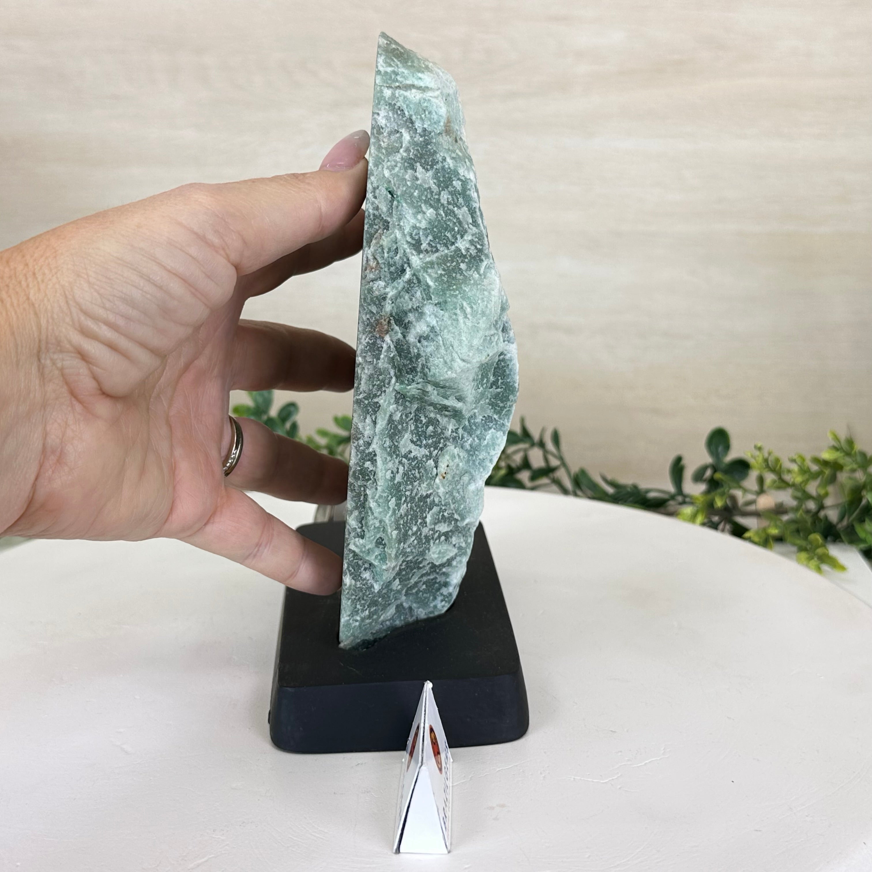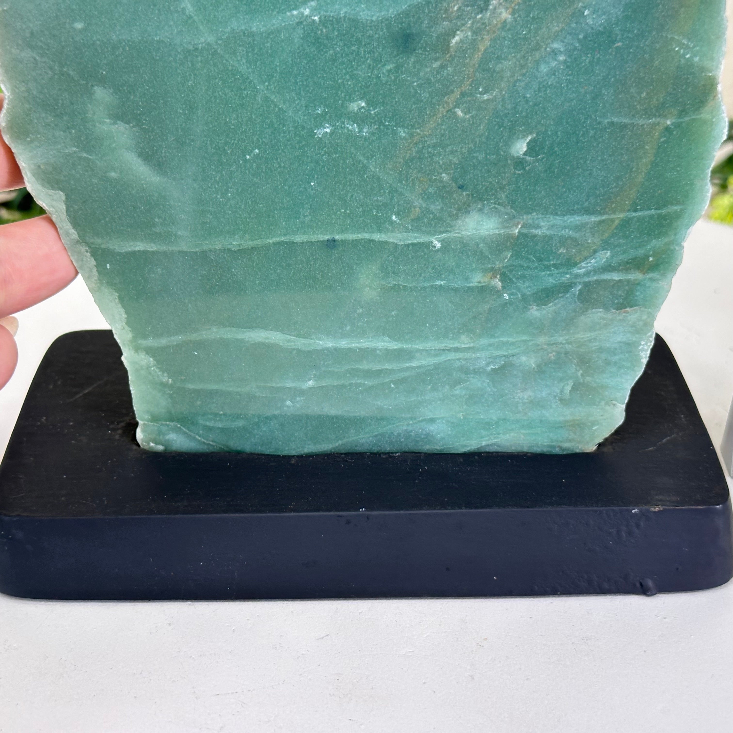 Disclaimer: This is a natural gemstone crystal sold by Brazil Gems® as is and as you see it in its images. It is the exact piece you will receive. It may contain natural imperfections as well as imperfections, broken edges and scratches from the extraction, slicing, polishing and mounting processes. The gemstone slice has been glued into its wood base. The wood base has been painted black. At Brazil Gems® we make every effort to get measurements as exact as possible but they are done by human hands and eyes and therefore may have minor discrepancies.