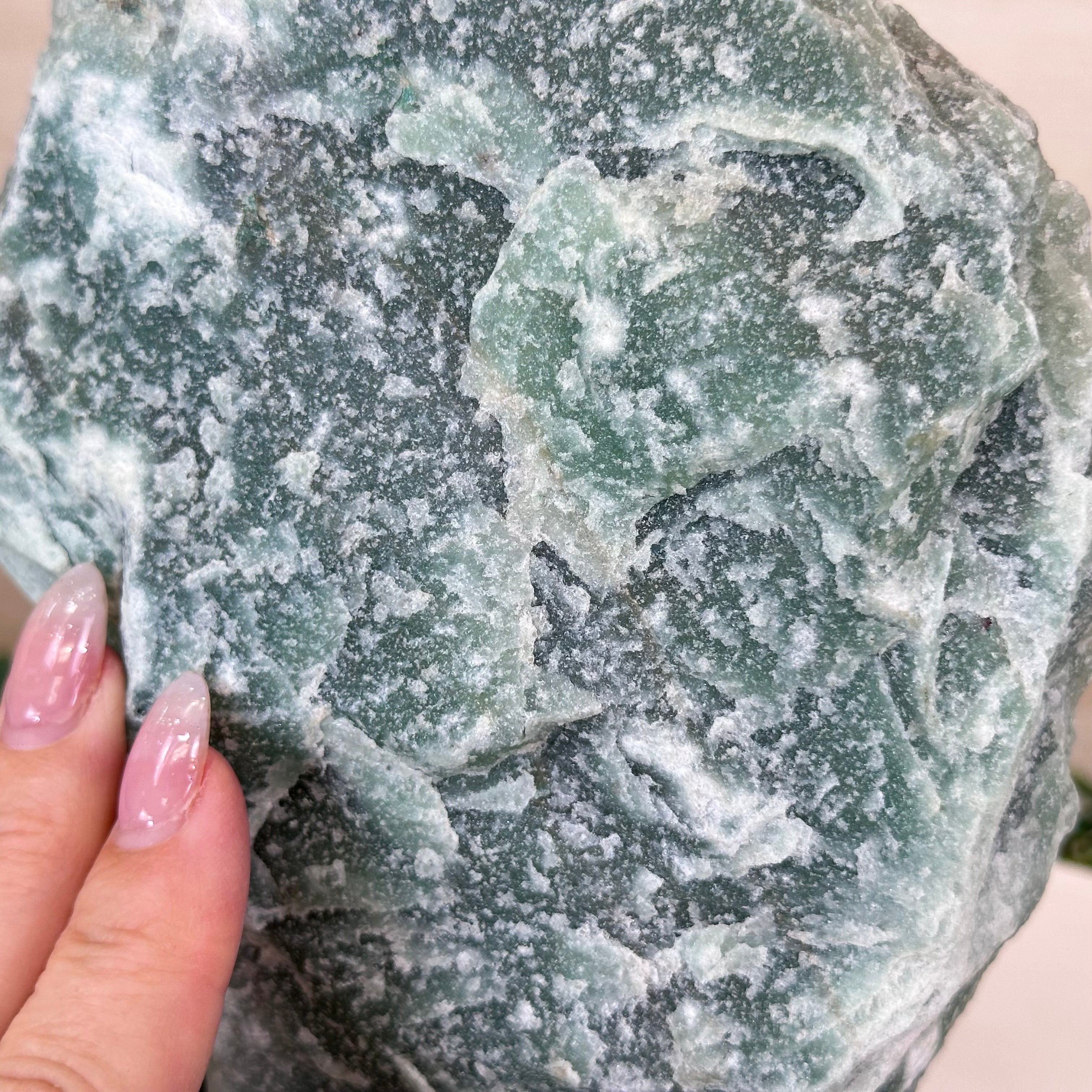 Elevate your space with this Brazilian Green Quartz Slice on a wood base. This piece is beautifully polished on the front with rough edges on the sides and the back. This slice will make a great addition or start to your crystal collection and will accent the décor of any room.