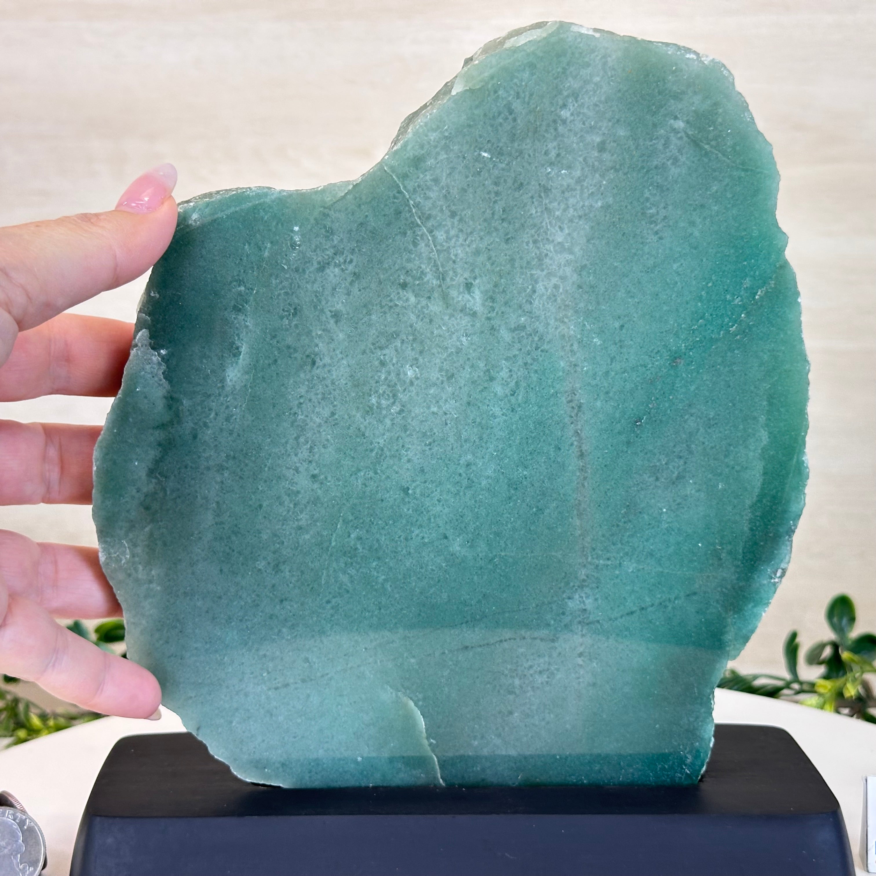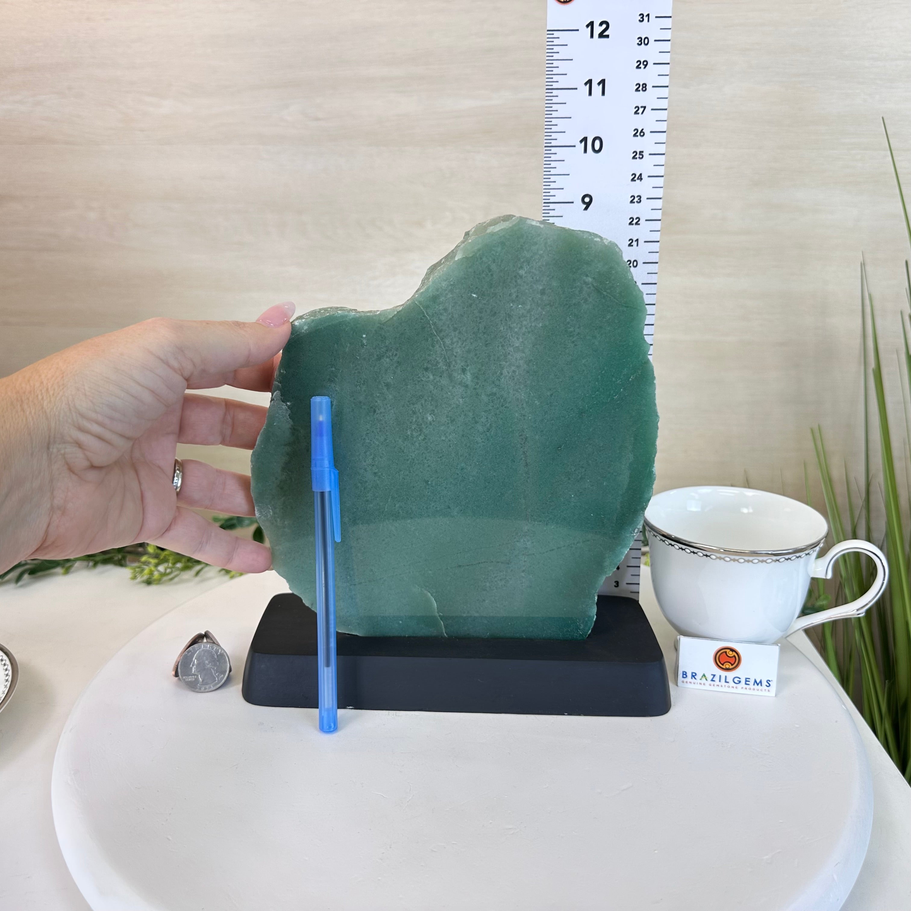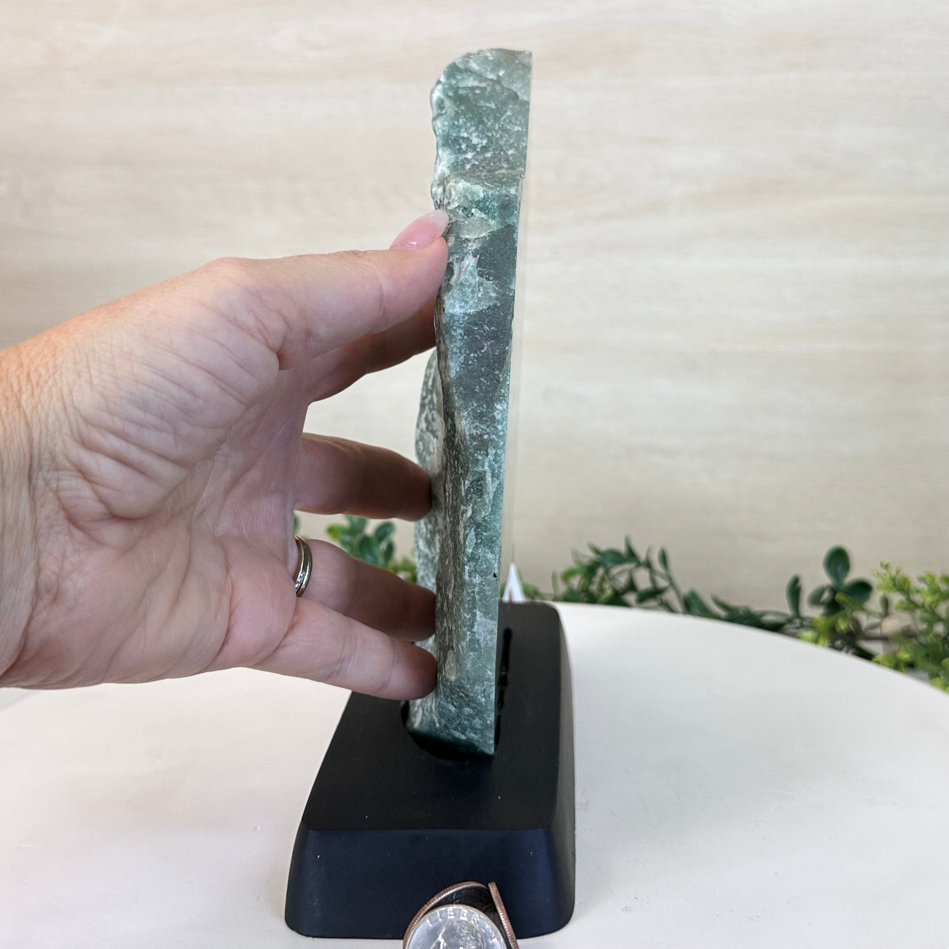 Green Quartz Polished Slice with Rough Edges, Wood Base 9" Tall # 6100GQ-031