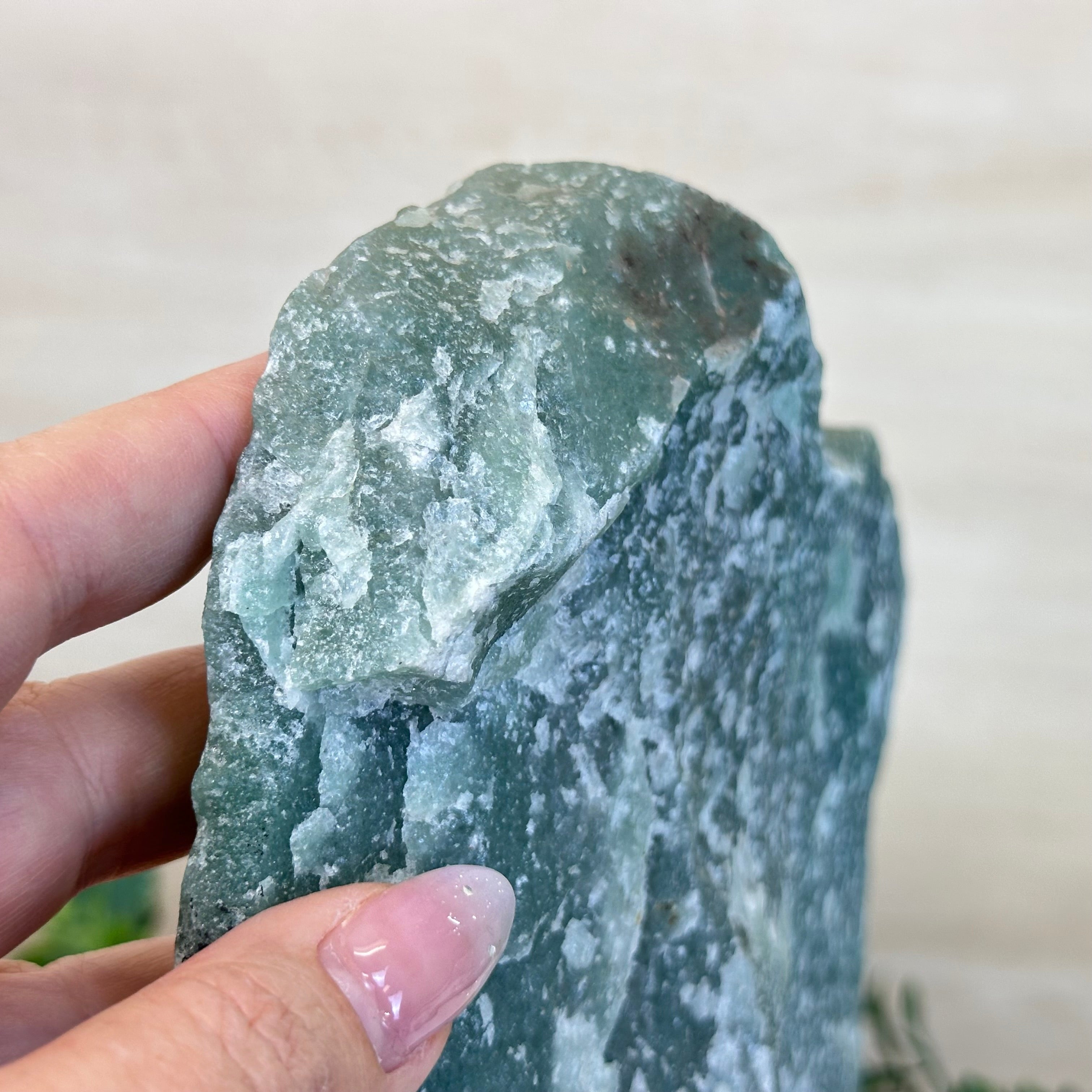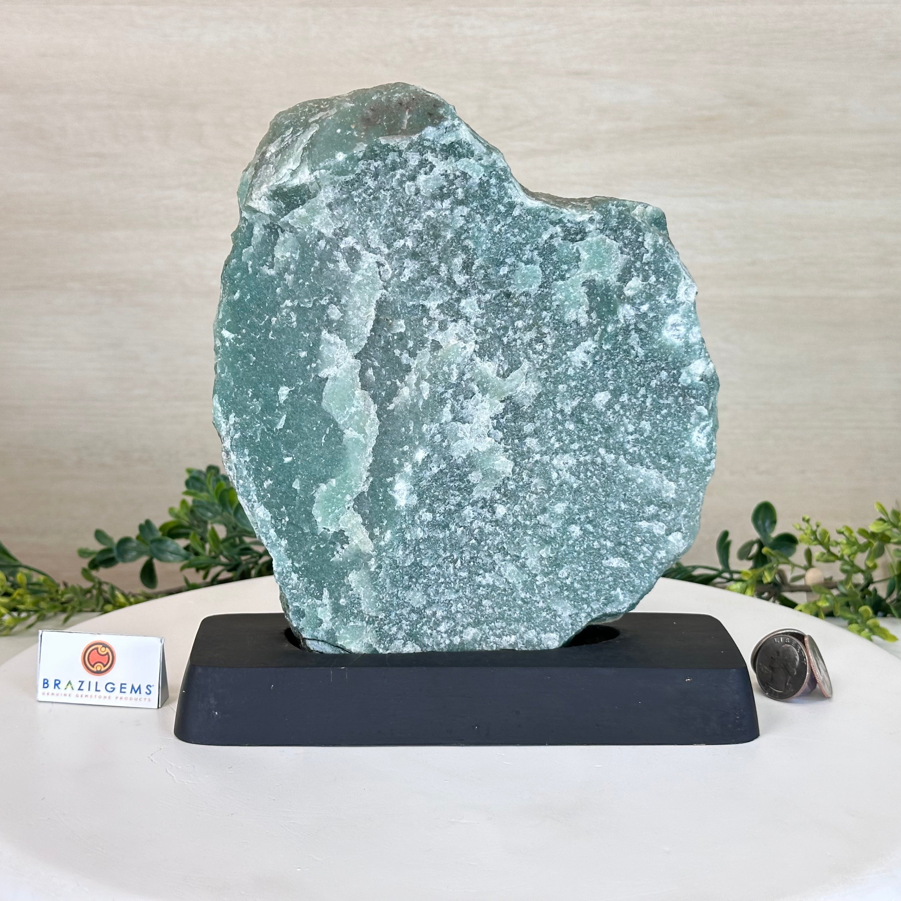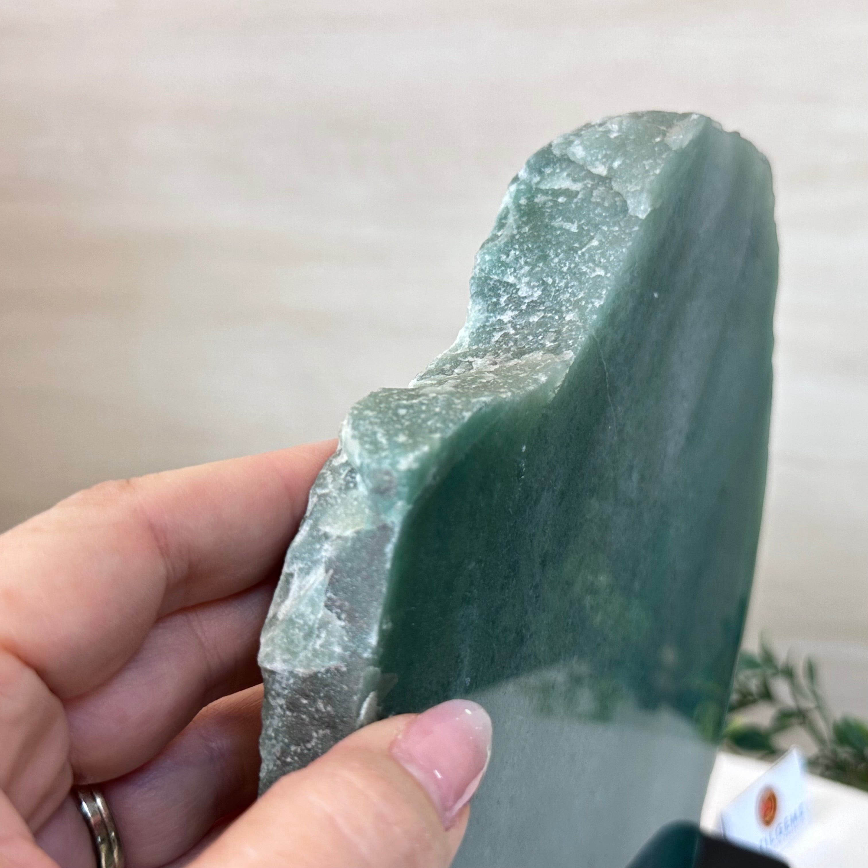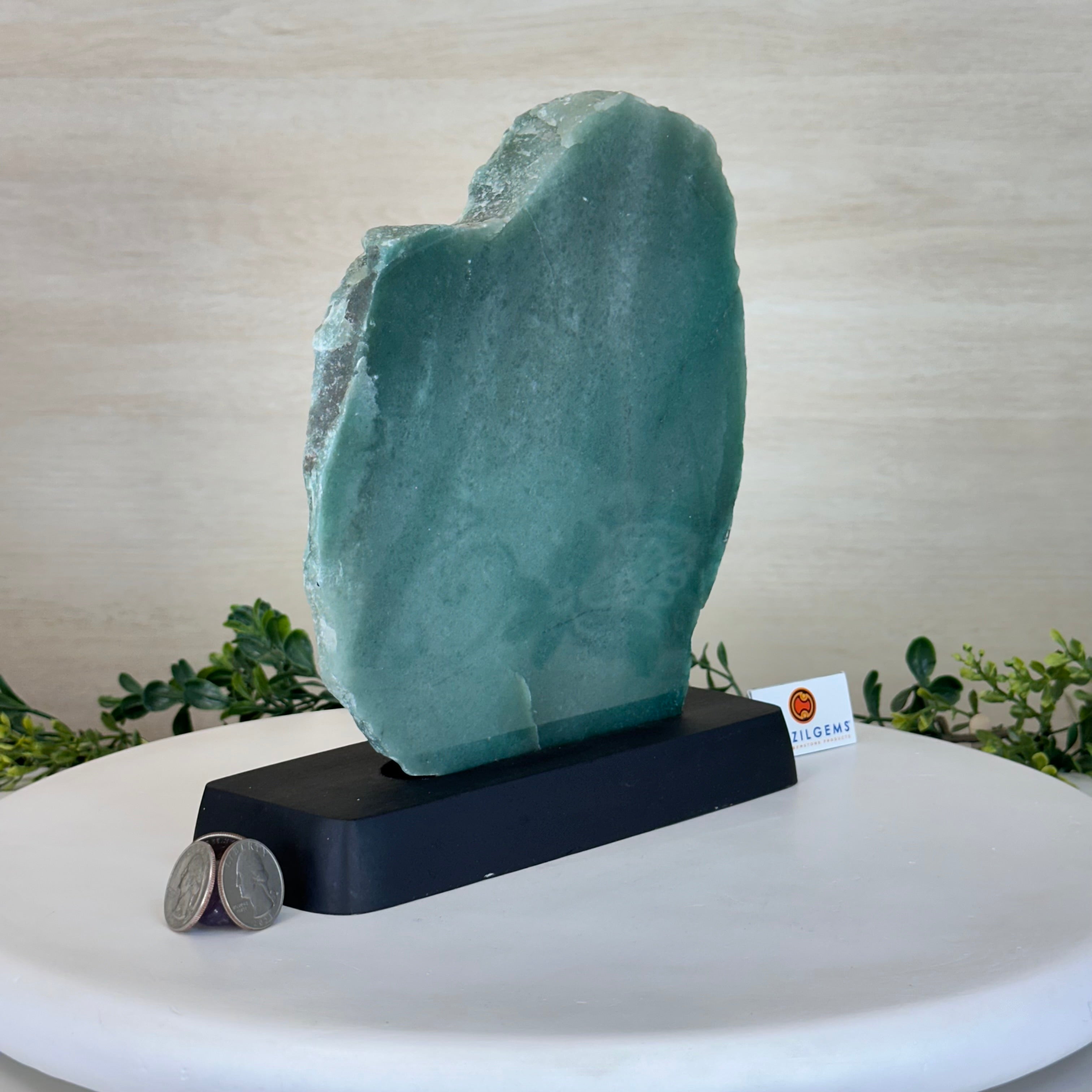 Green Quartz Polished Slice with Rough Edges, Wood Base 9" Tall # 6100GQ-031