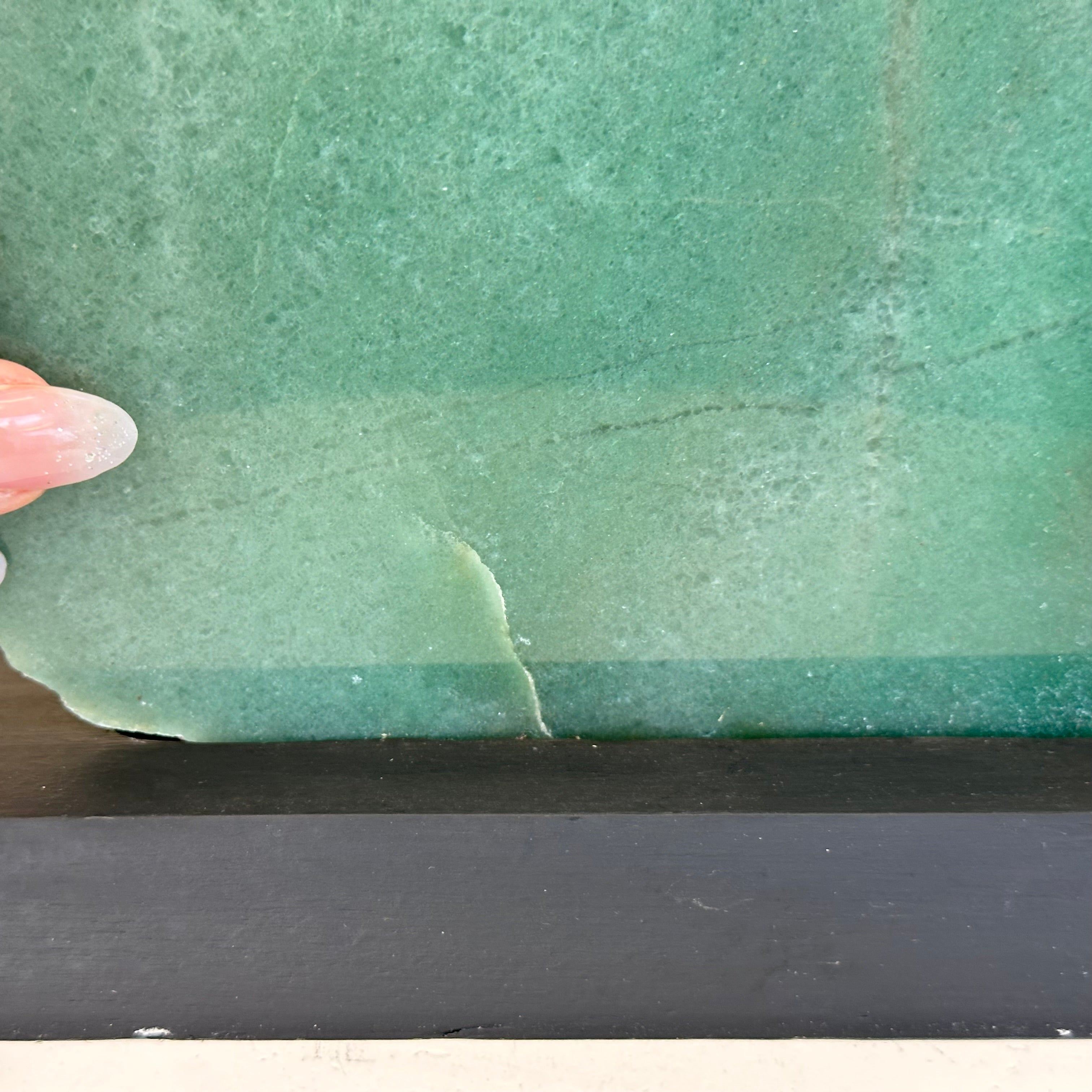 Disclaimer: This is a natural gemstone crystal sold by Brazil Gems® as is and as you see it in its images. It is the exact piece you will receive. It may contain natural imperfections as well as imperfections, broken edges and scratches from the extraction, slicing, polishing and mounting processes. The gemstone slice has been glued into its wood base. The wood base has been painted black. At Brazil Gems® we make every effort to get measurements as exact as possible but they are done by human hands and eyes and therefore may have minor discrepancies.