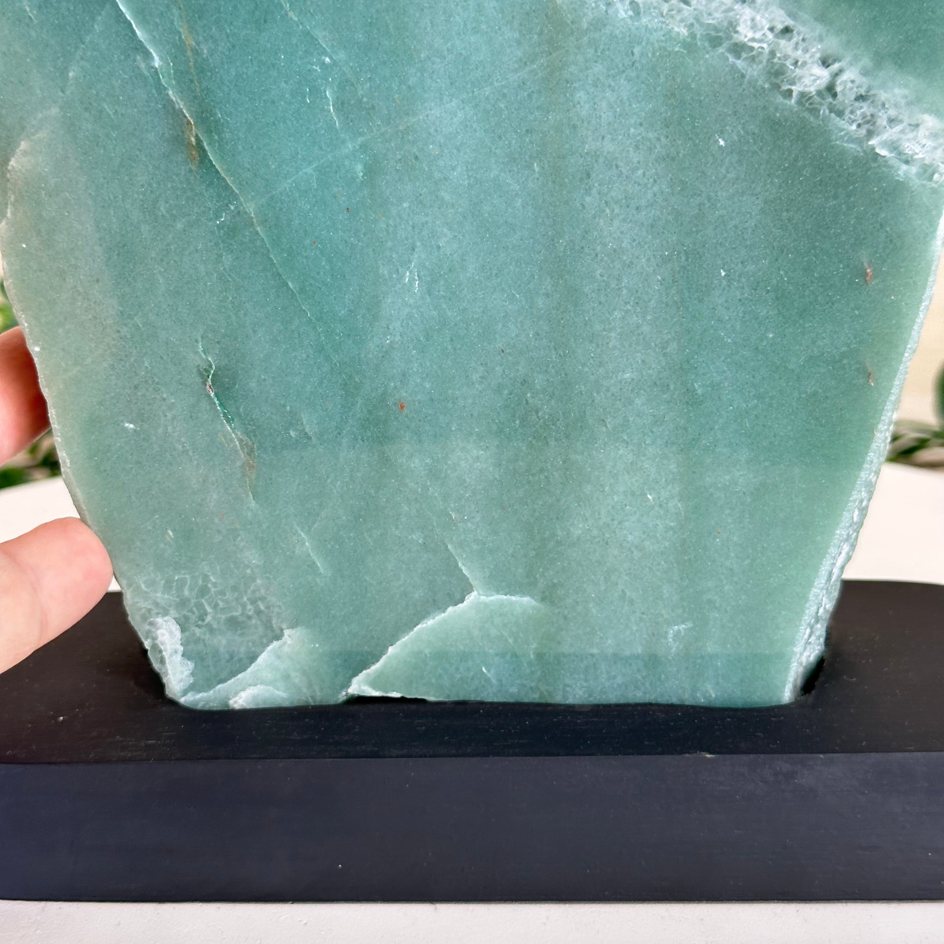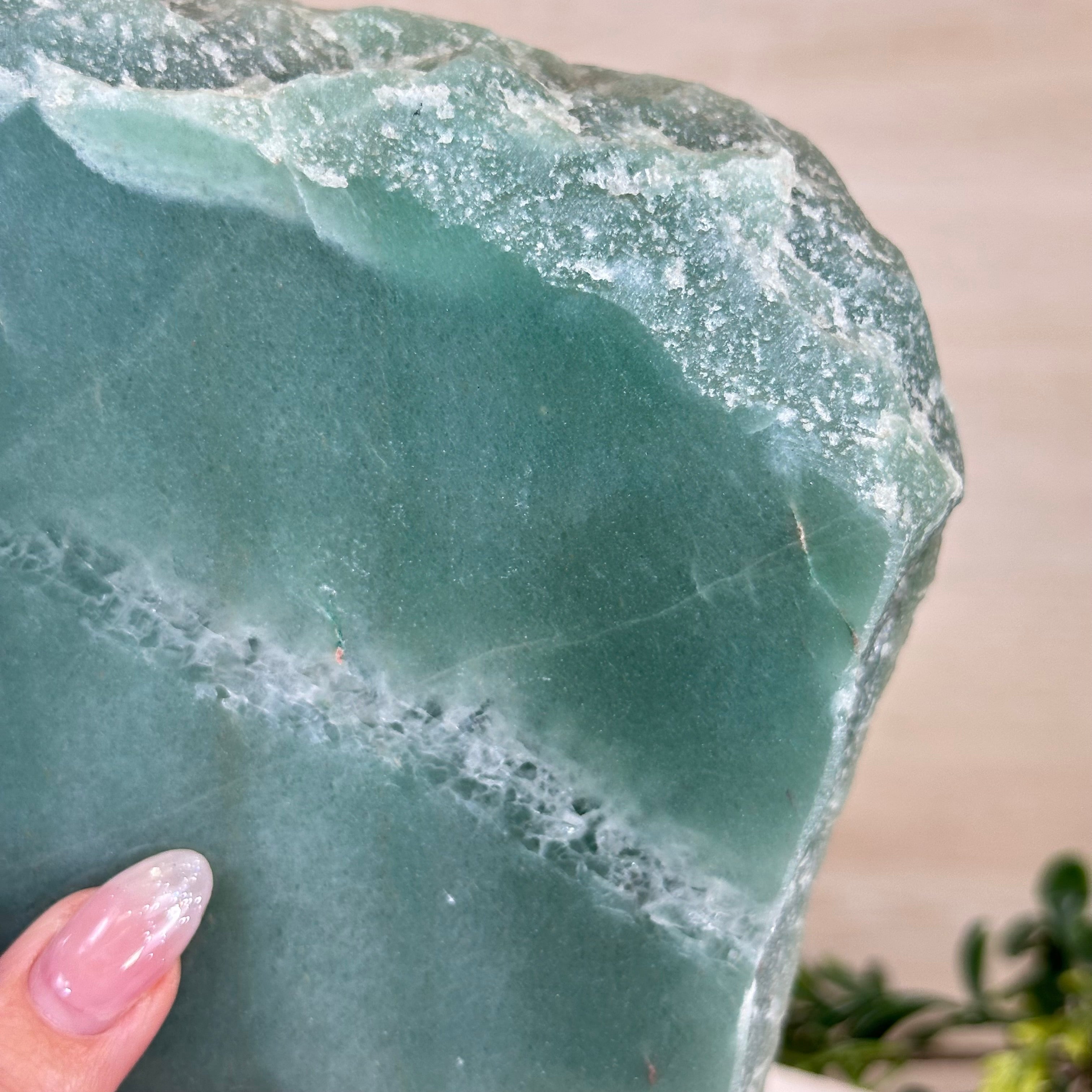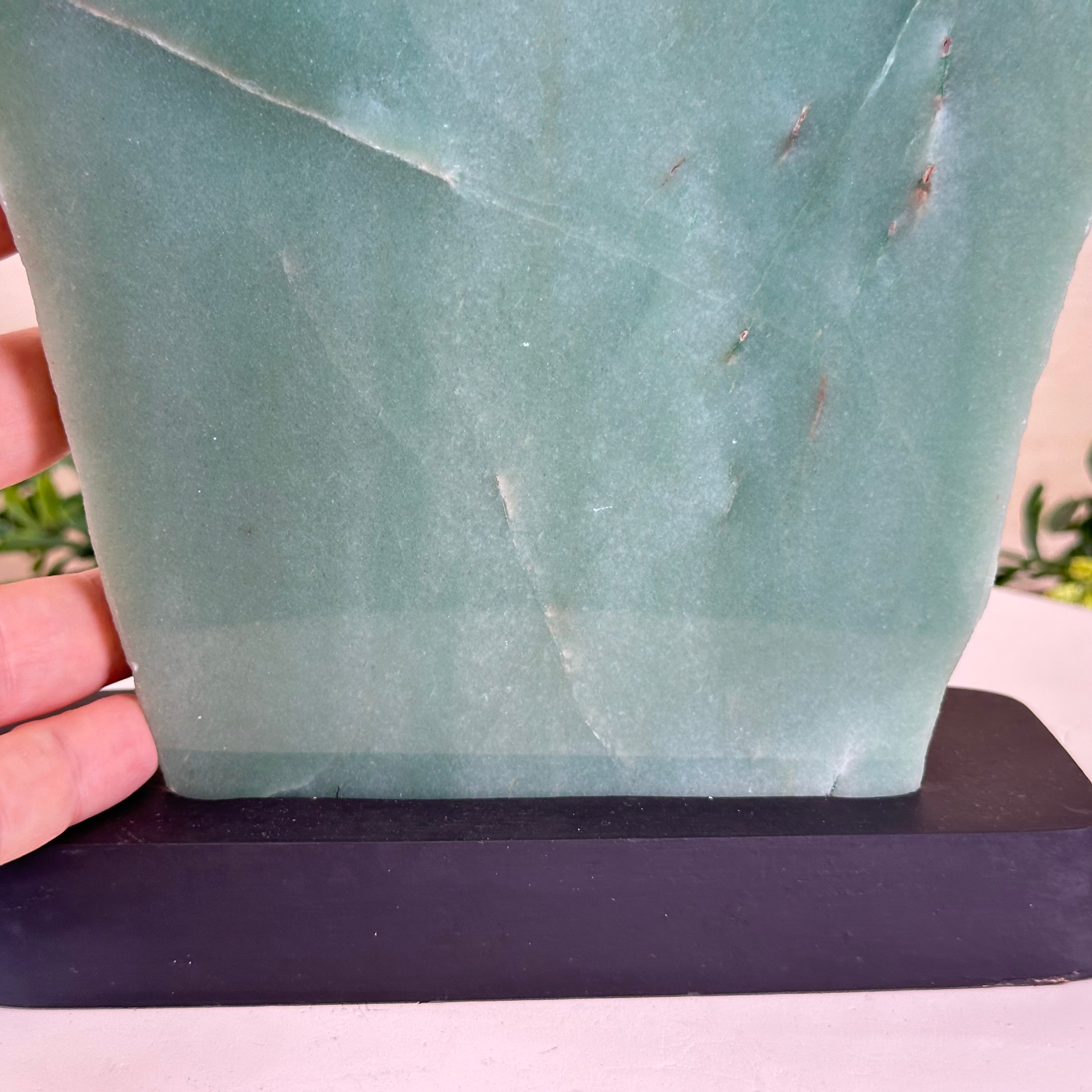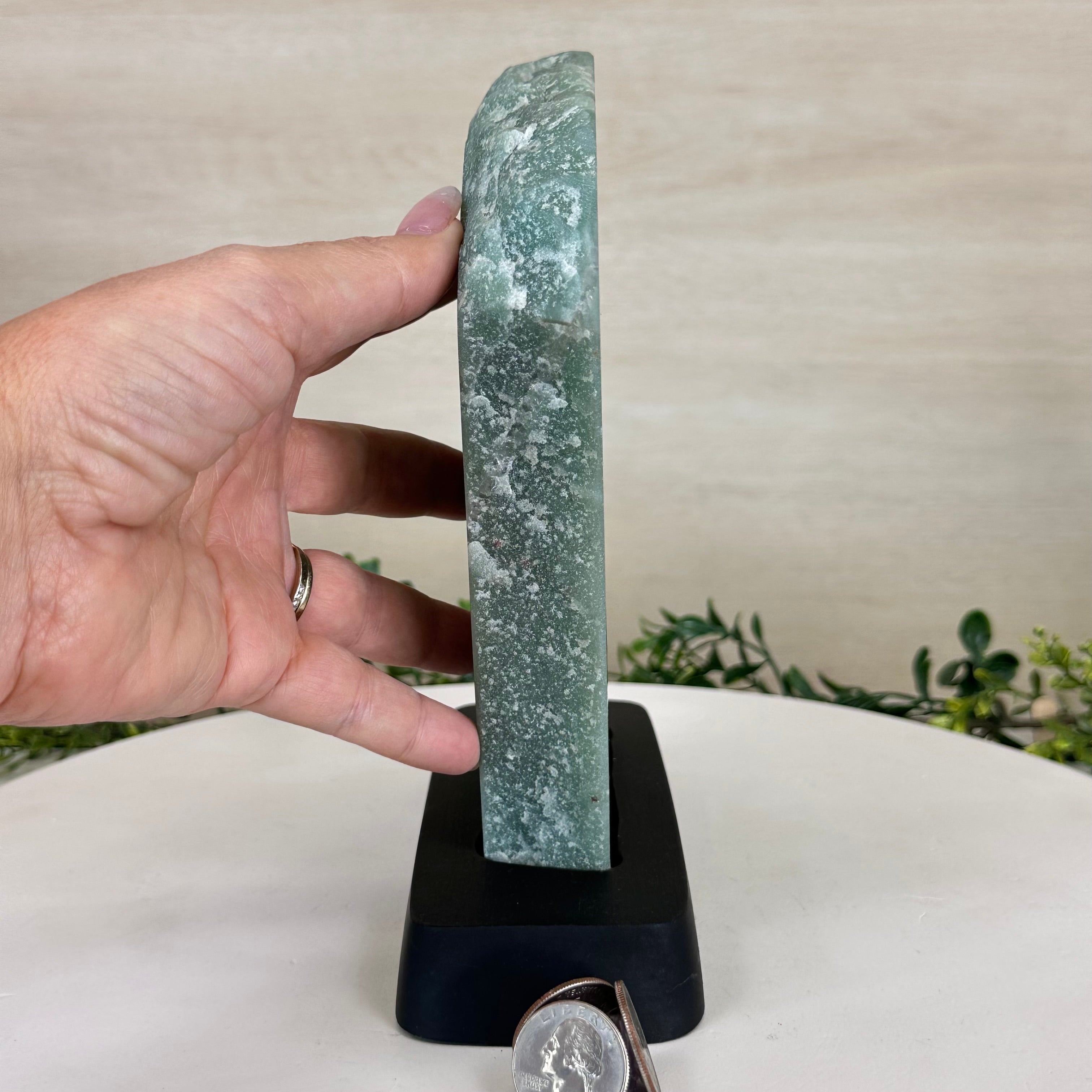 Green Quartz Polished Slice with Rough Edges, Wood Base 8.4" Tall # 6100GQ-033