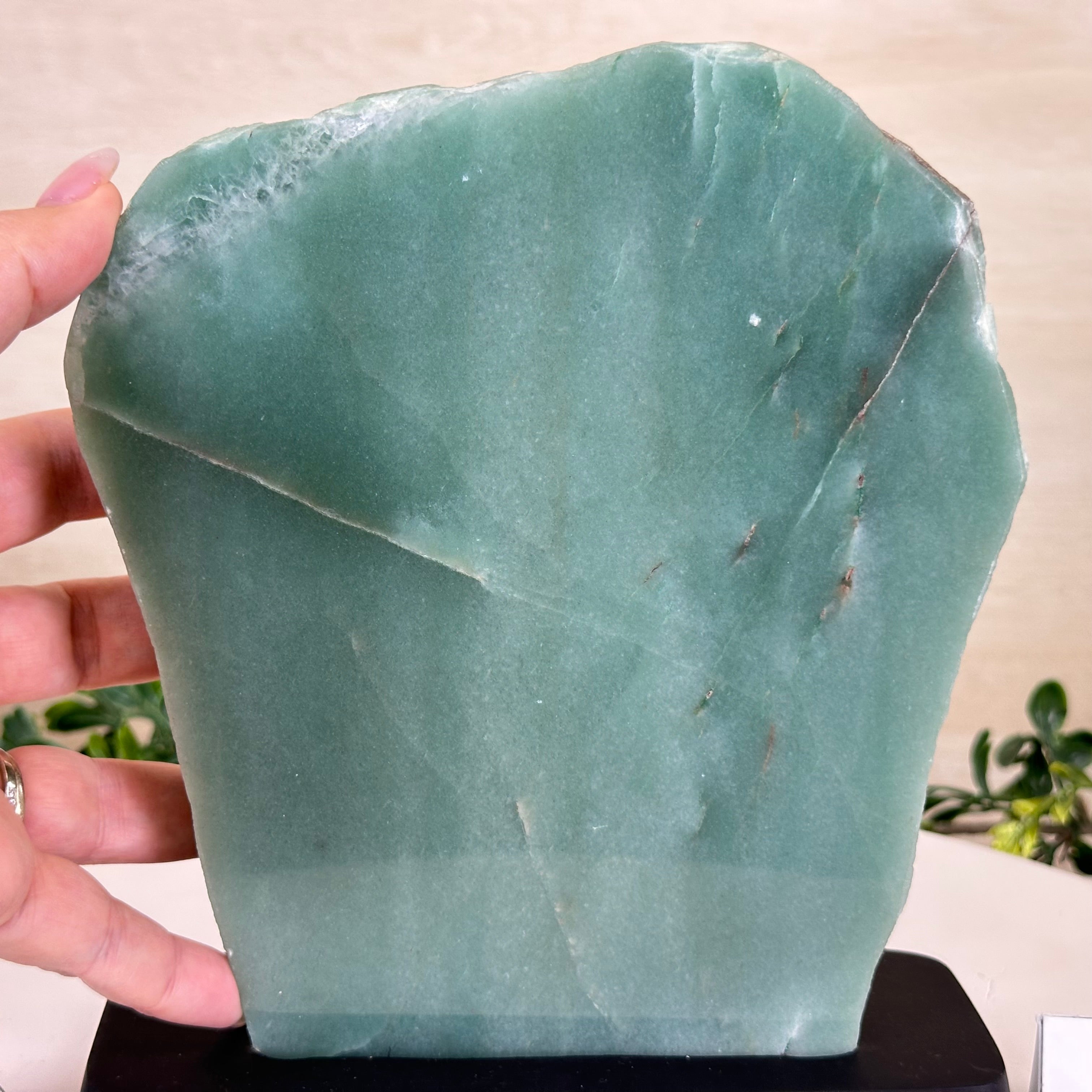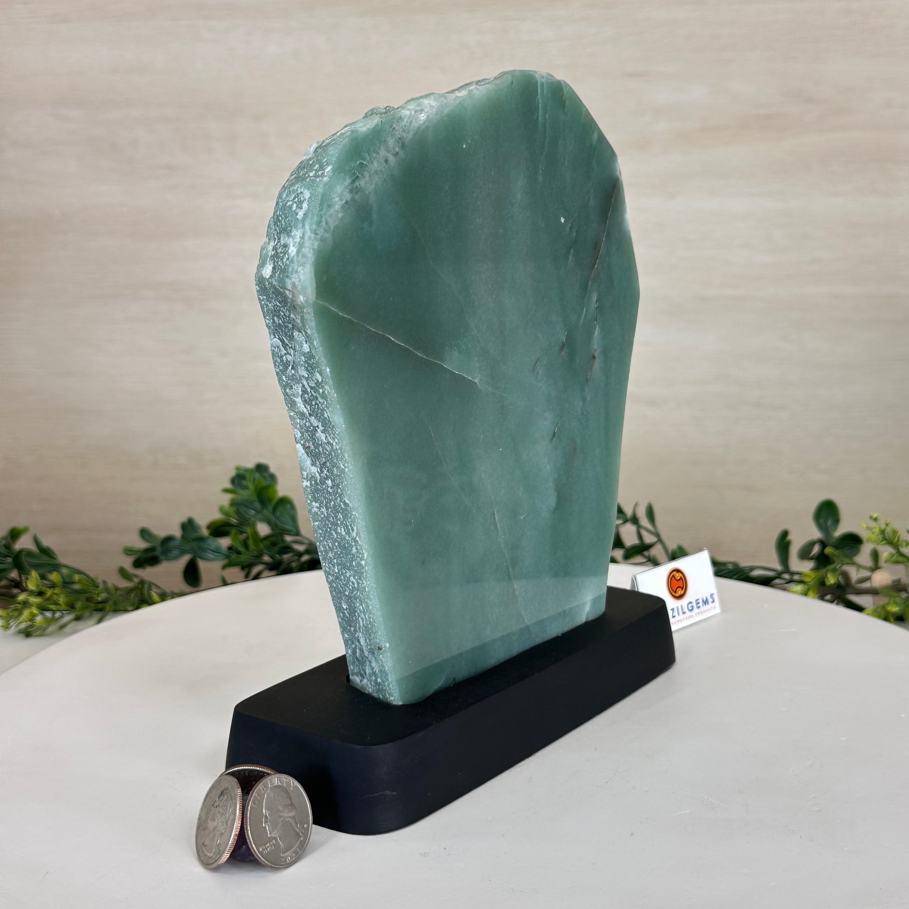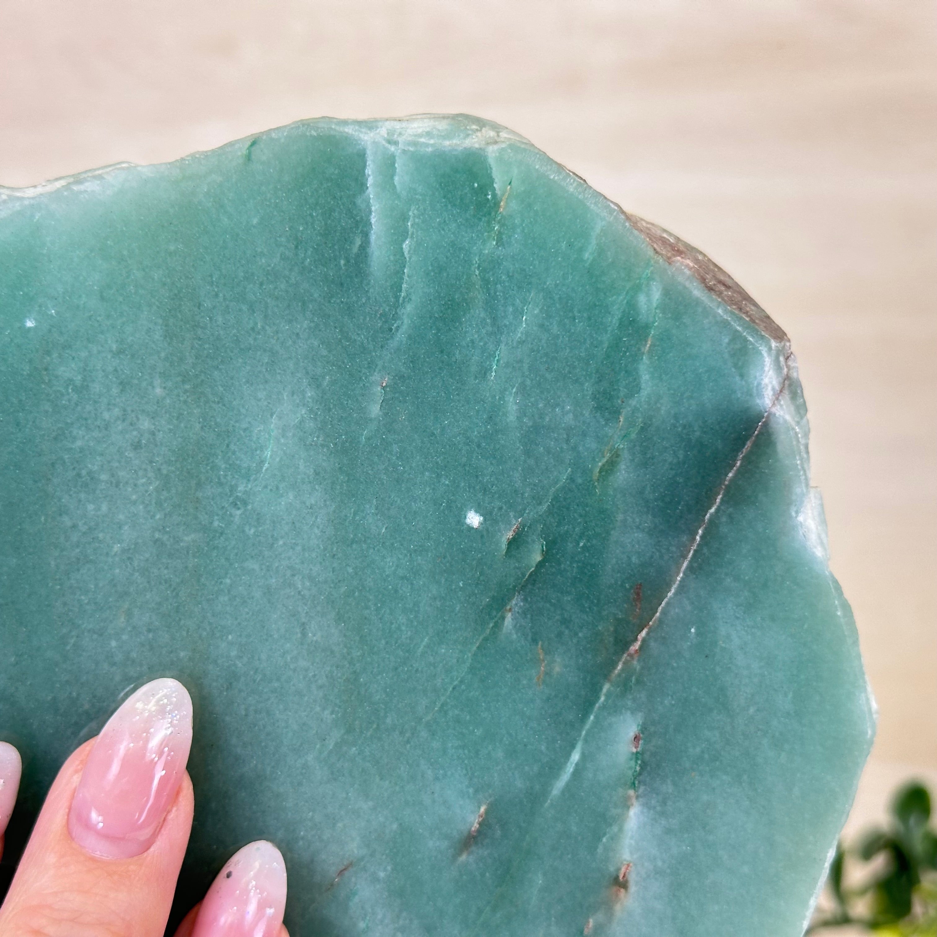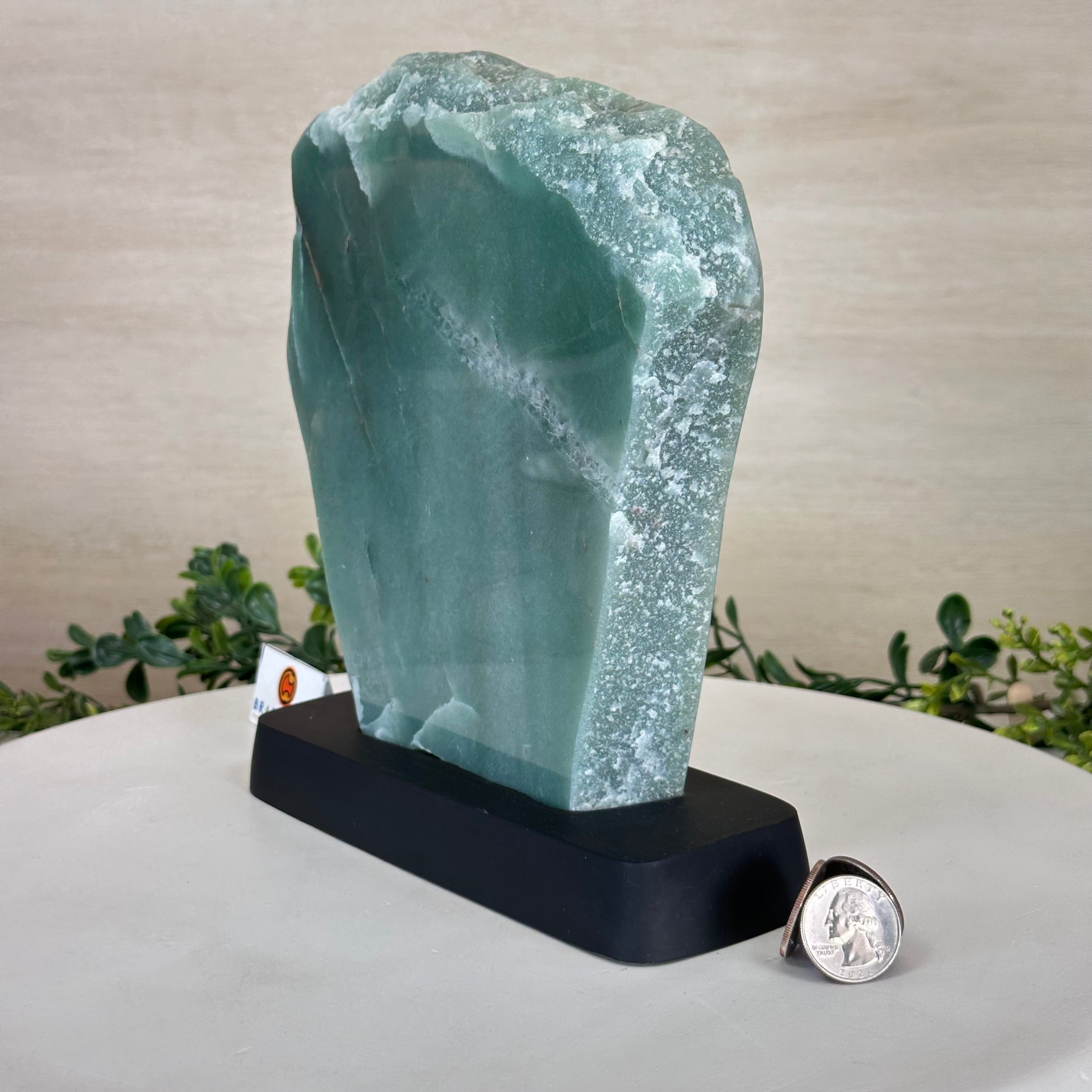 Green Quartz Polished Slice with Rough Edges, Wood Base 8.4" Tall # 6100GQ-033