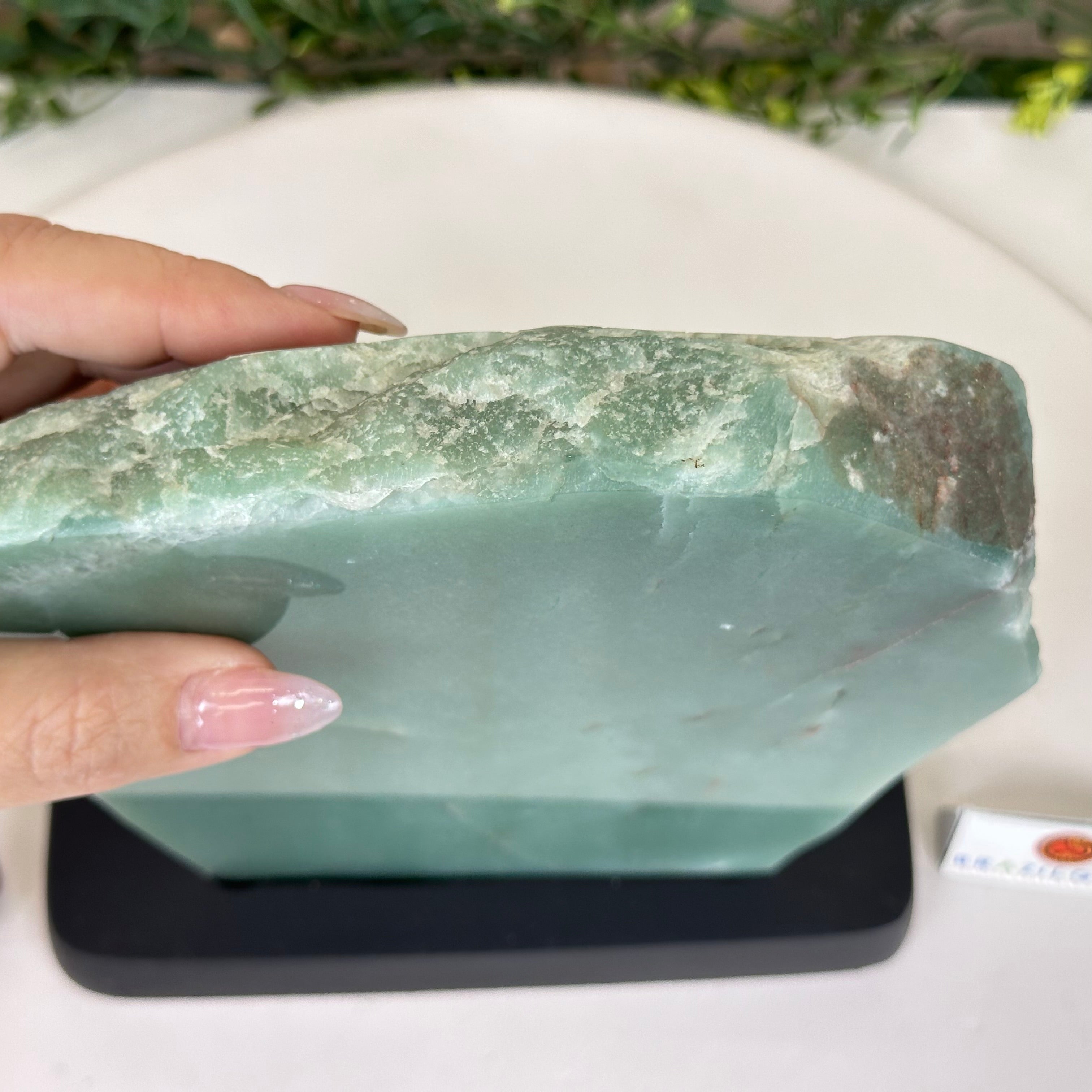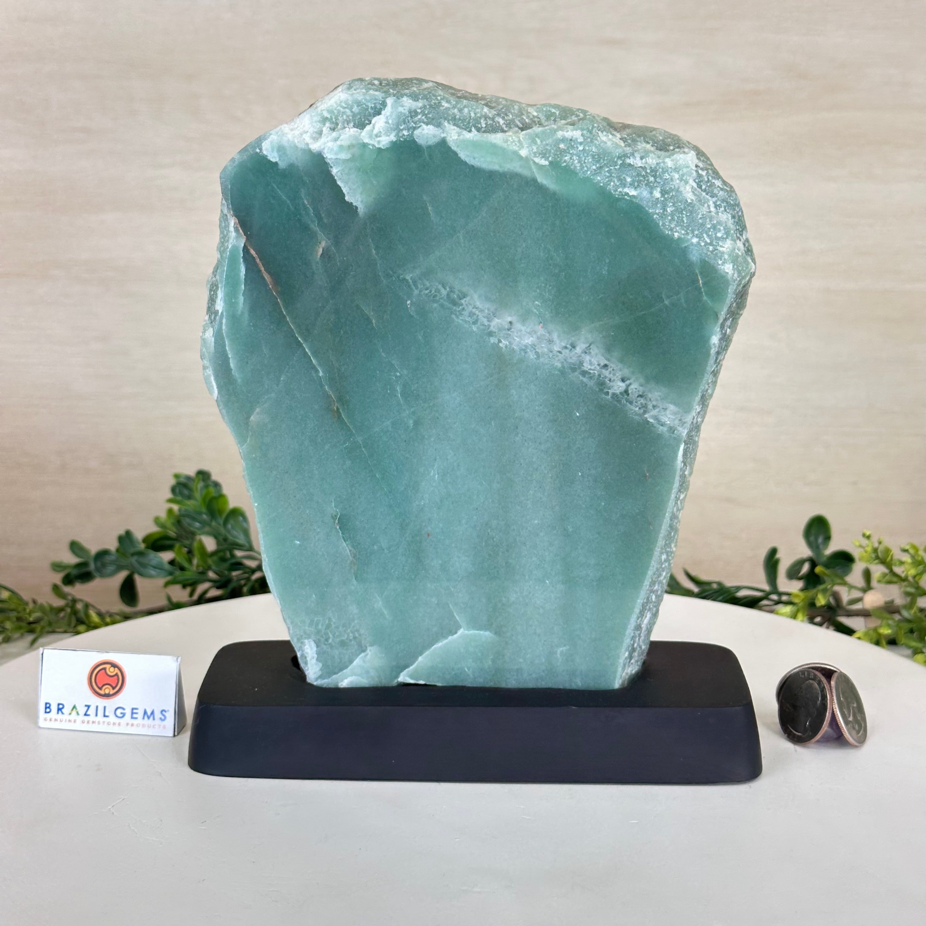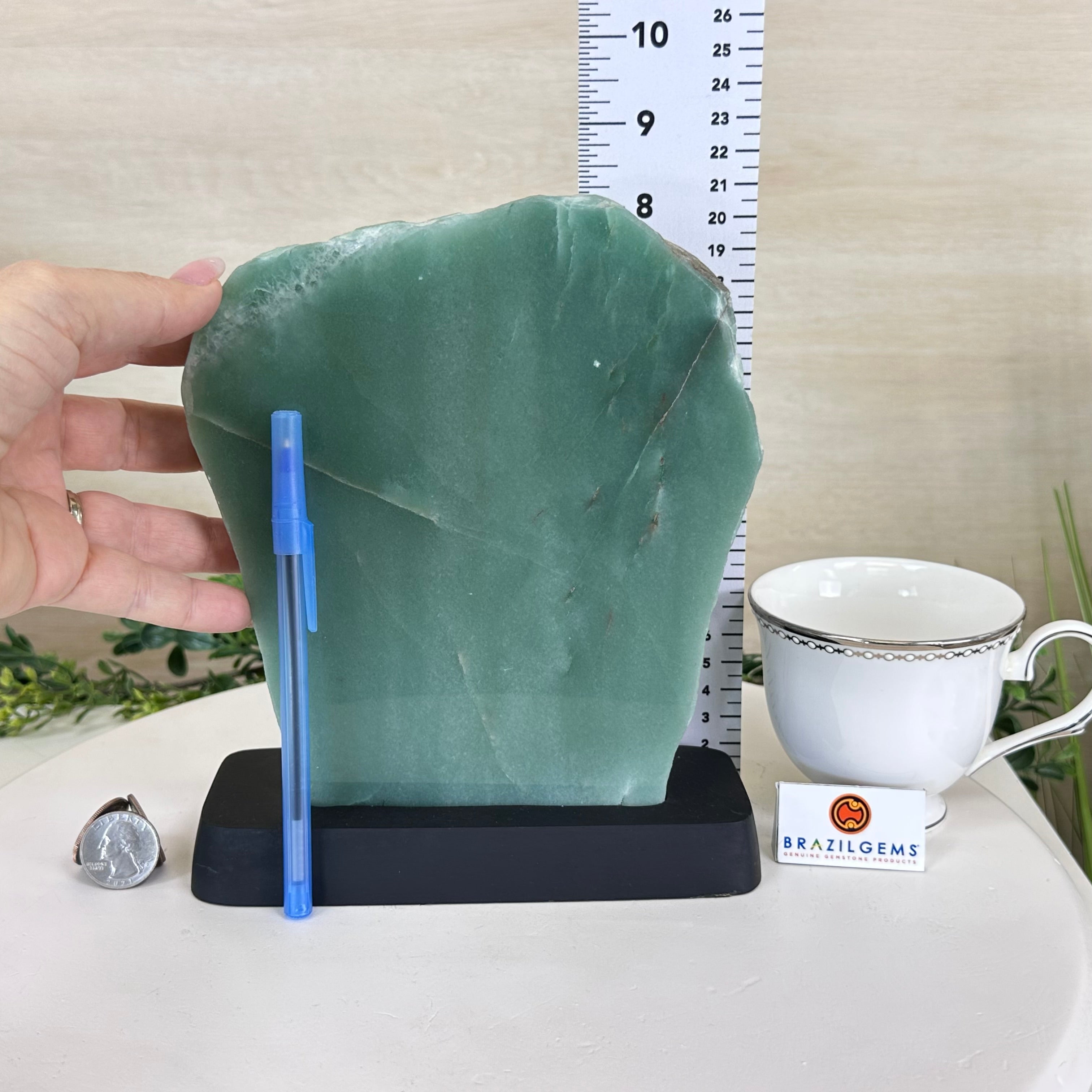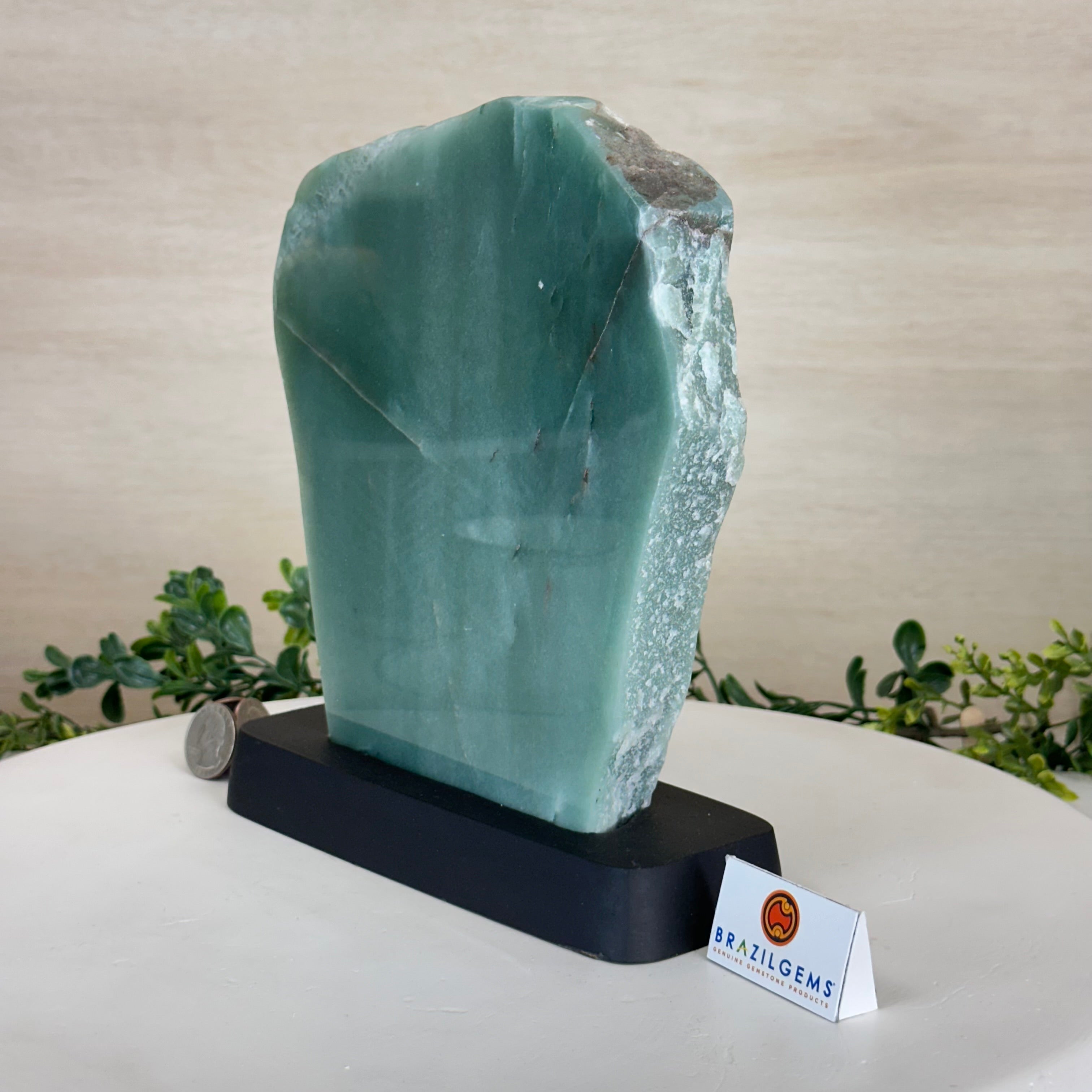Green Quartz Polished Slice with Rough Edges, Wood Base 8.4" Tall # 6100GQ-033