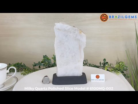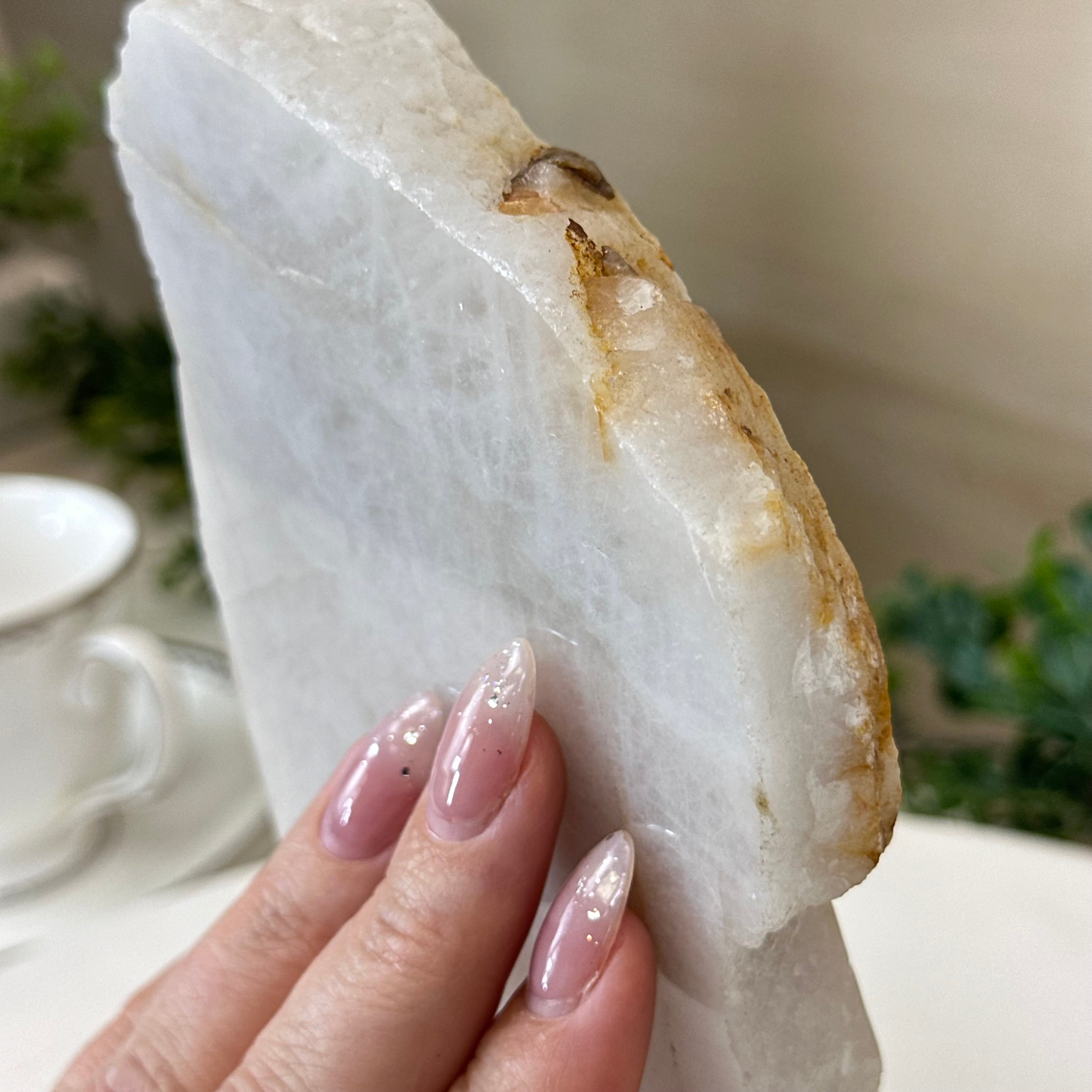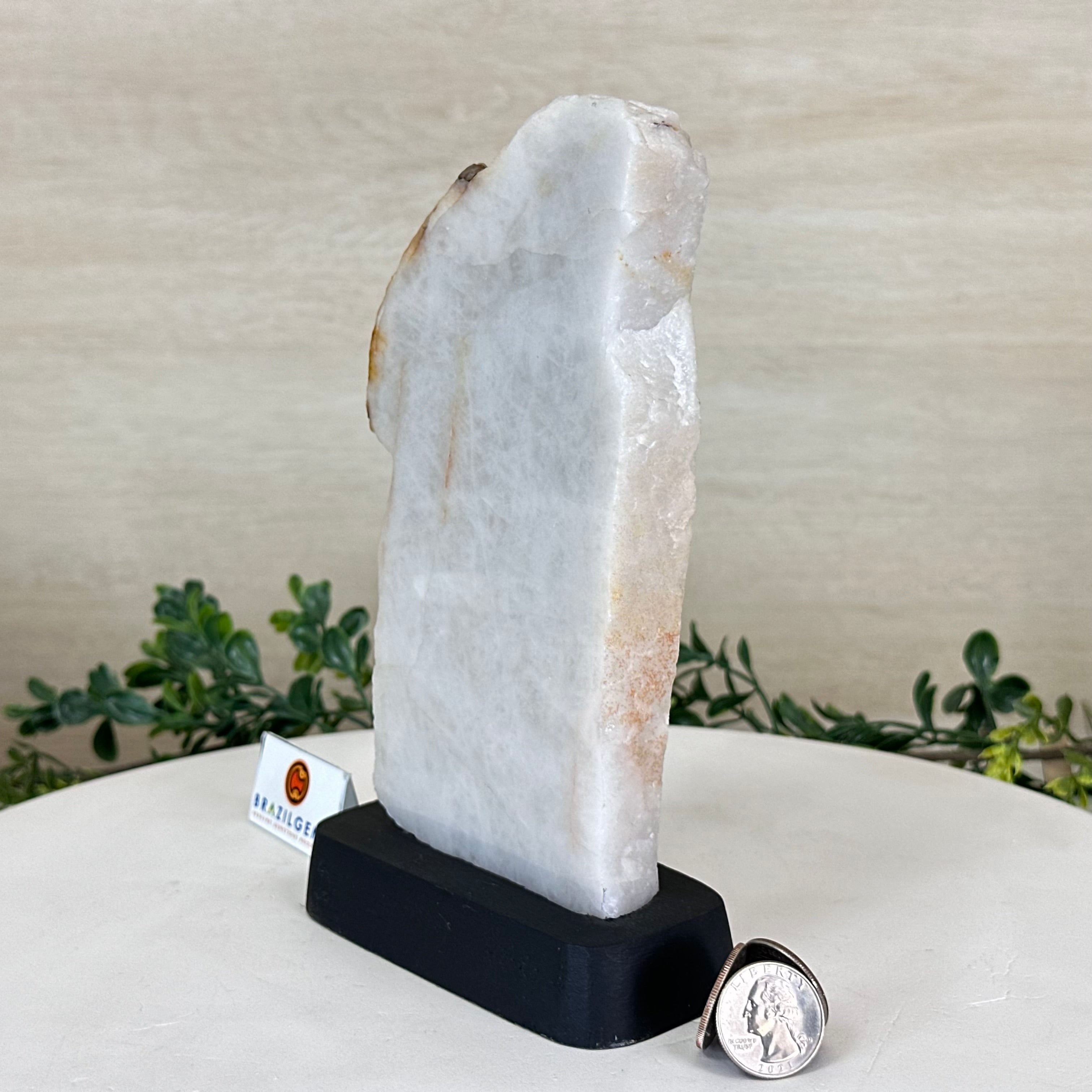 Milky Quartz Polished Slice on a Wood Base 8.1" Tall #6100MQ-002
