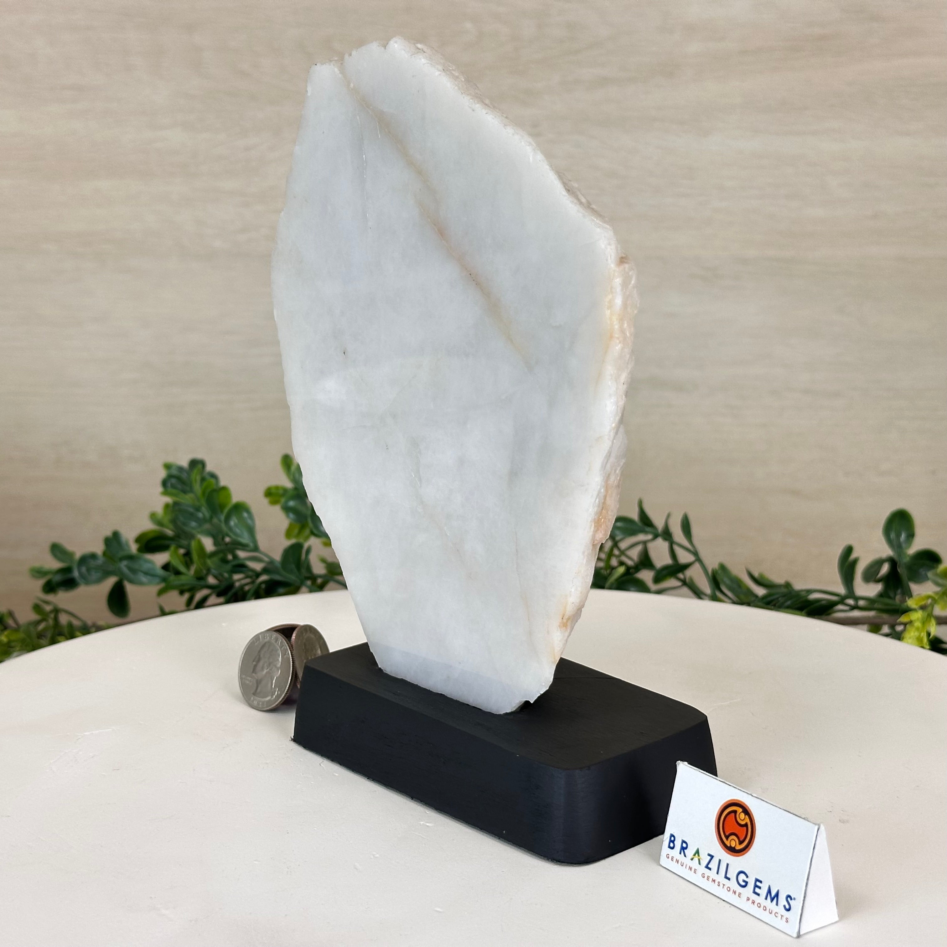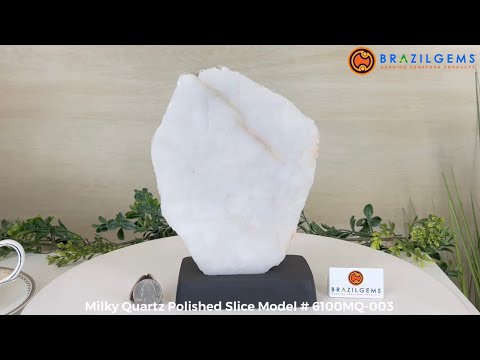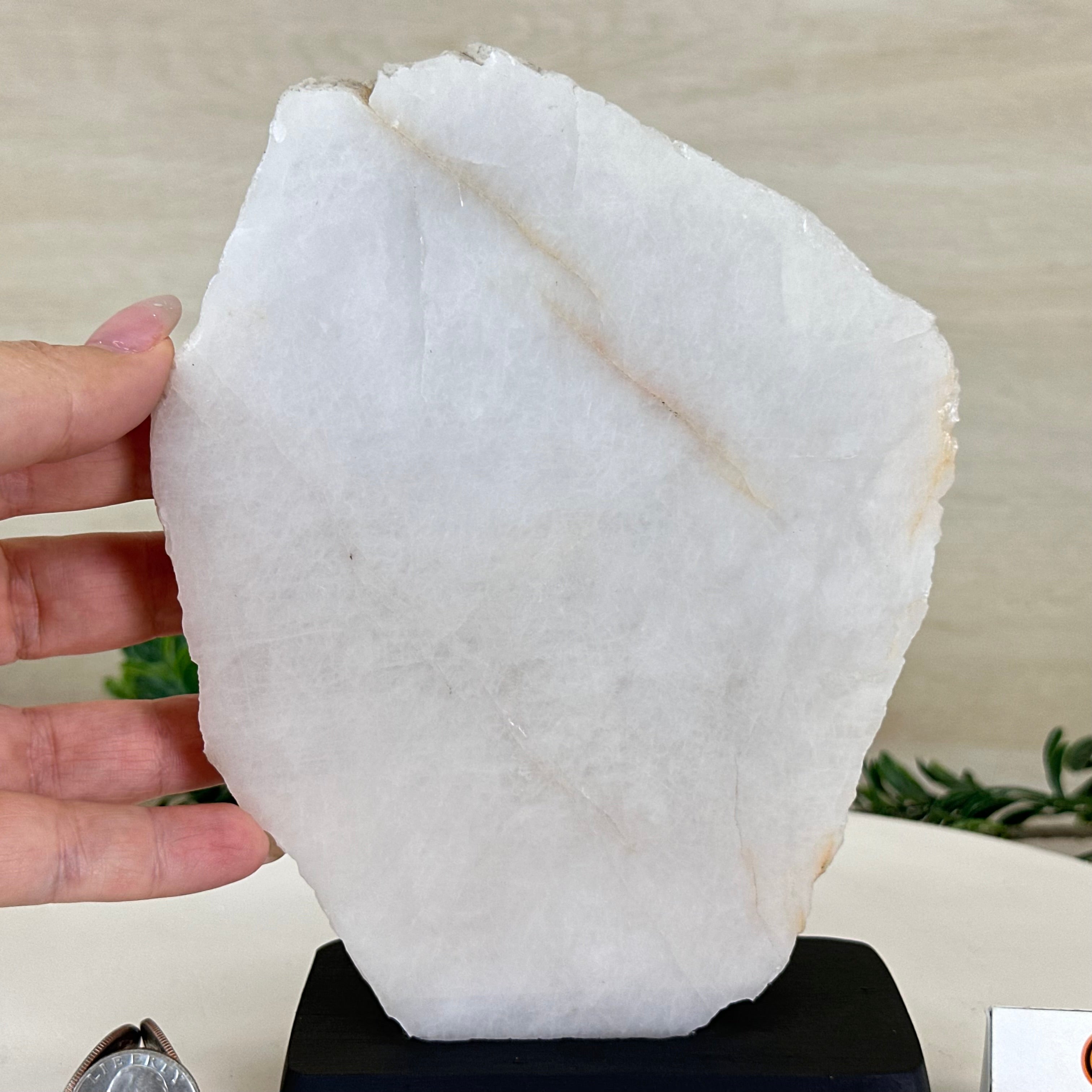 Milky Quartz Polished Slice on a Wood Base 7.9" Tall #6100MQ-003