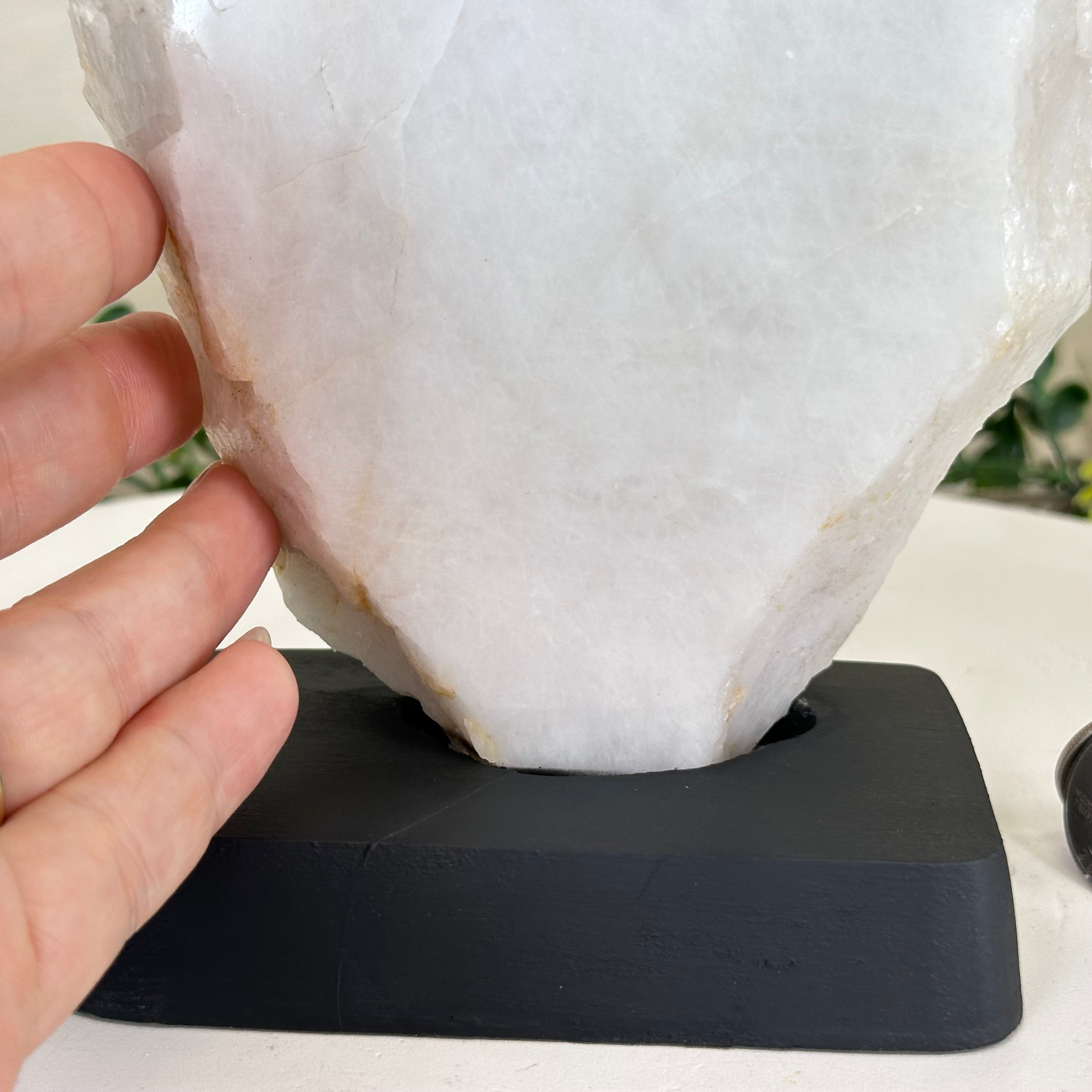 Disclaimer: This is a natural gemstone crystal sold by Brazil Gems® as is and as you see it in its images. It is the exact piece you will receive. It may contain natural imperfections as well as imperfections, broken edges and scratches from the extraction, slicing, polishing and mounting processes. The gemstone slice has been glued into its wood base. The wood base has been painted black. At Brazil Gems® we make every effort to get measurements as exact as possible but they are done by human hands and eyes and therefore may have minor discrepancies.
