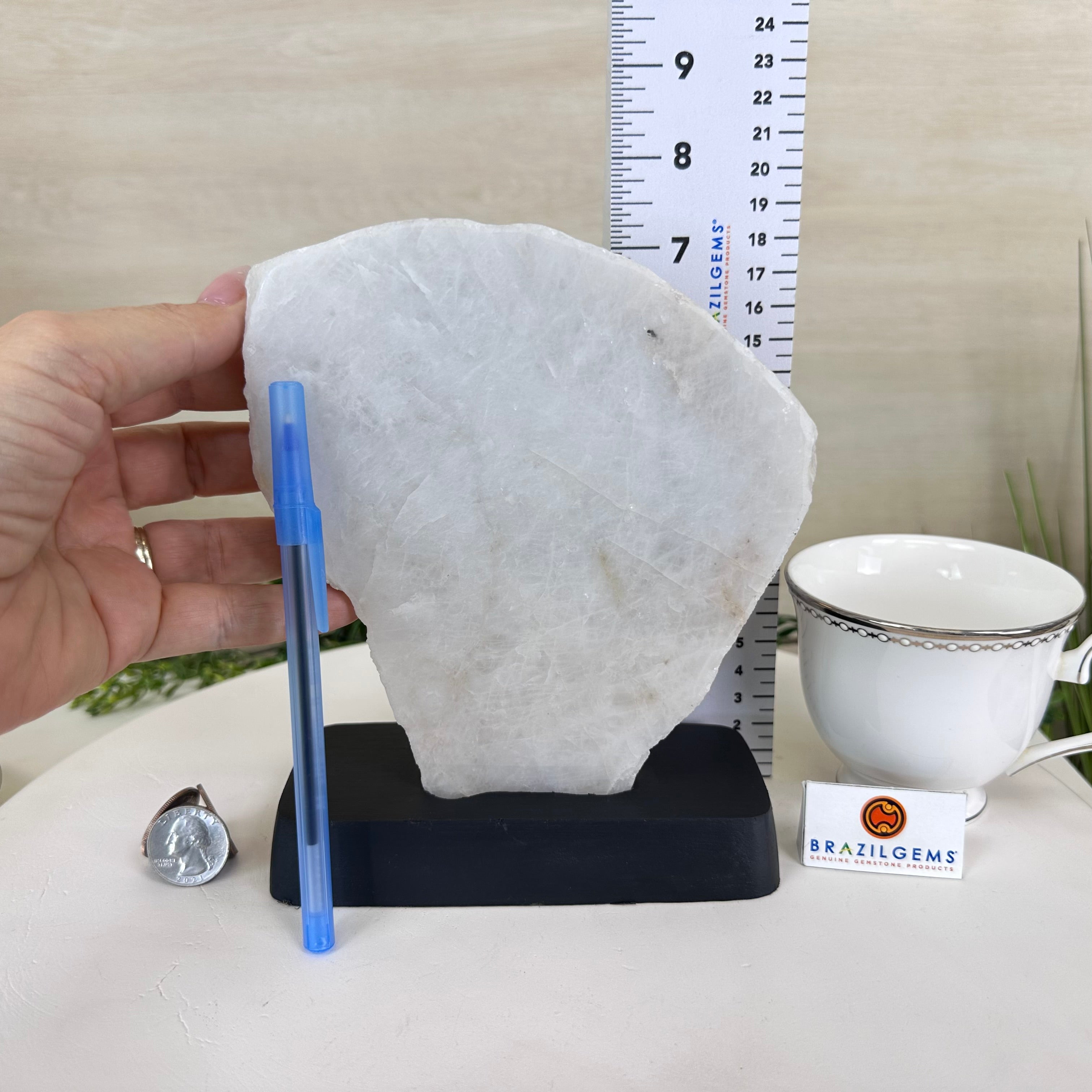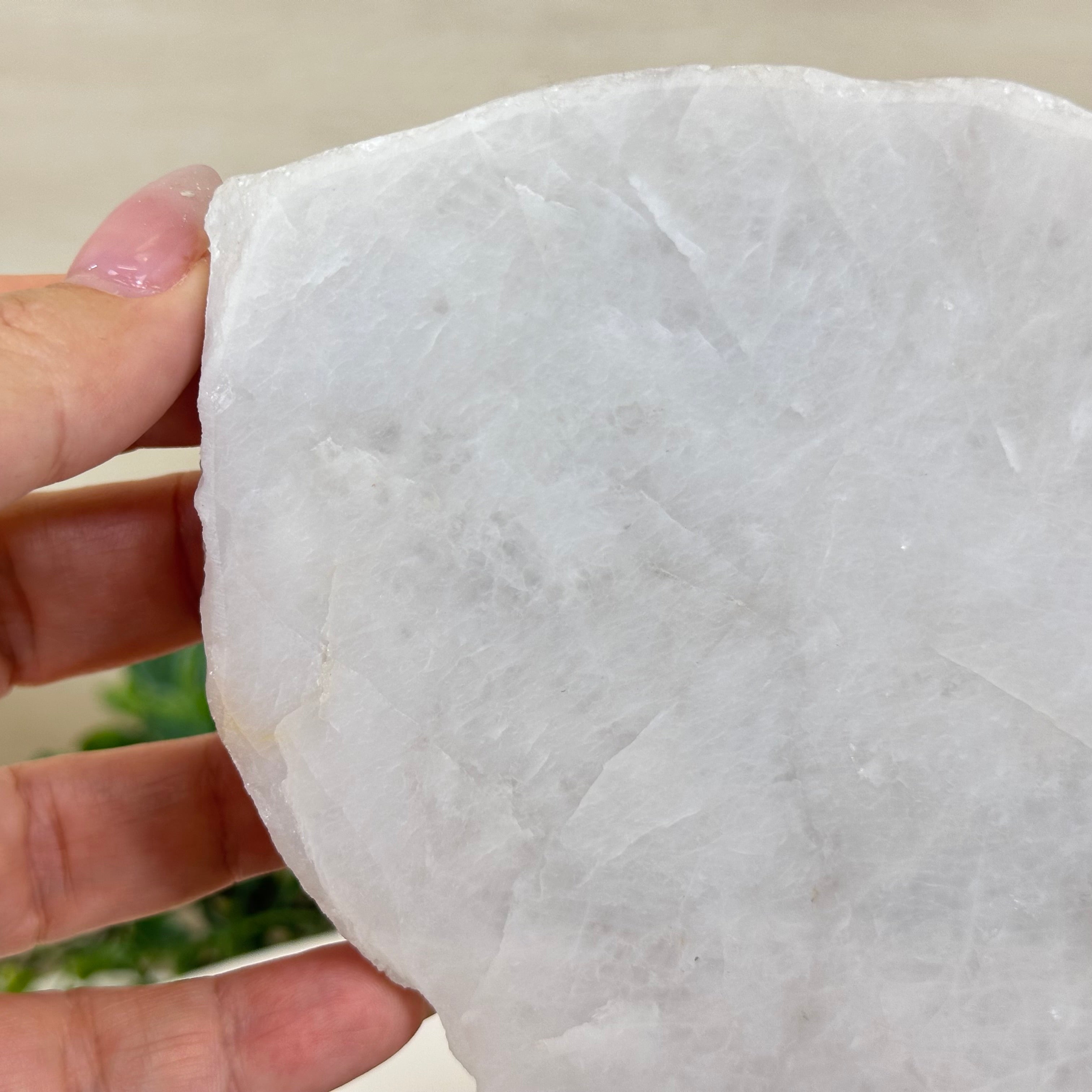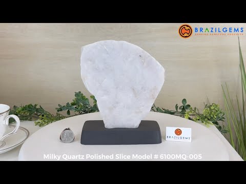 Milky Quartz Polished Slice on a Wood Base 7.4" Tall #6100MQ-005