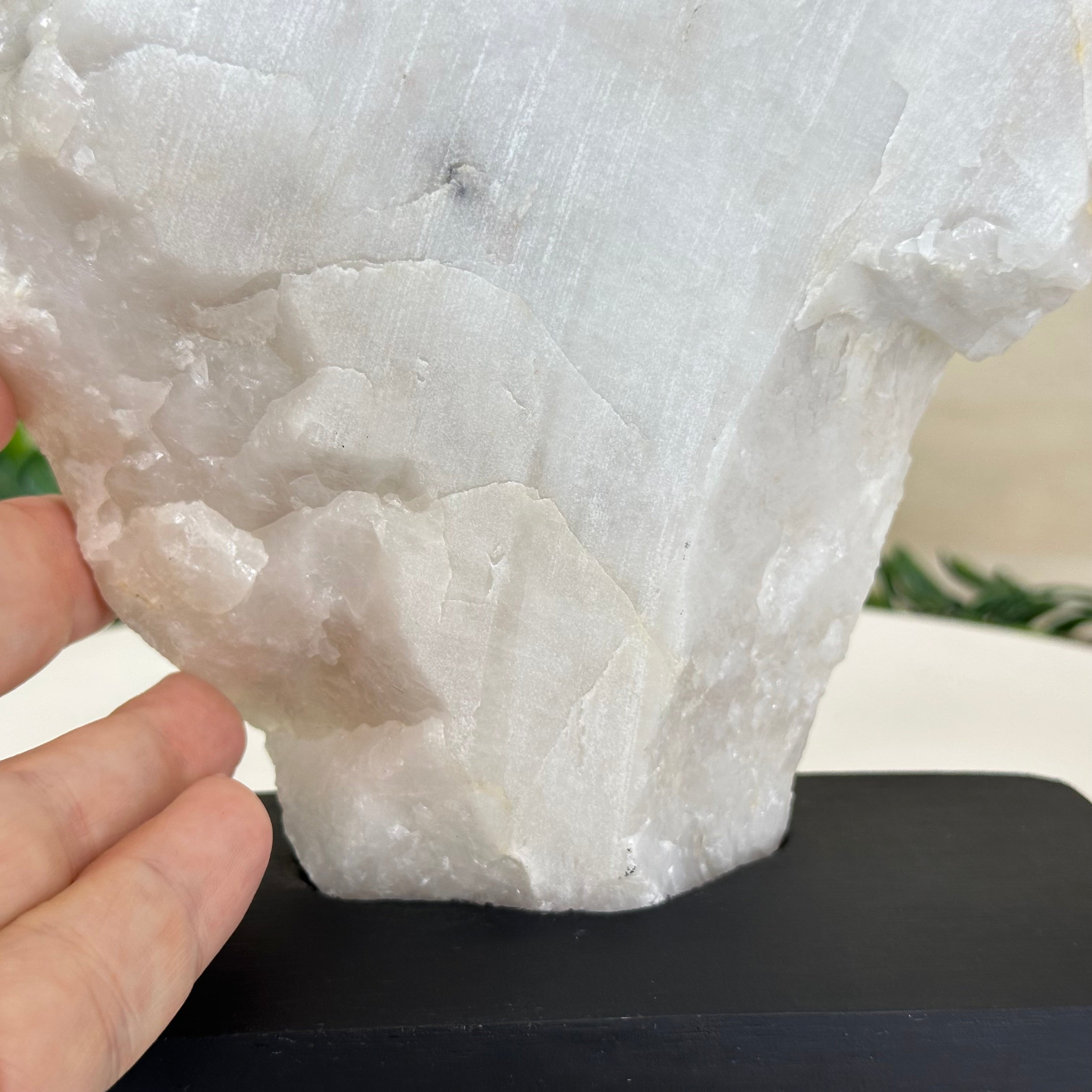 Elevate your space with this Brazilian Milky Quartz Slice on a wood base. This piece is beautifully polished on the front with rough edges on the sides and the back. This slice will make a great addition or start to your crystal collection and will accent the décor of any room.