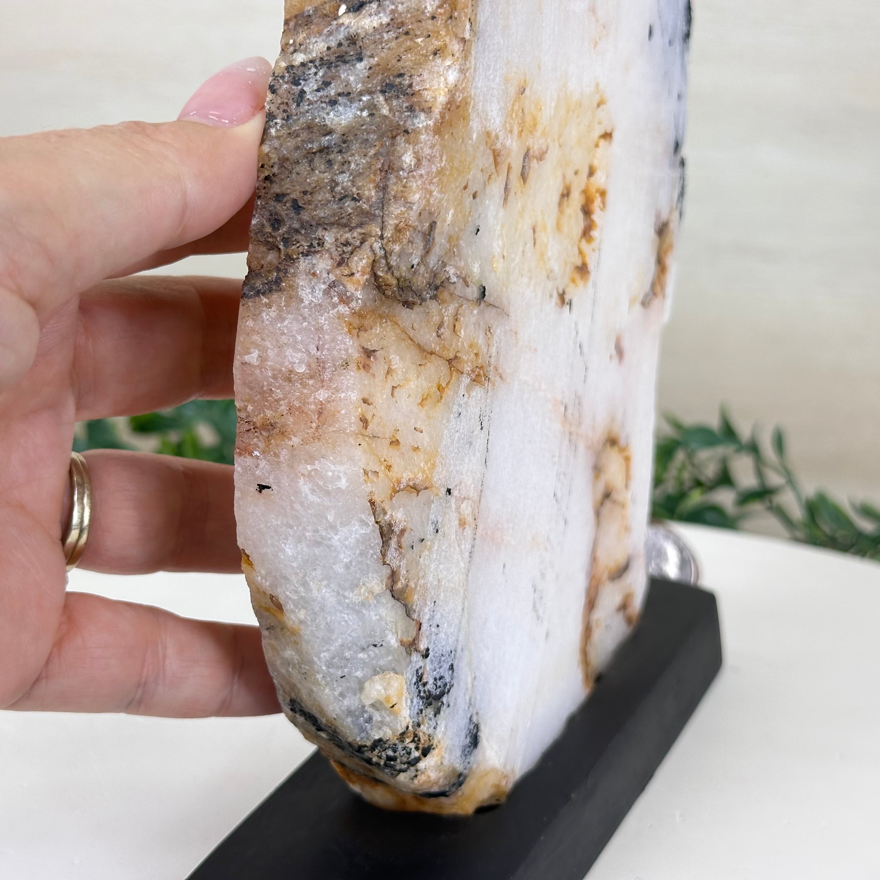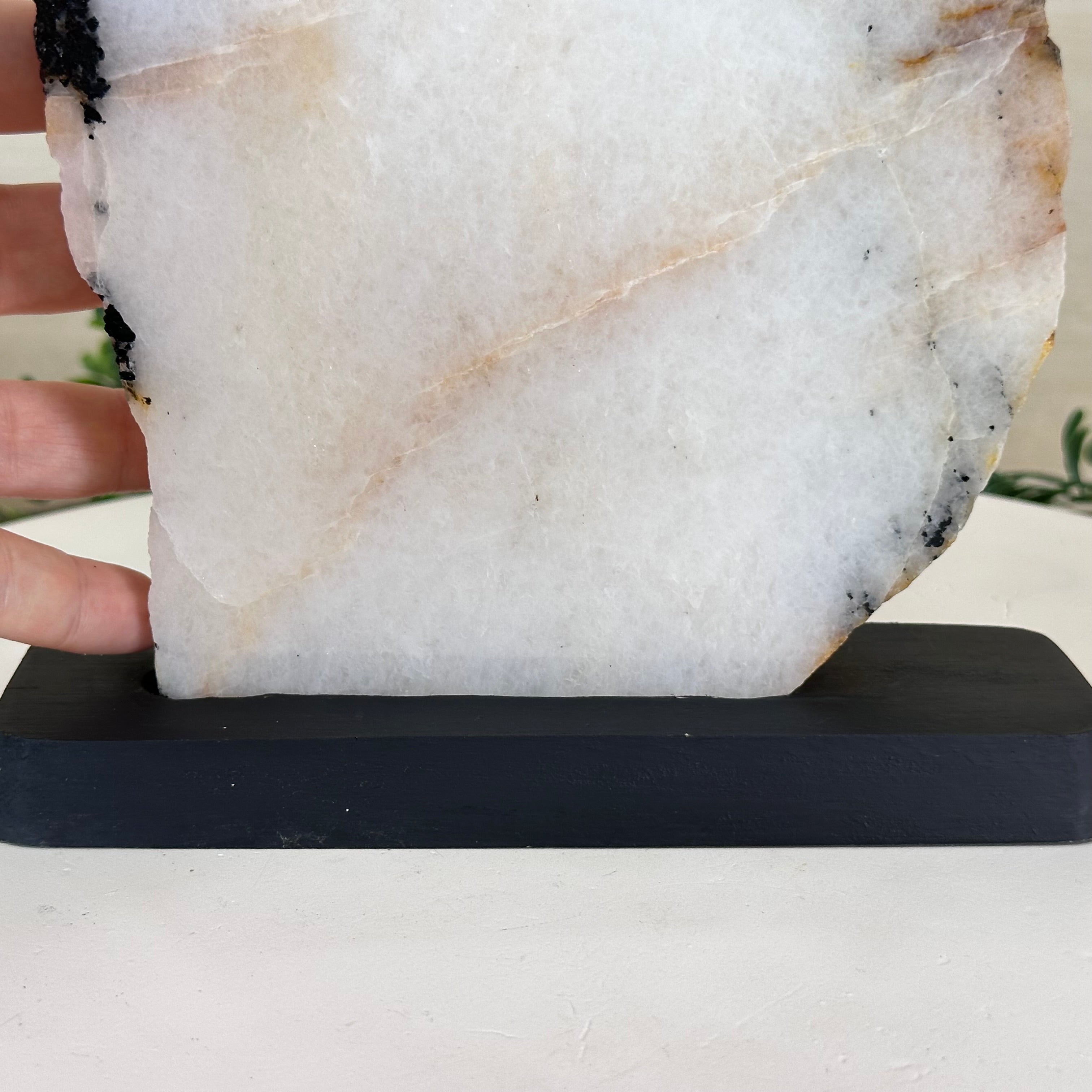 Tourmalinated Quartz Polished Slice on a Wood Base 9.3" Tall #6100TQ-004