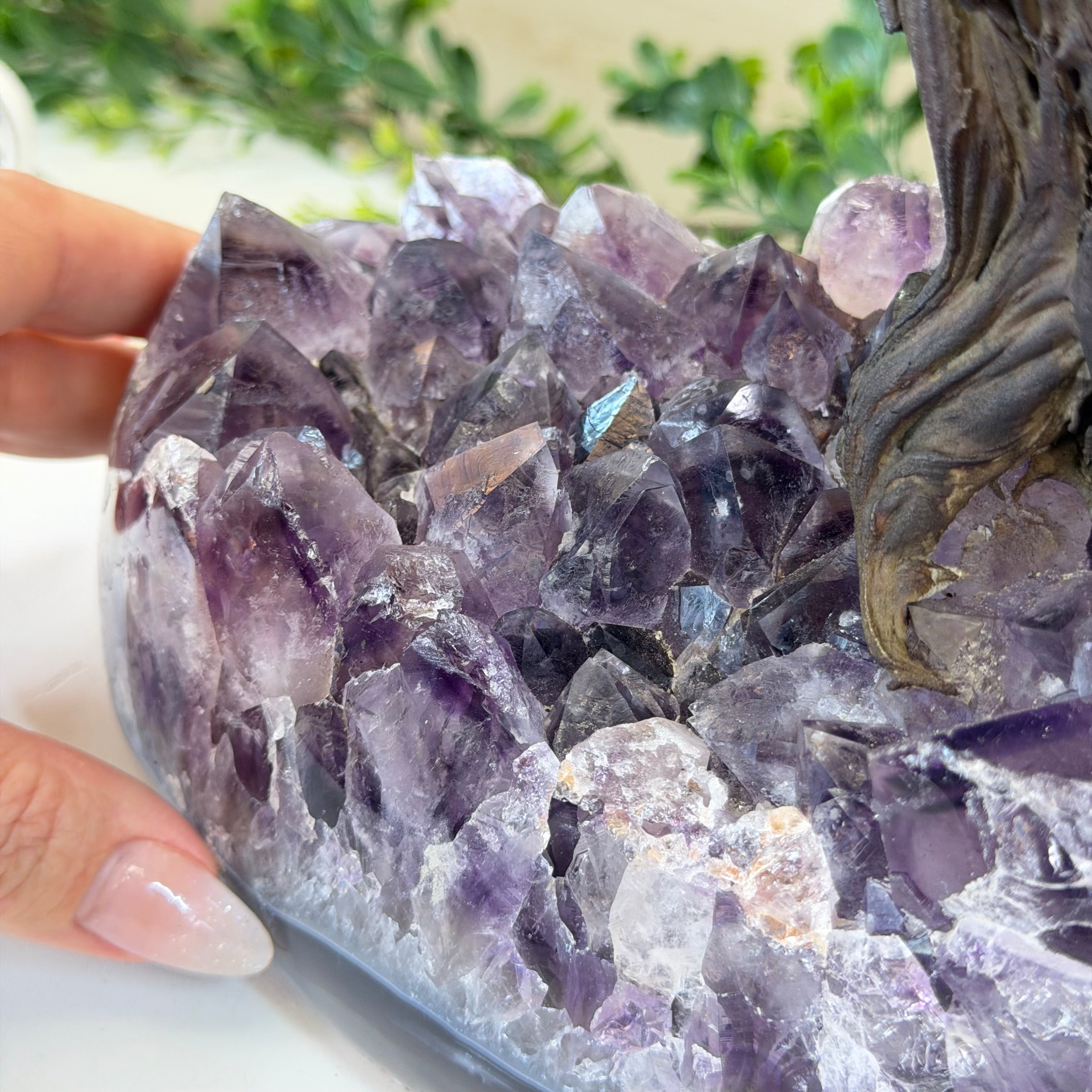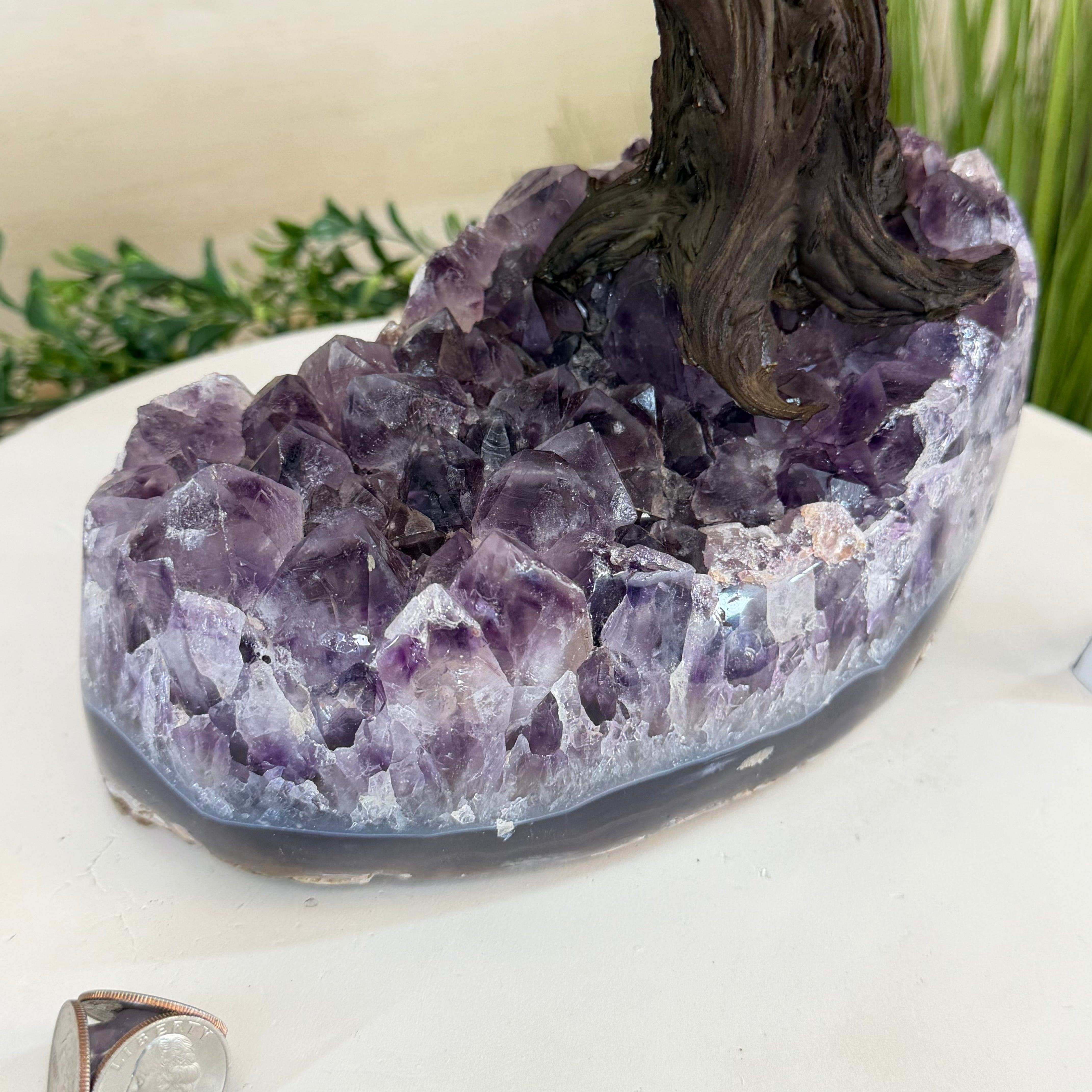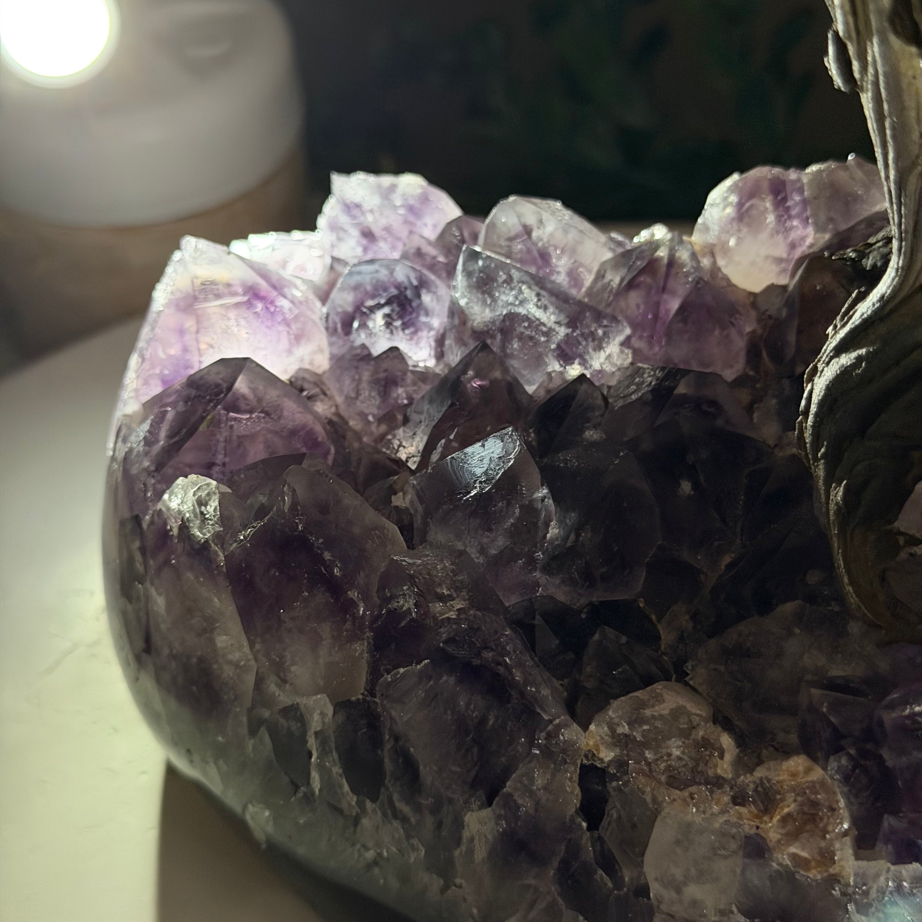 Rooted in a large natural Amethyst cluster, this tree is substantial in size—designed to become a focal point in any room, whether it’s a peaceful home corner or a thoughtful office space. It also makes a meaningful and lasting gift for someone special.