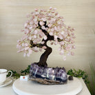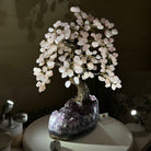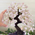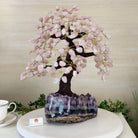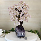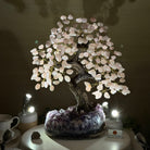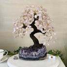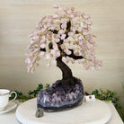Special Rose Quartz Bonsai Gemstone Tree on a Polished Amethyst Cluster Base