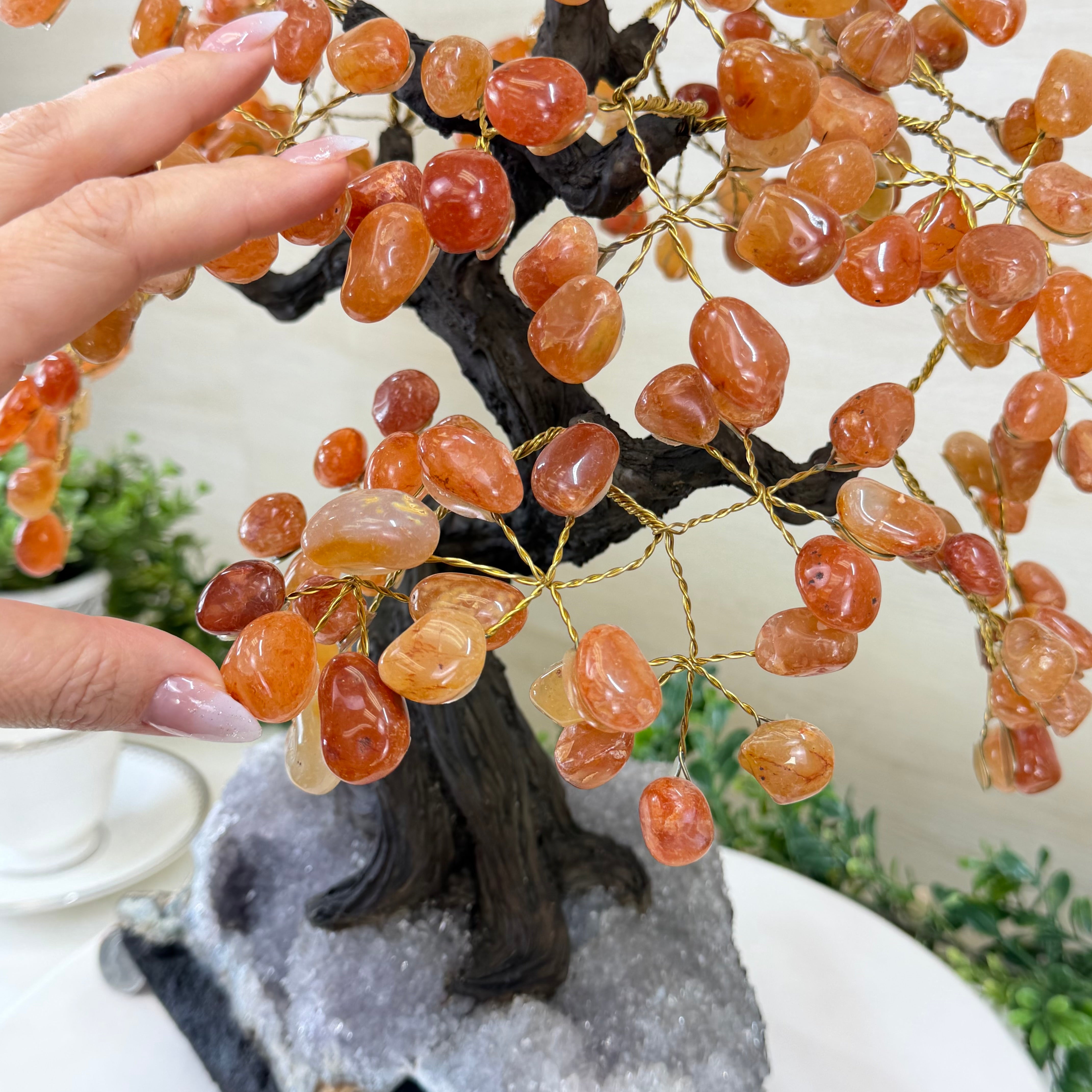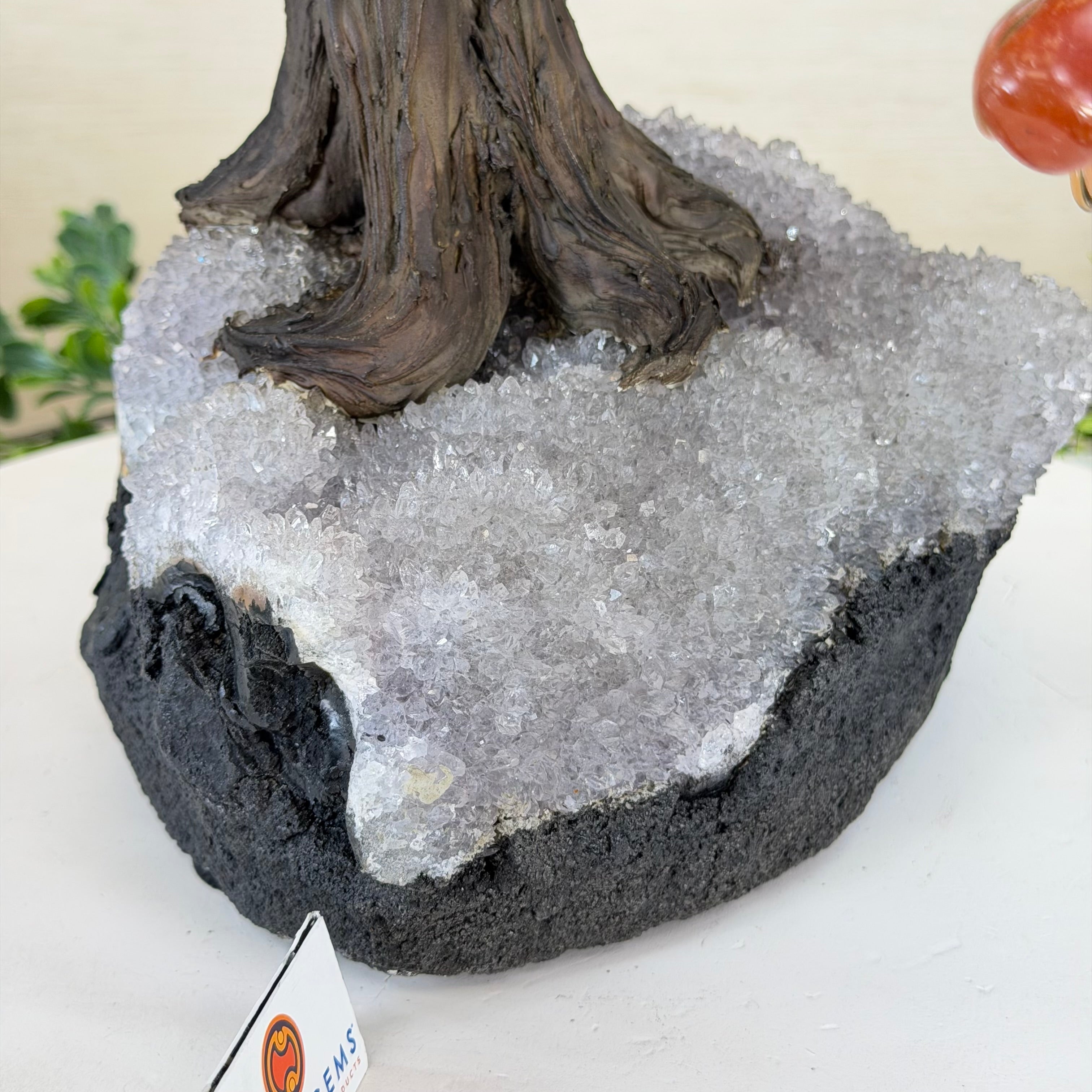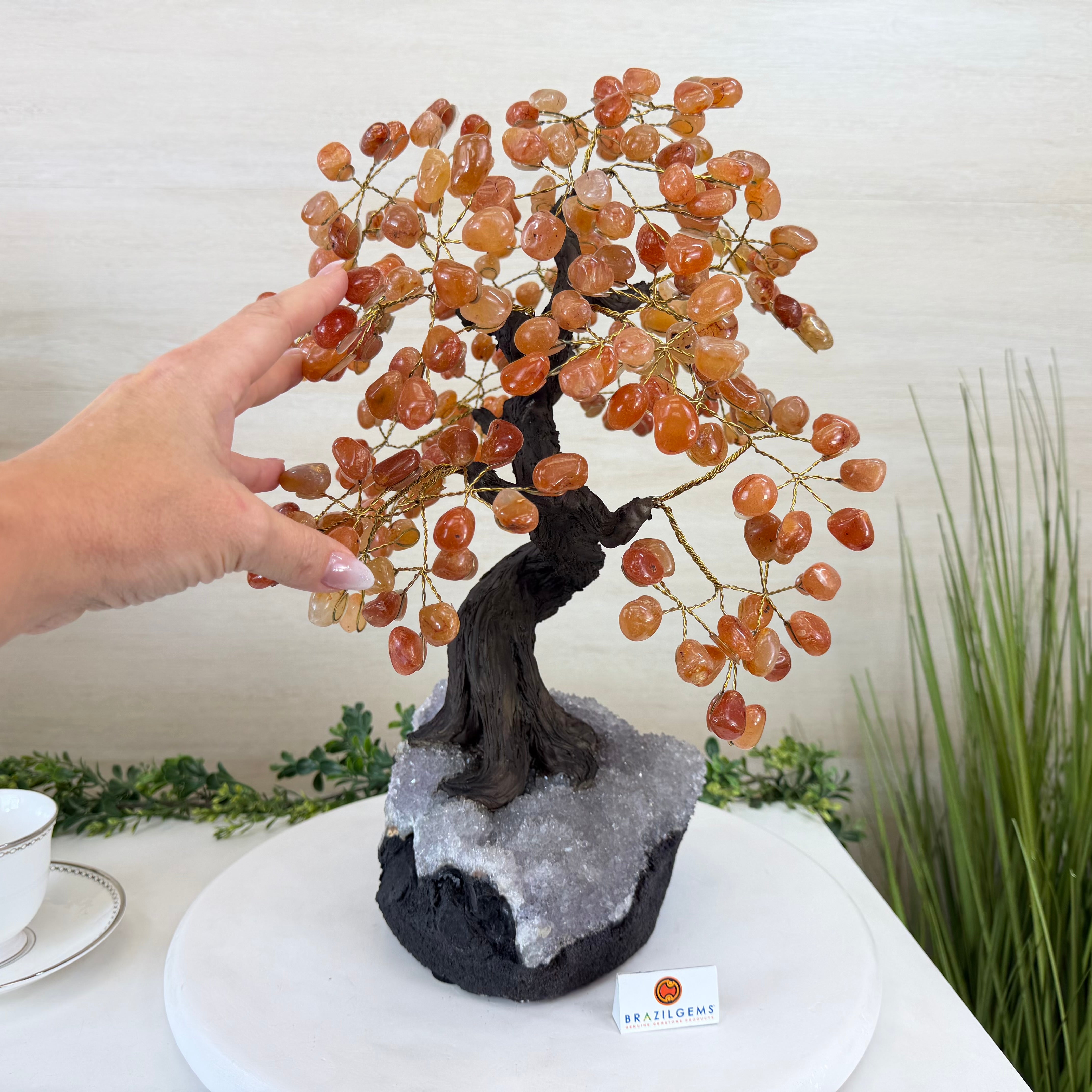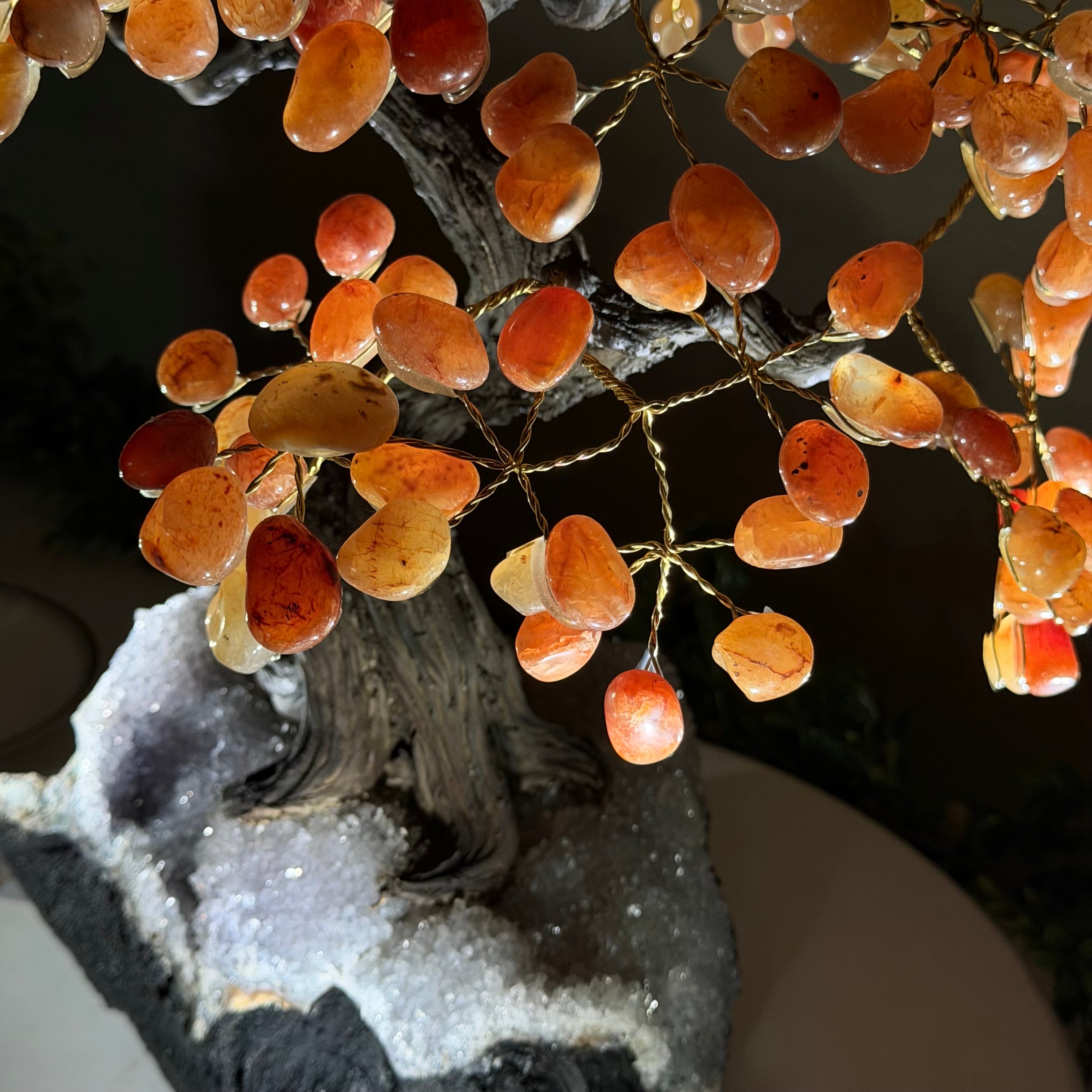 17" Tall Carnelian Bonsai Gemstone Tree, Amethyst Base, 240 Gems #5405CARN-003