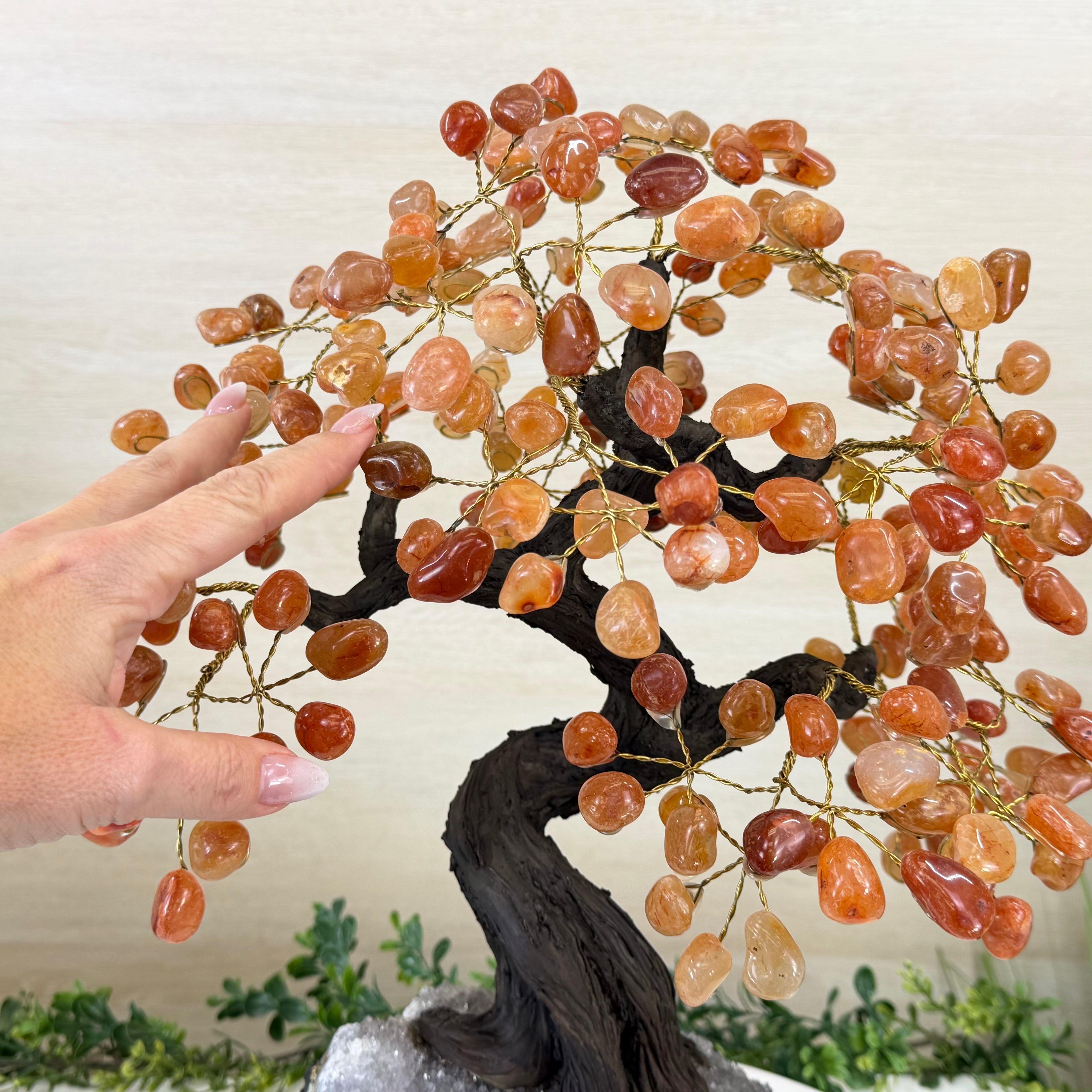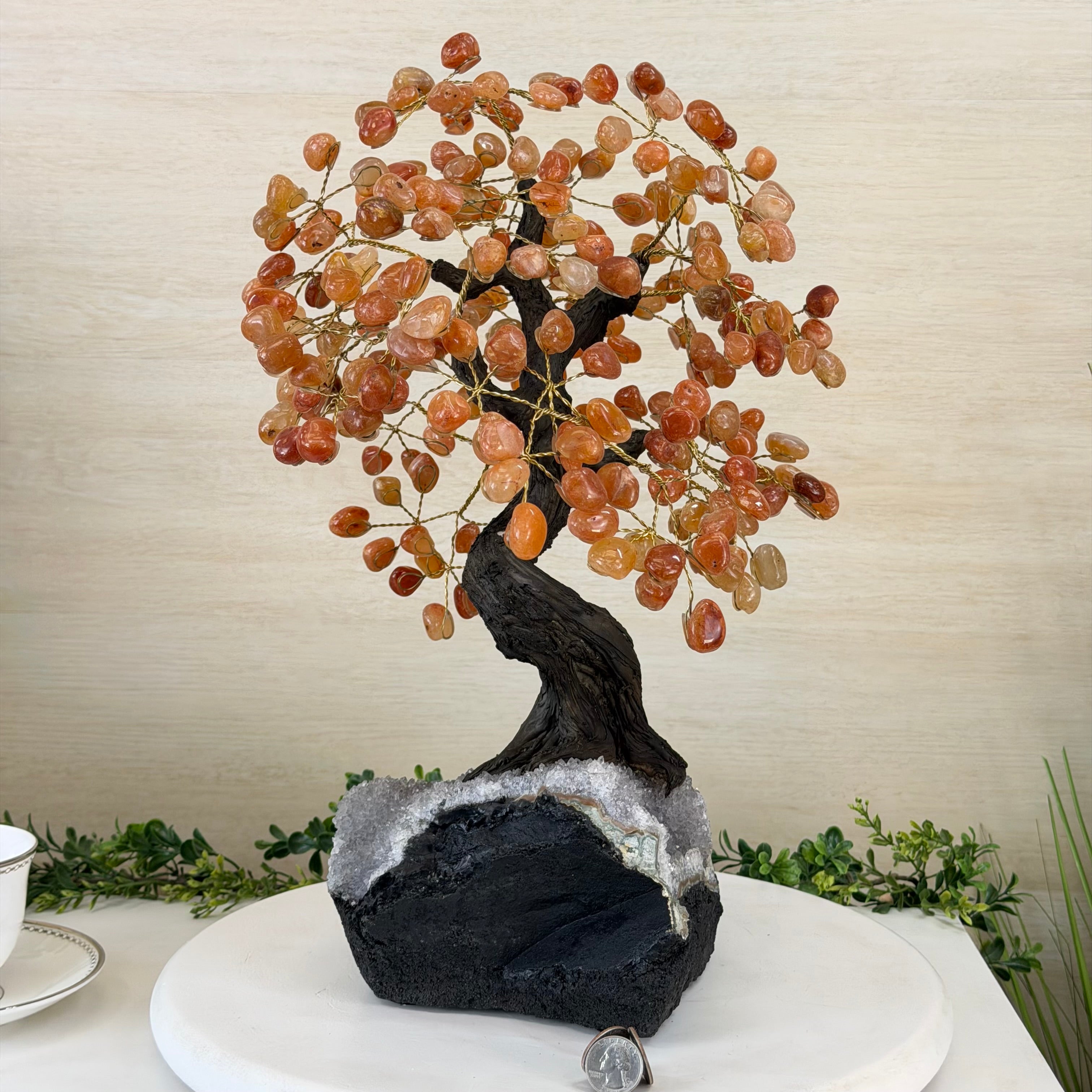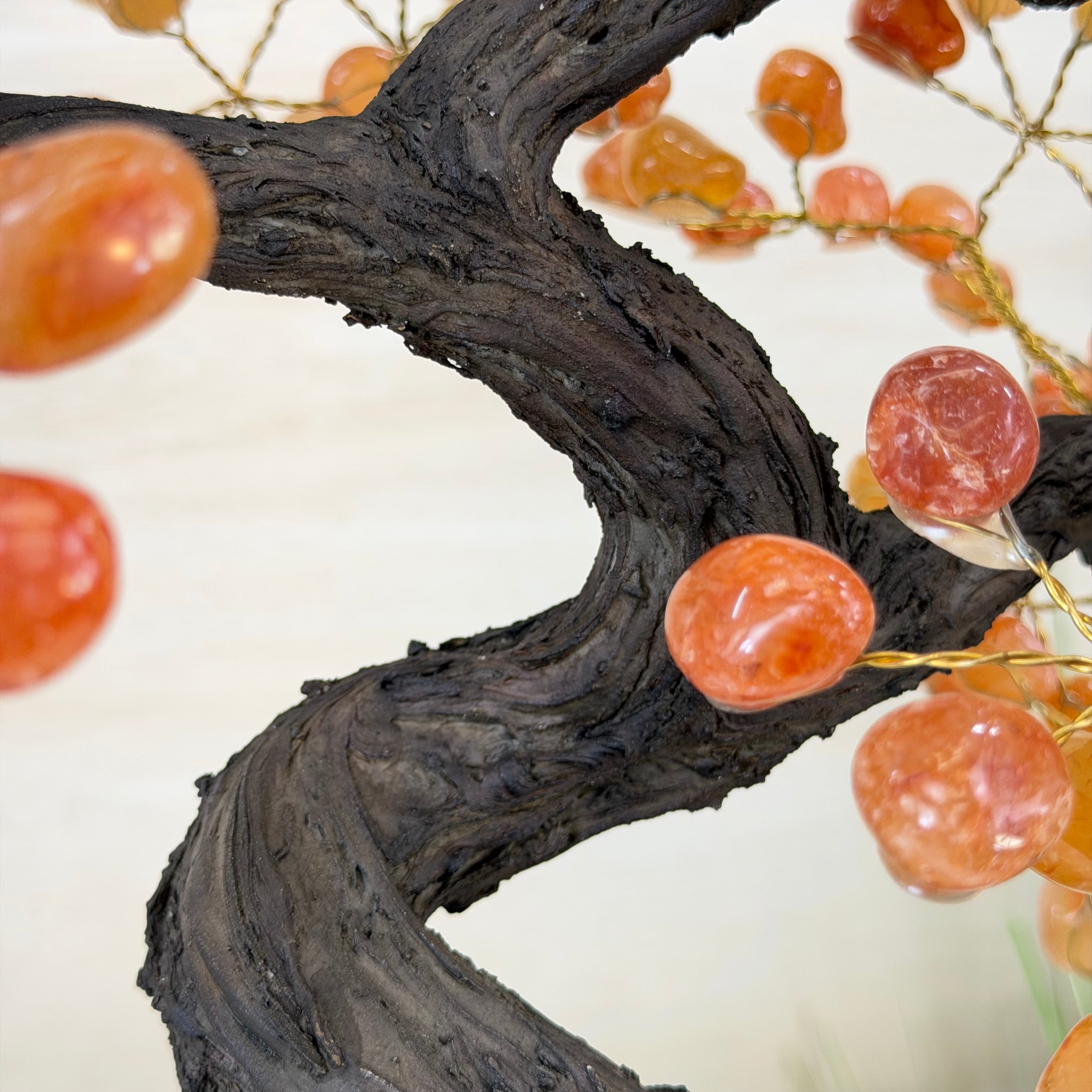17" Tall Carnelian Bonsai Gemstone Tree, Amethyst Base, 240 Gems #5405CARN-003