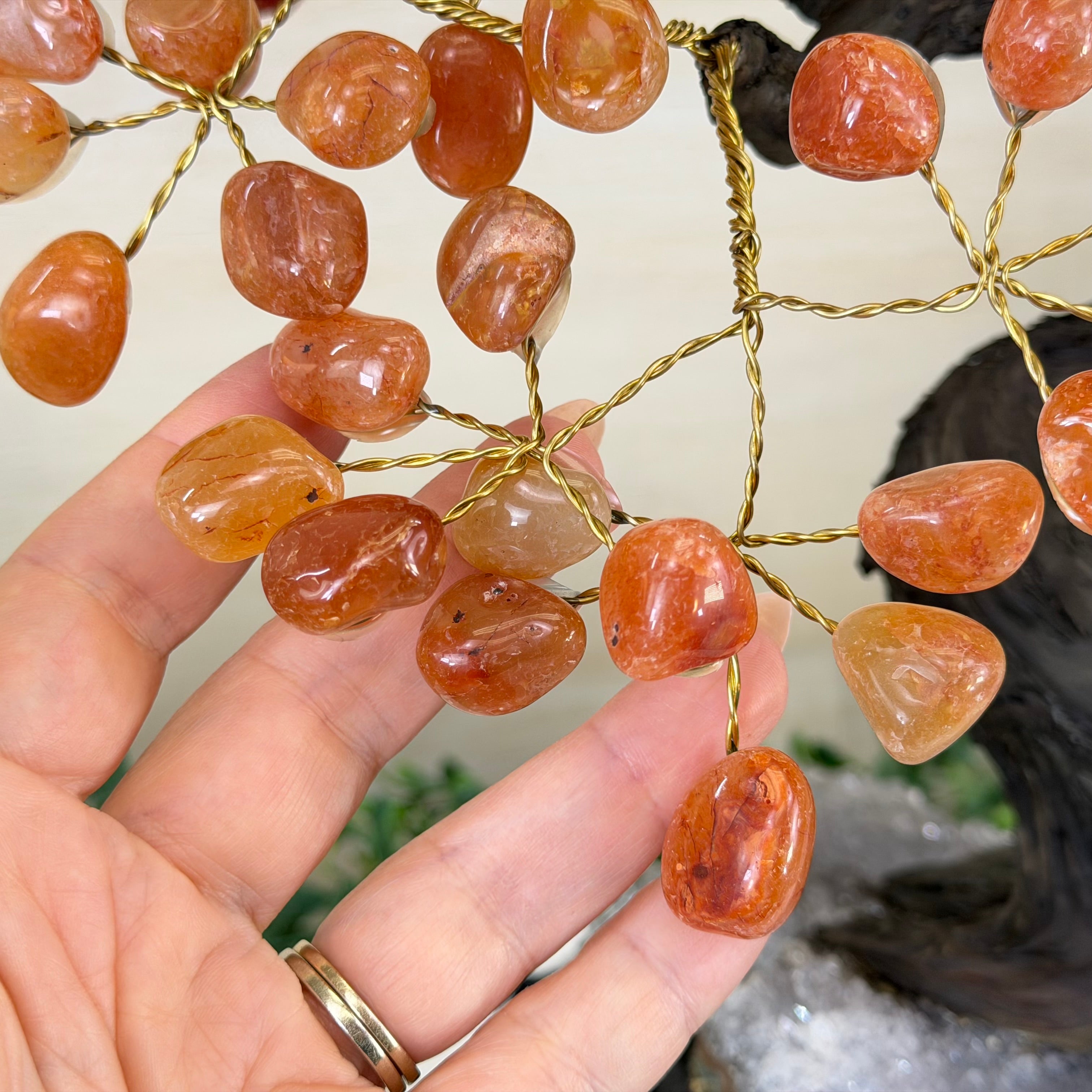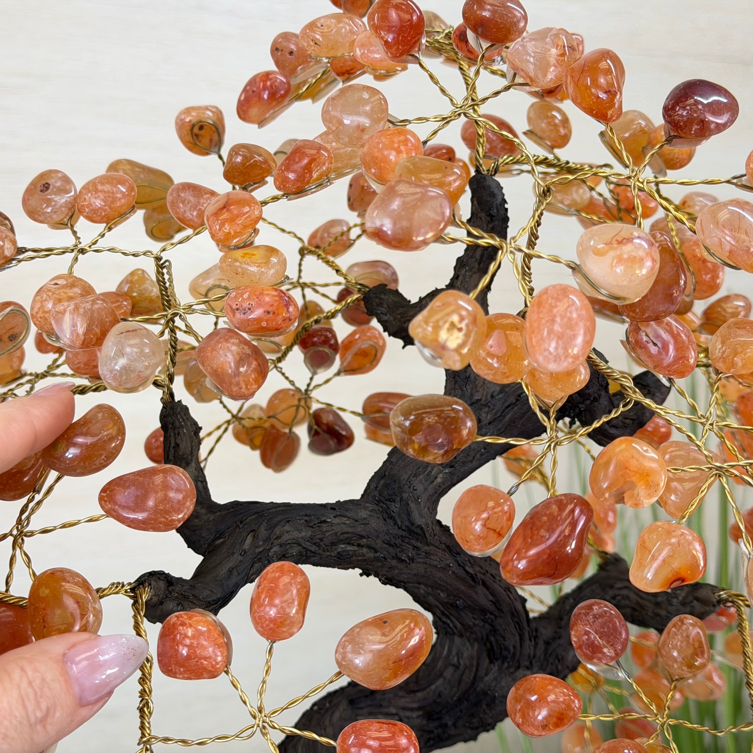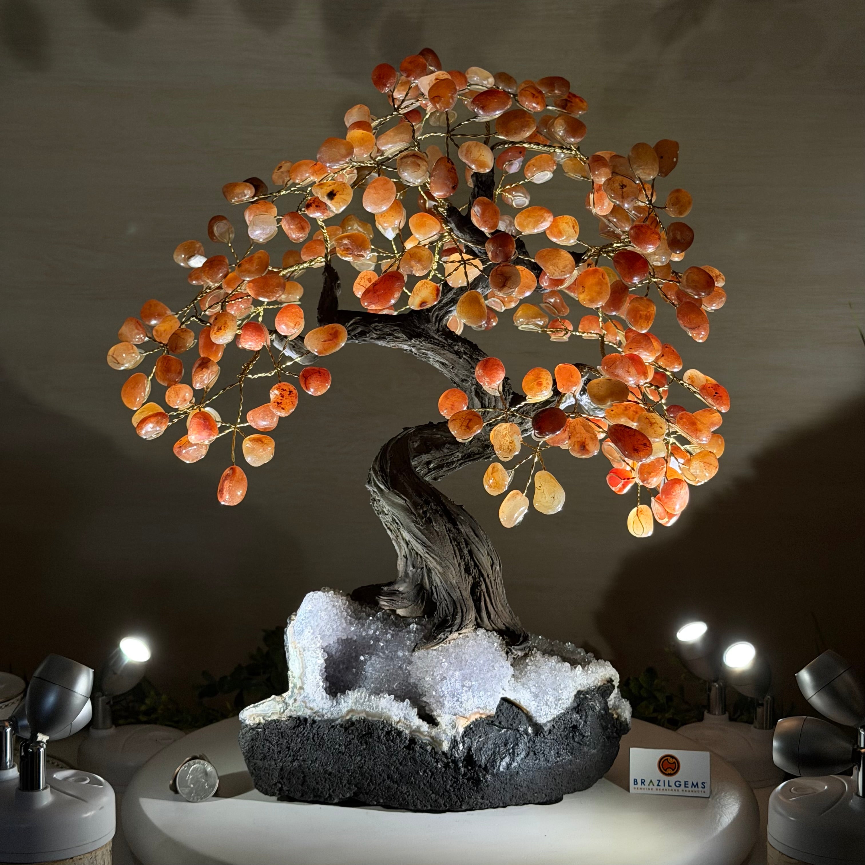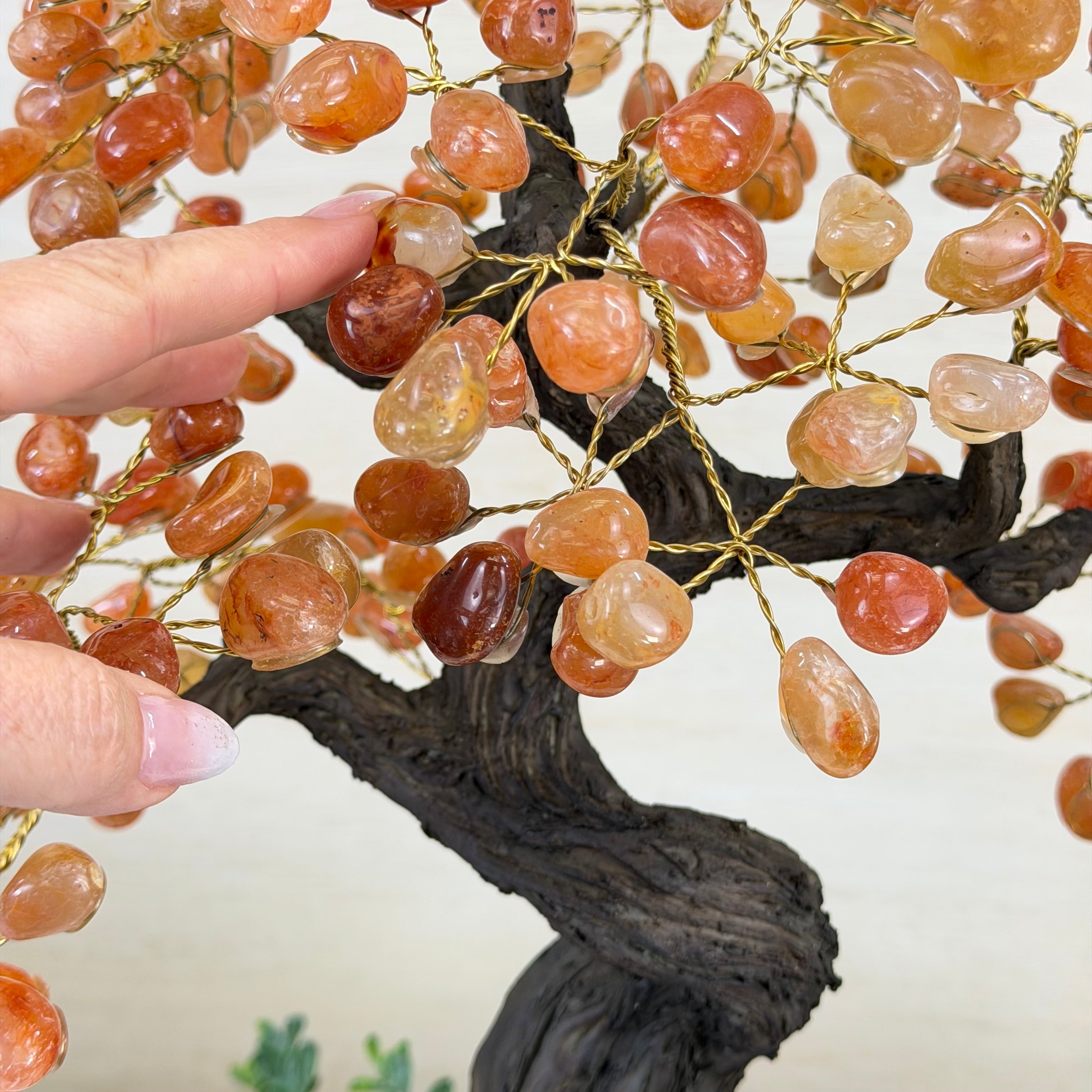17" Tall Carnelian Bonsai Gemstone Tree, Amethyst Base, 240 Gems #5405CARN-003