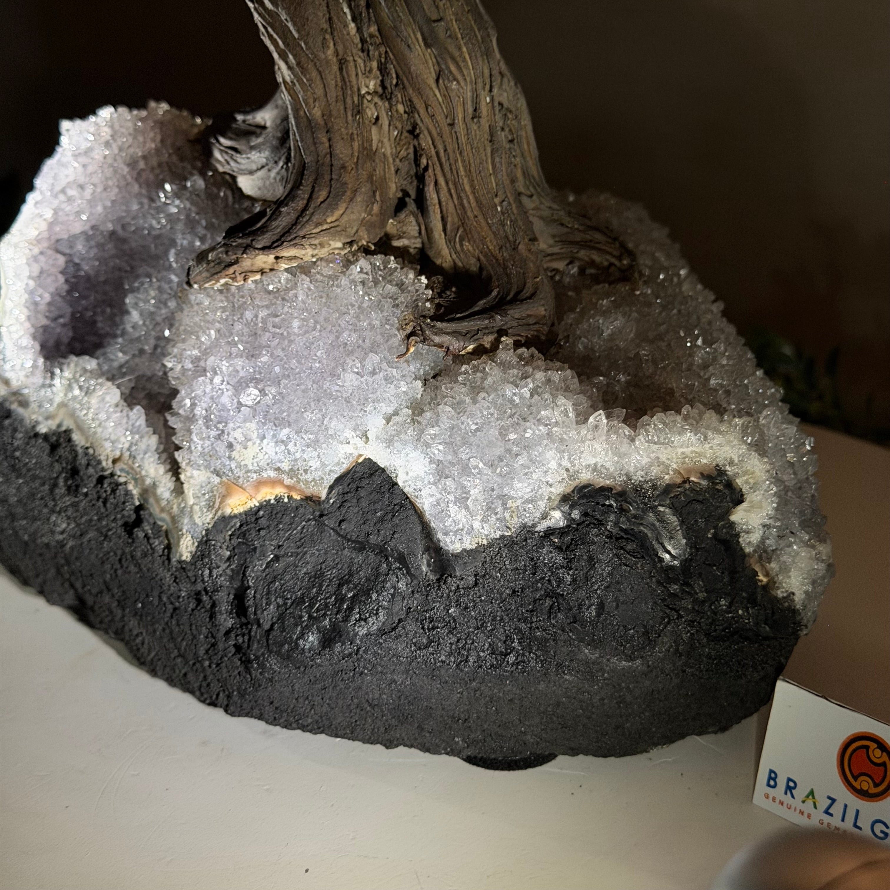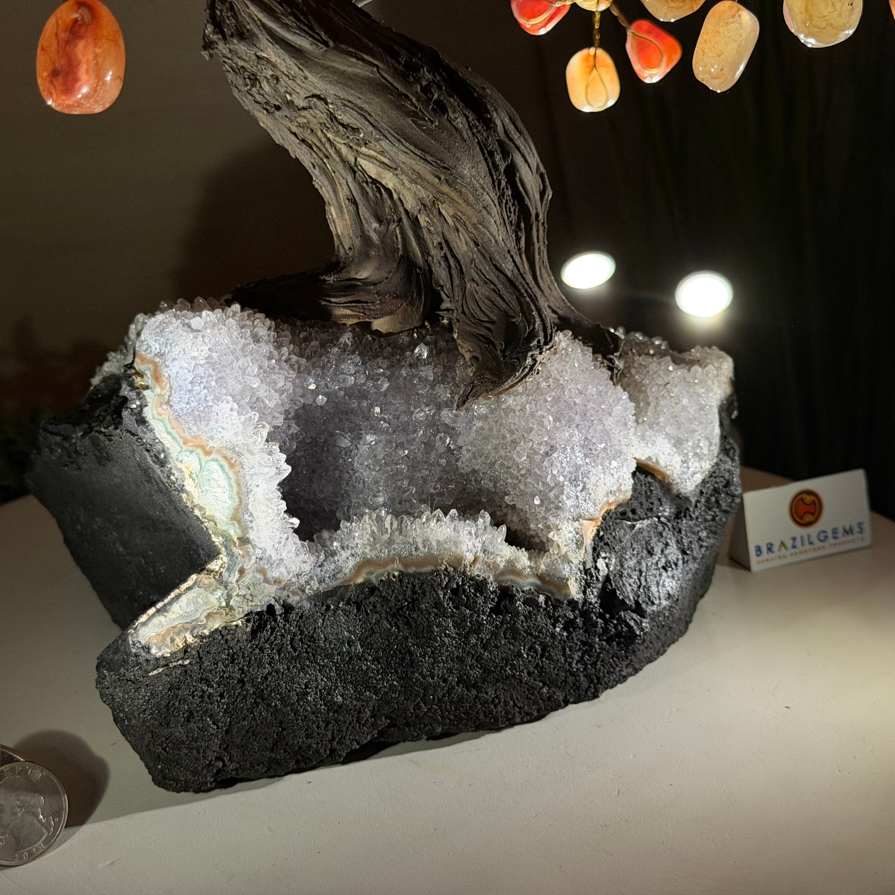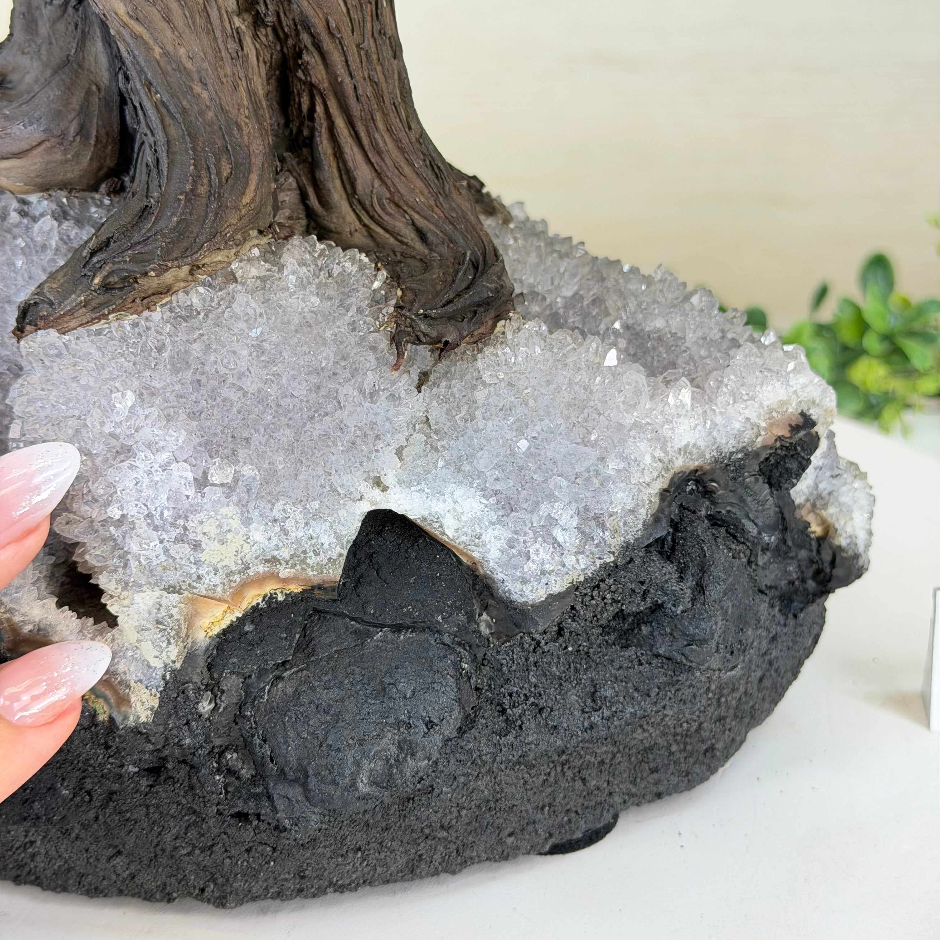 17" Tall Bonsai Amethyst Gemstone Tree, Amethyst base, 240 Gems #5405AMTH-004
