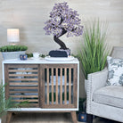At approximately 25" tall to the top of its bark style branches this gemstone tree is both big and a design statement that will impact any room in your home or office. The amethyst clusters used as bases for this size of our gemstone trees are substantial gemstones on their own.