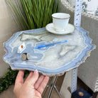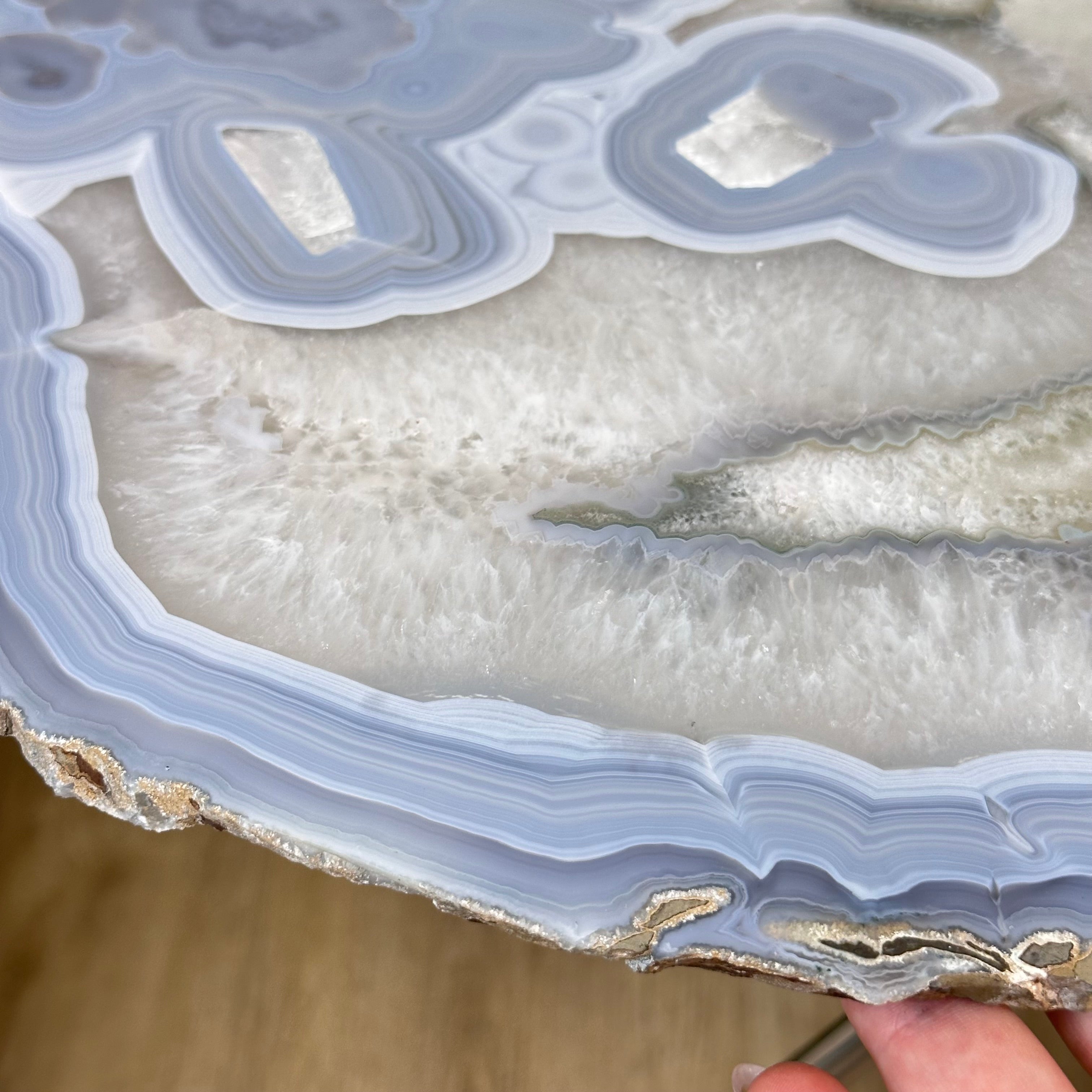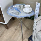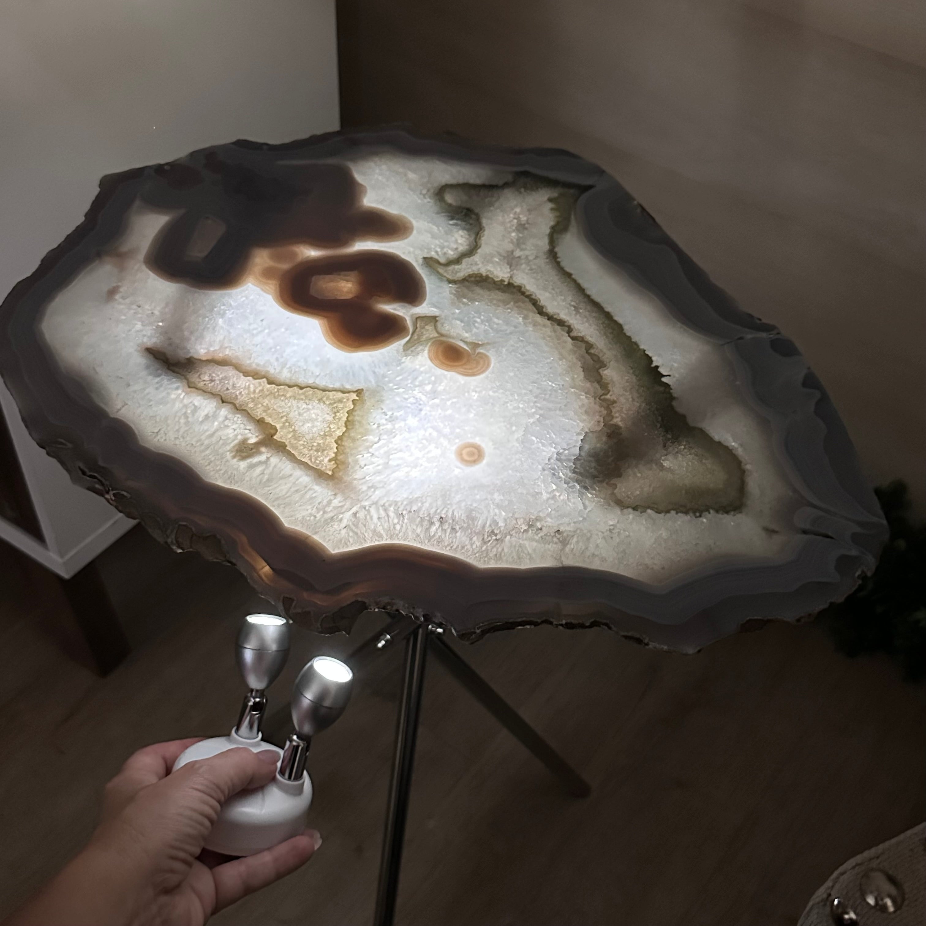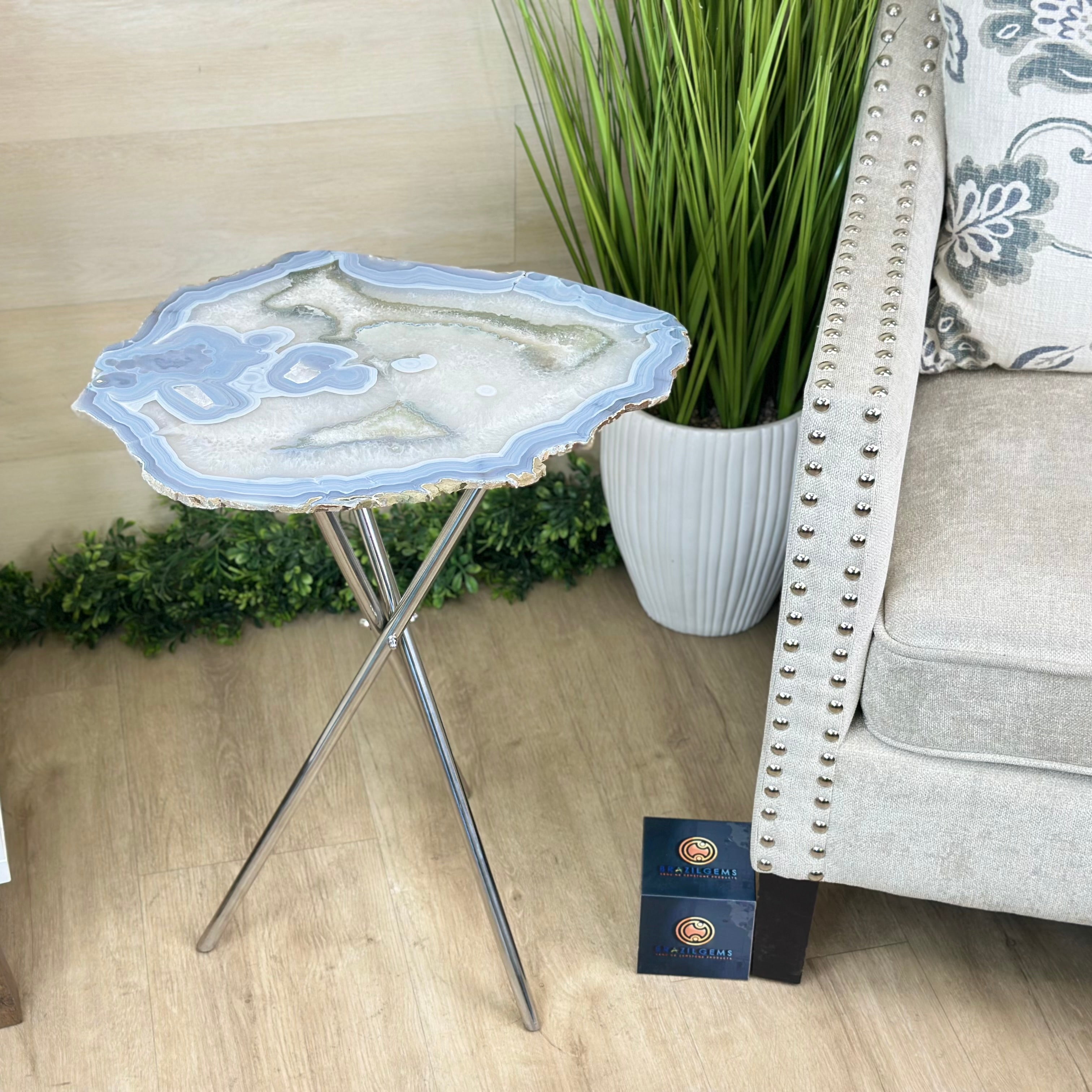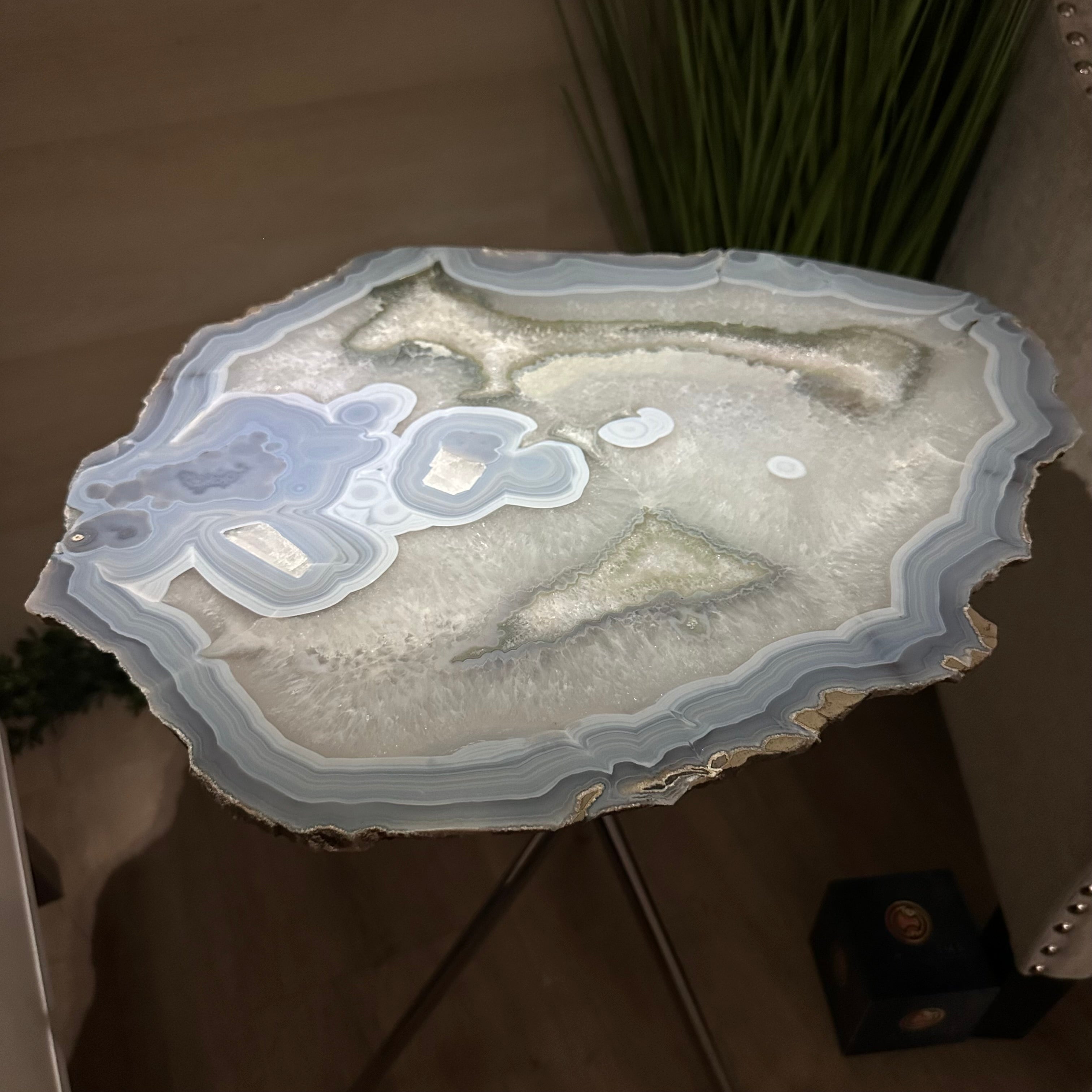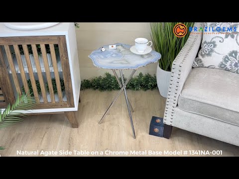 Natural Agate Side Table on Chrome Metal Base, 23.9" Tall #1341NA-001