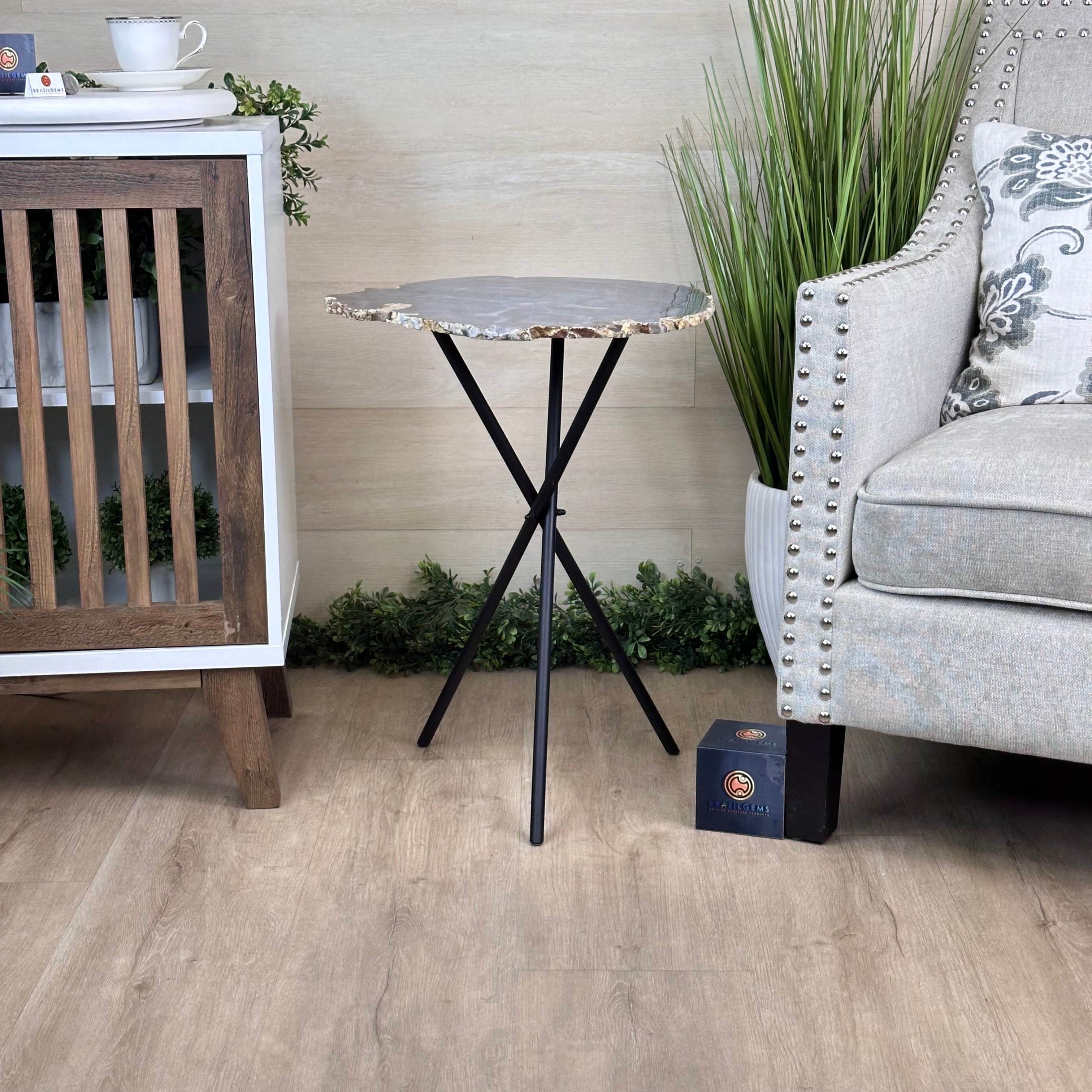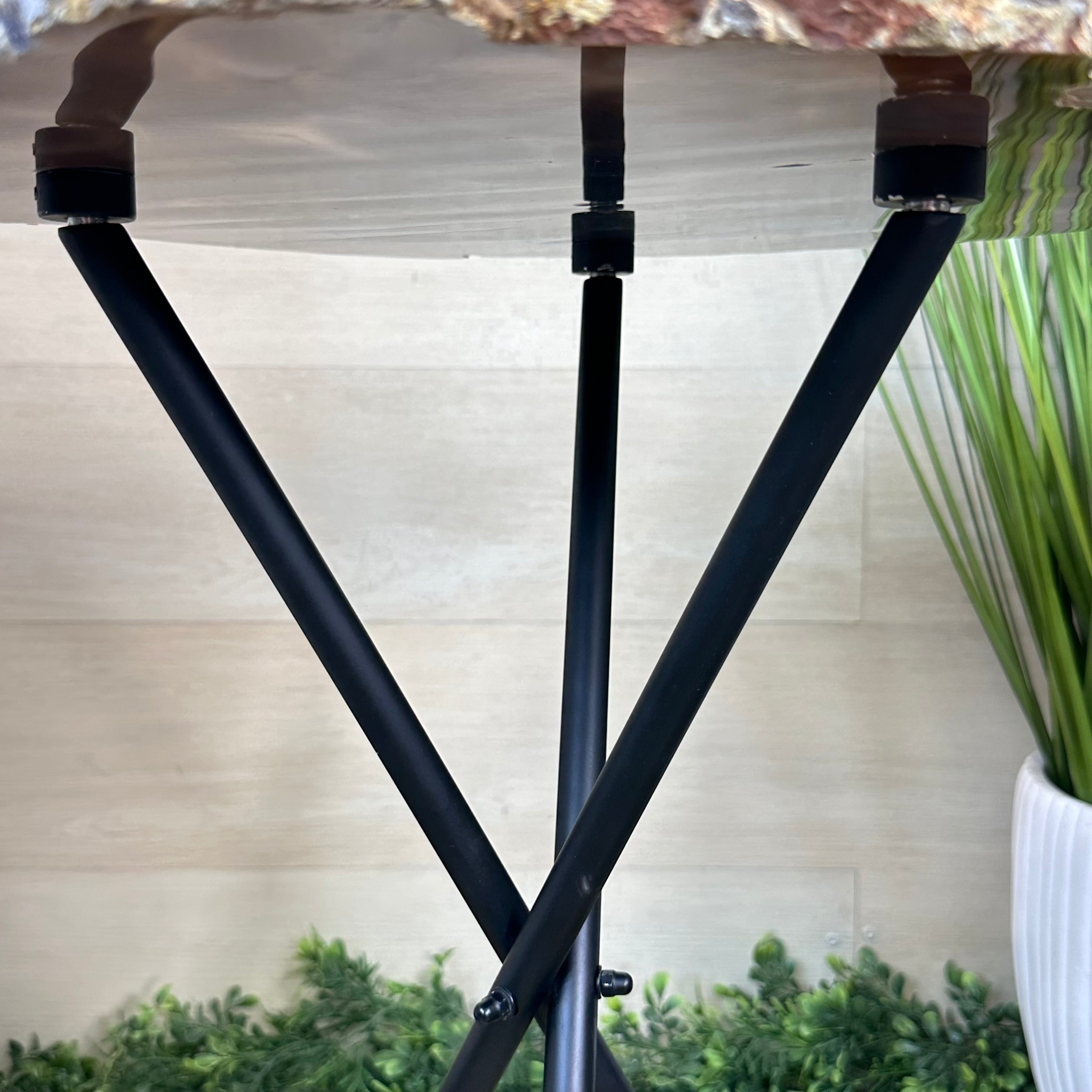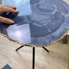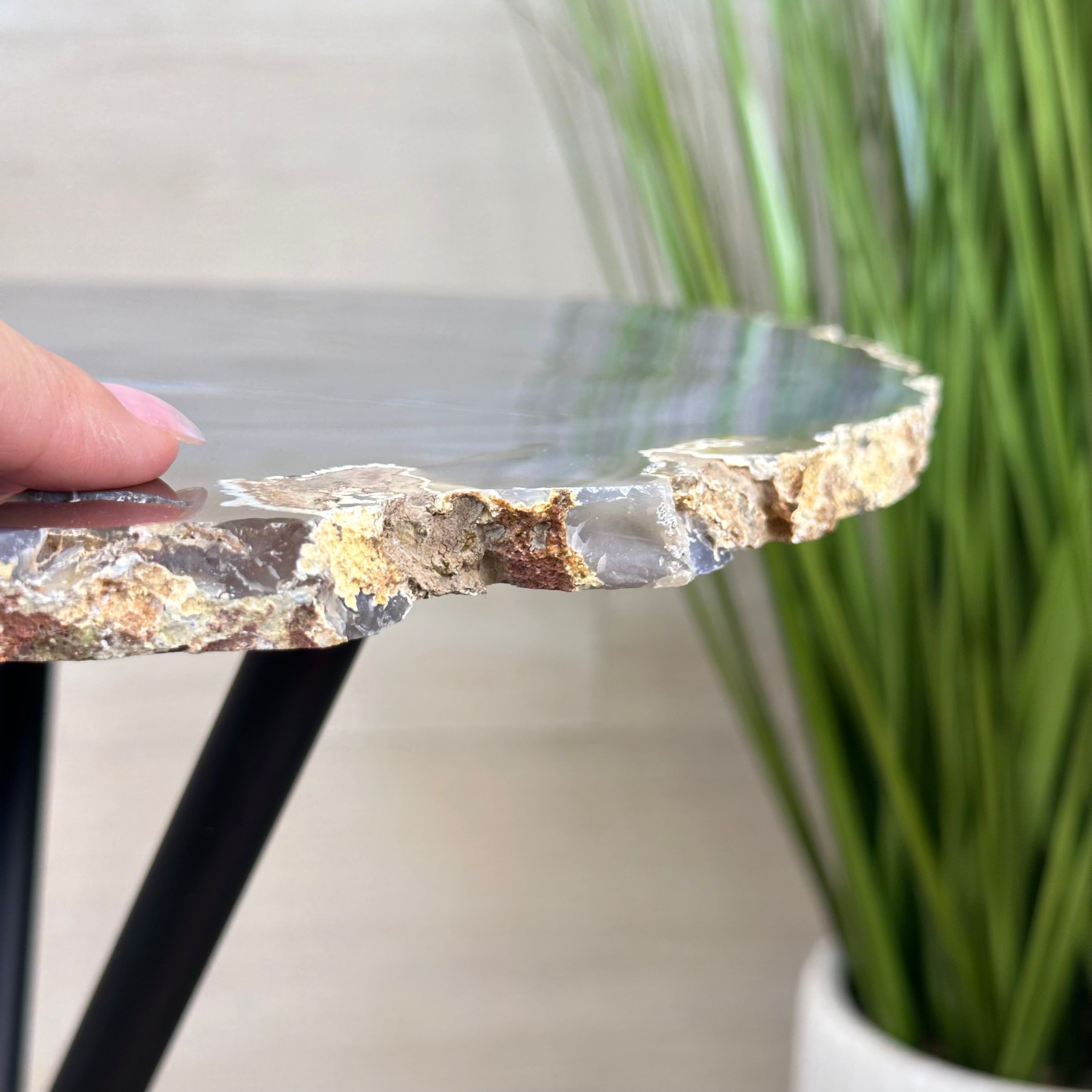 Natural Agate Side Table on Black Metal Base, 23.6" Tall #1342NA-001