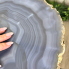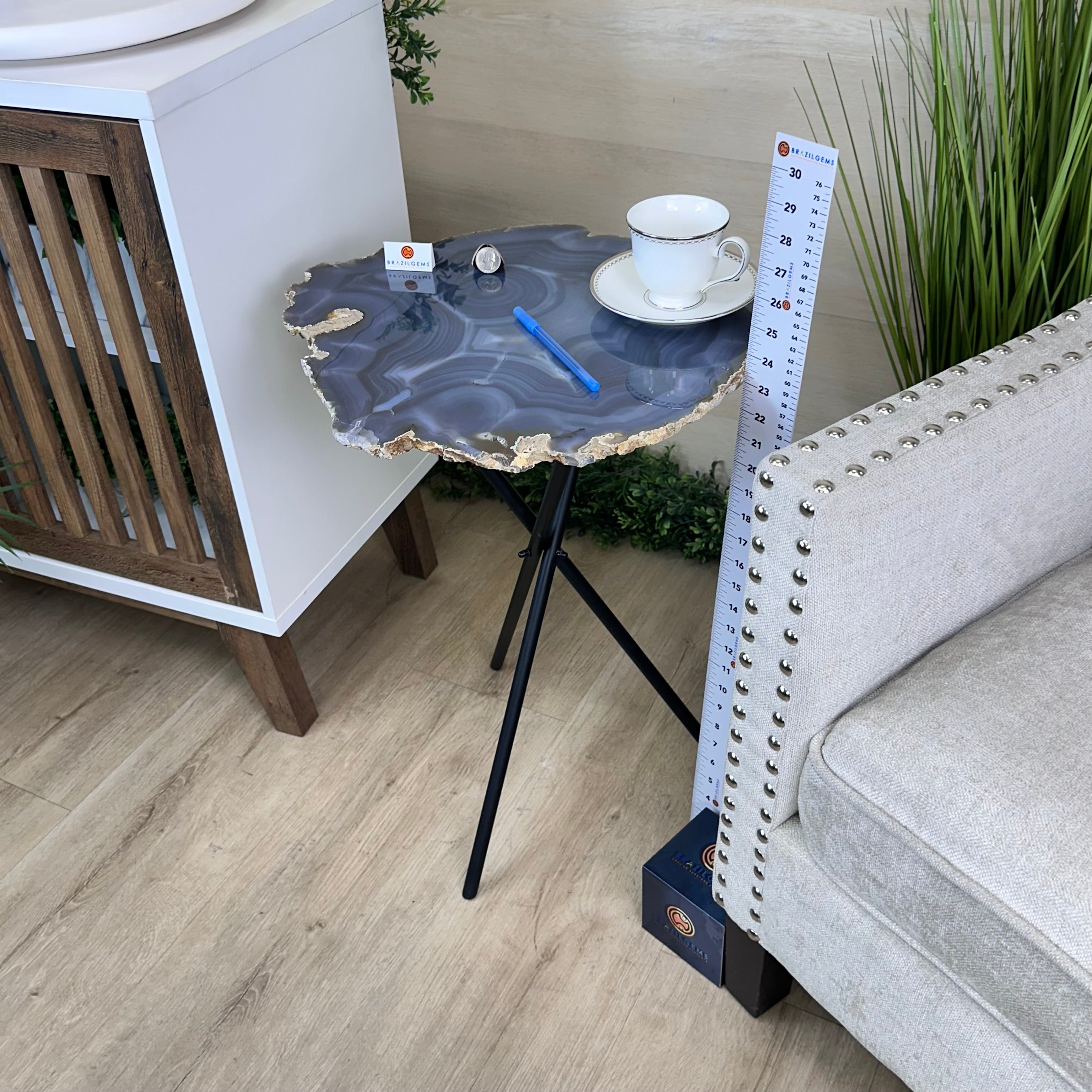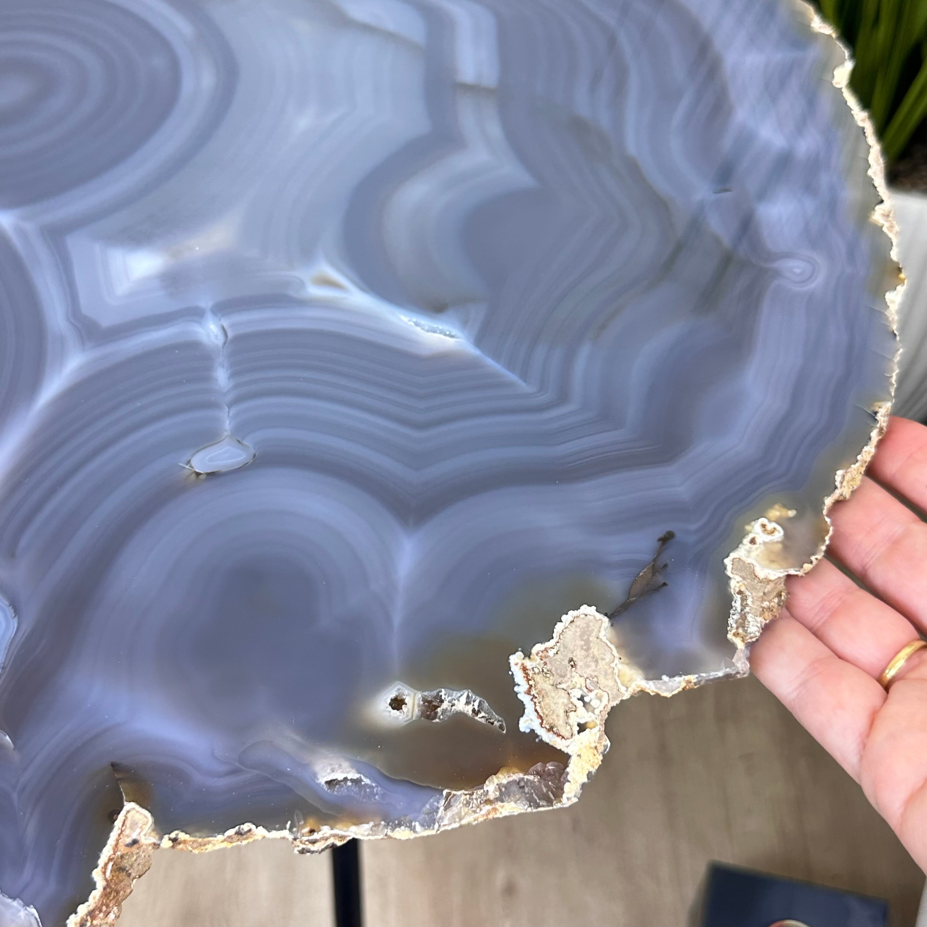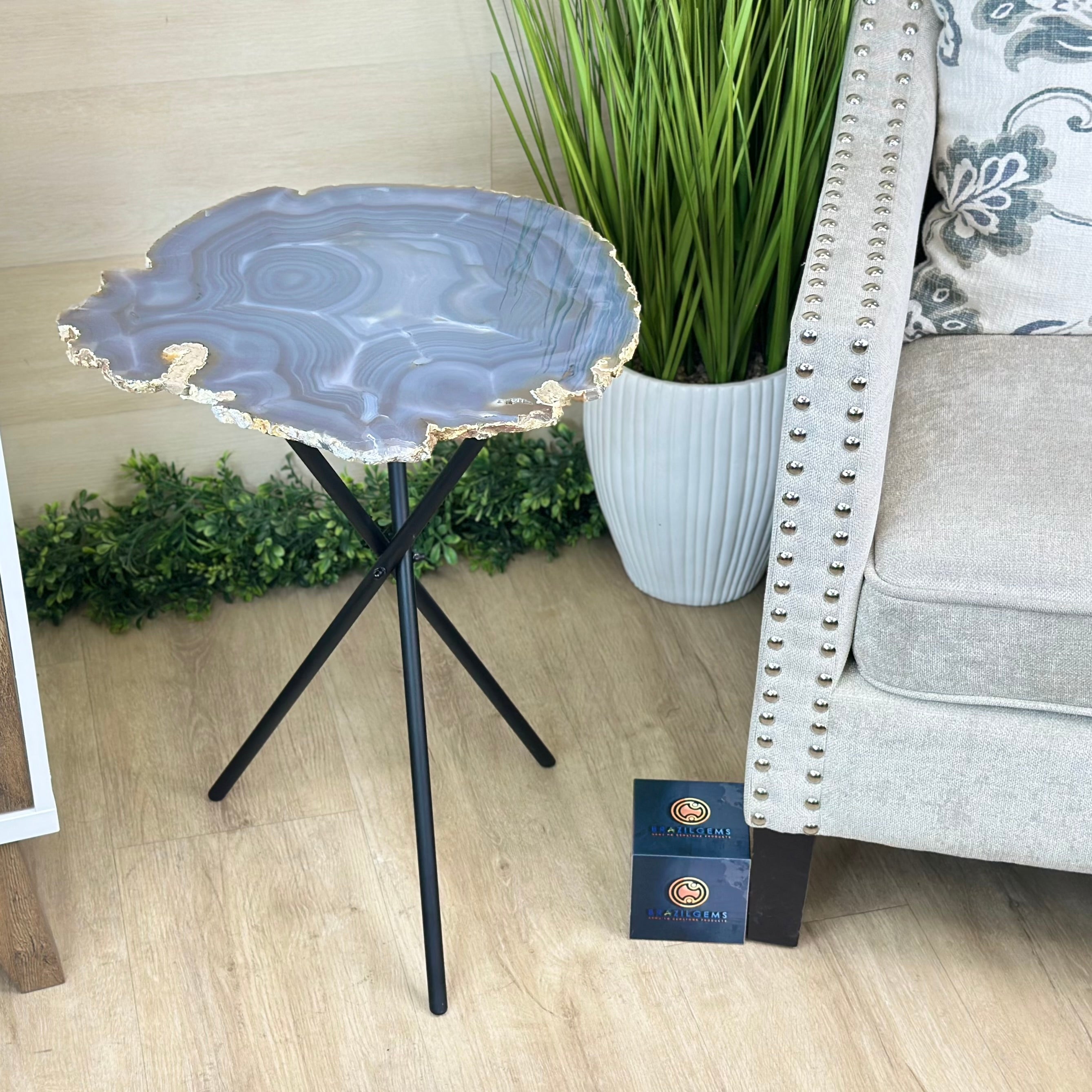 Natural Agate Side Table on Black Metal Base, 23.6" Tall #1342NA-001