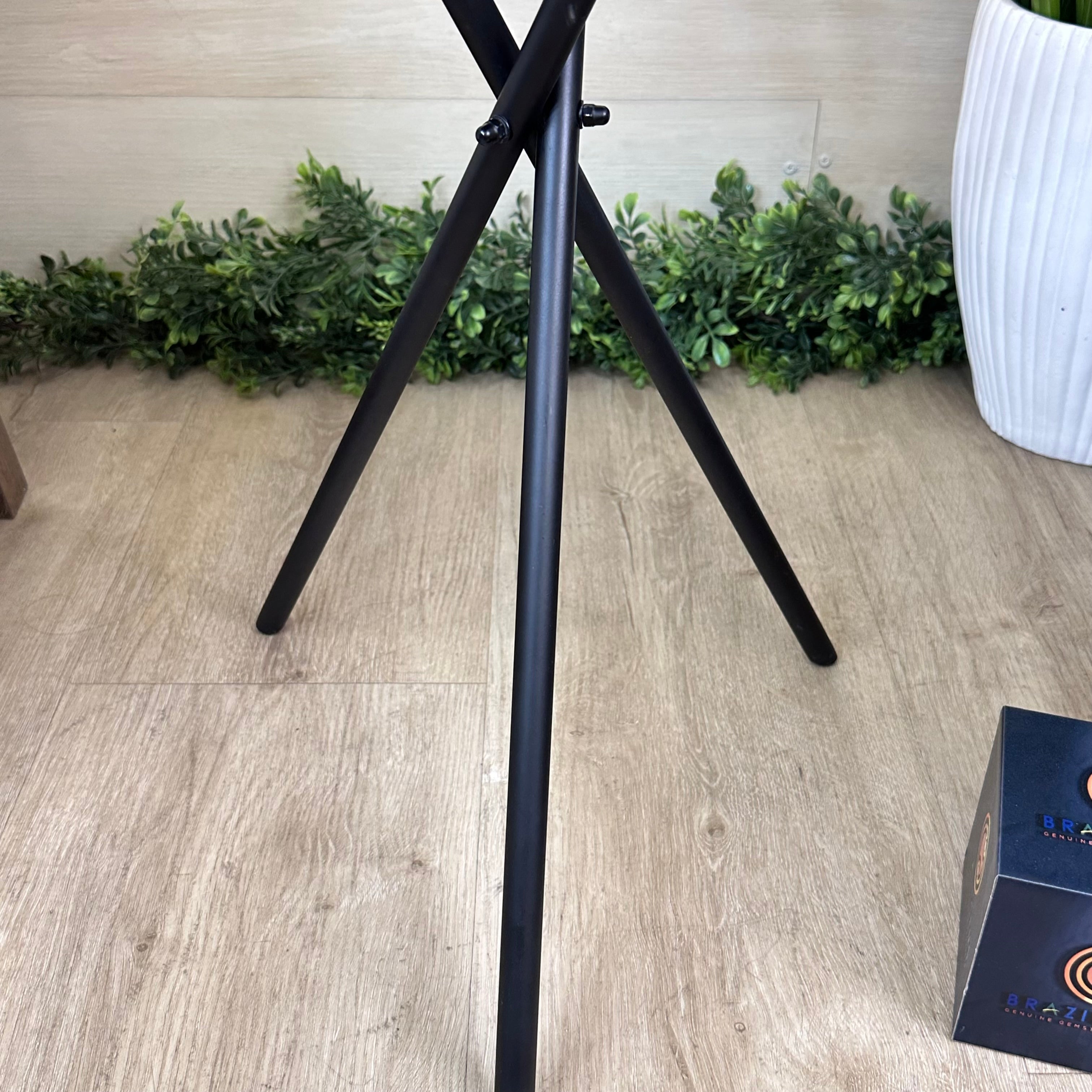 Disclaimer: This is a natural gemstone sold as is by Brazil Gems® as you see it in its images and video. It may contain natural imperfections as well as imperfections, scratches, repairs and broken edges from the extraction, slicing and polishing processes. Some assembly required to tighten the legs (Tool provided). The metal base was painted black. Brazil Gems® makes every effort to get measurements as exact as possible but they are done by human hands & eyes and therefore may have minor discrepancies.