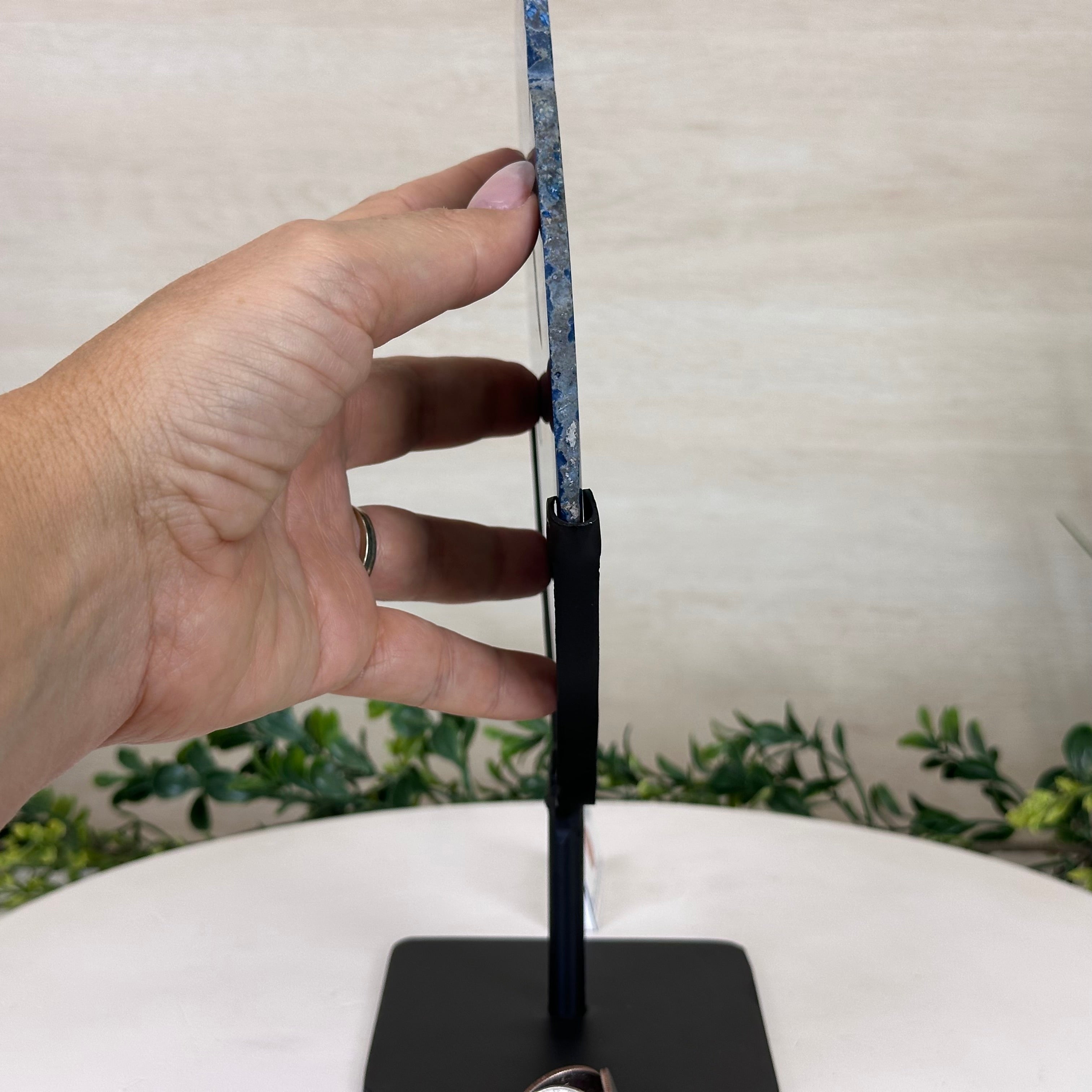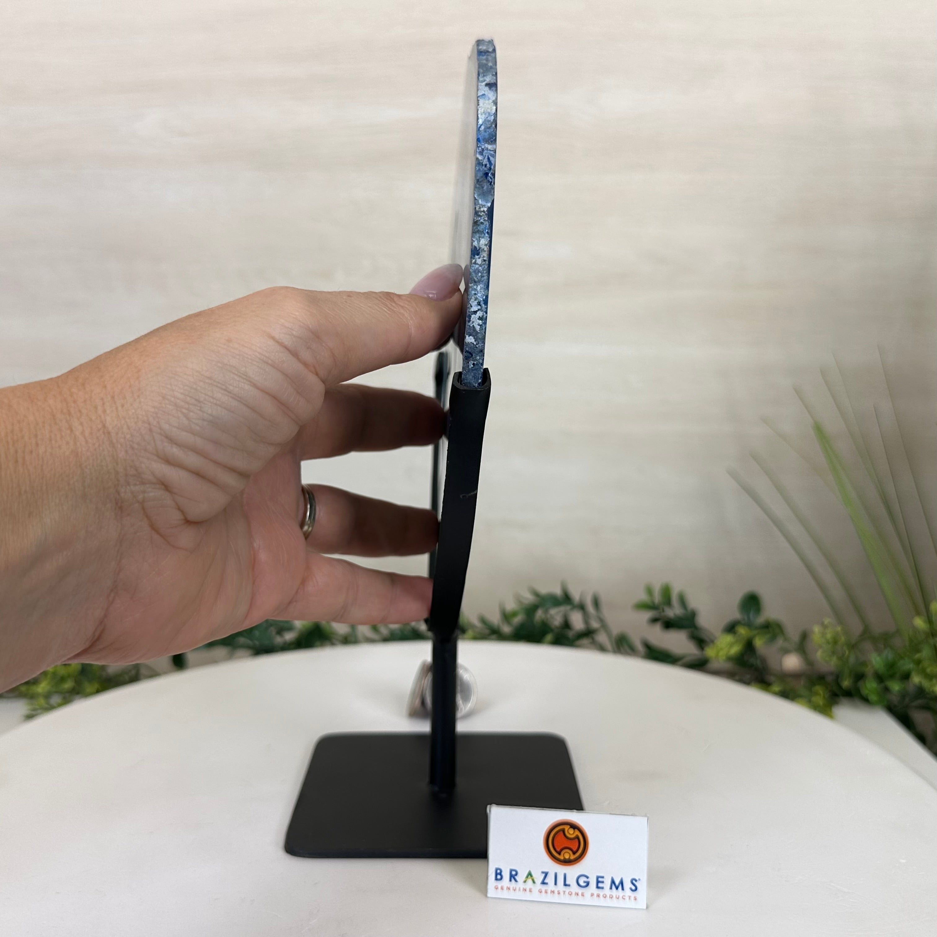 Brazilian Blue Agate Slice on a Metal Stand, 10.2" Tall #5055-0165