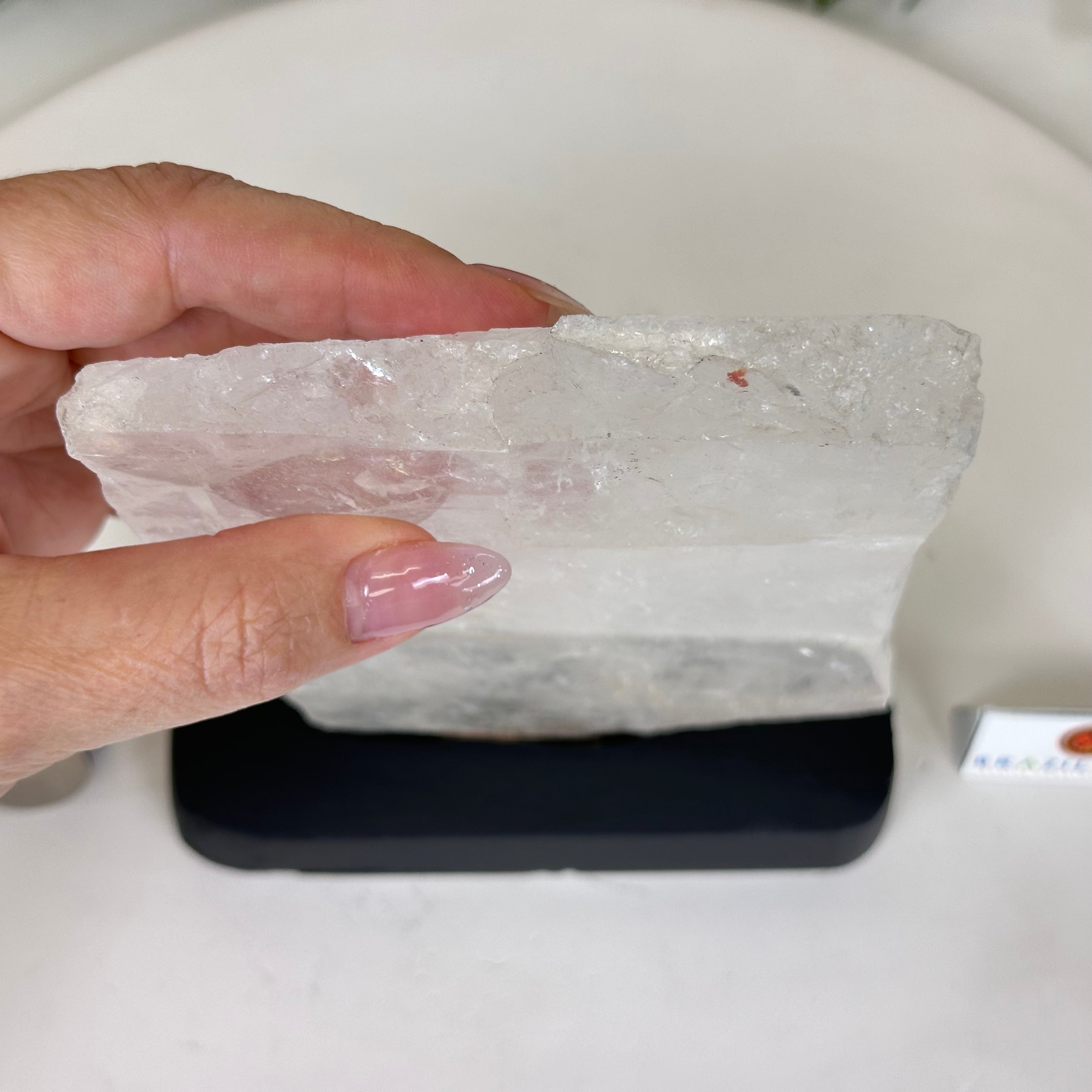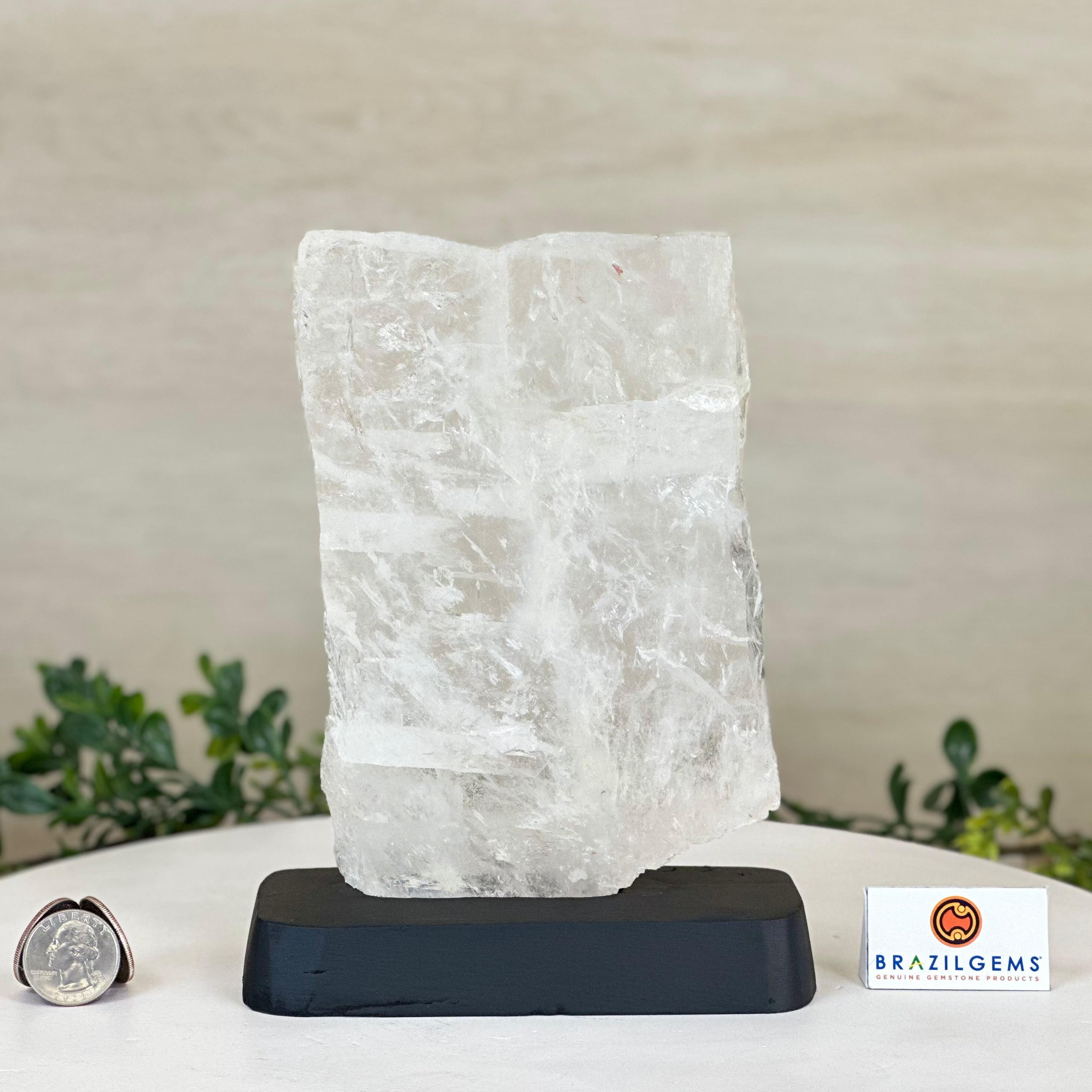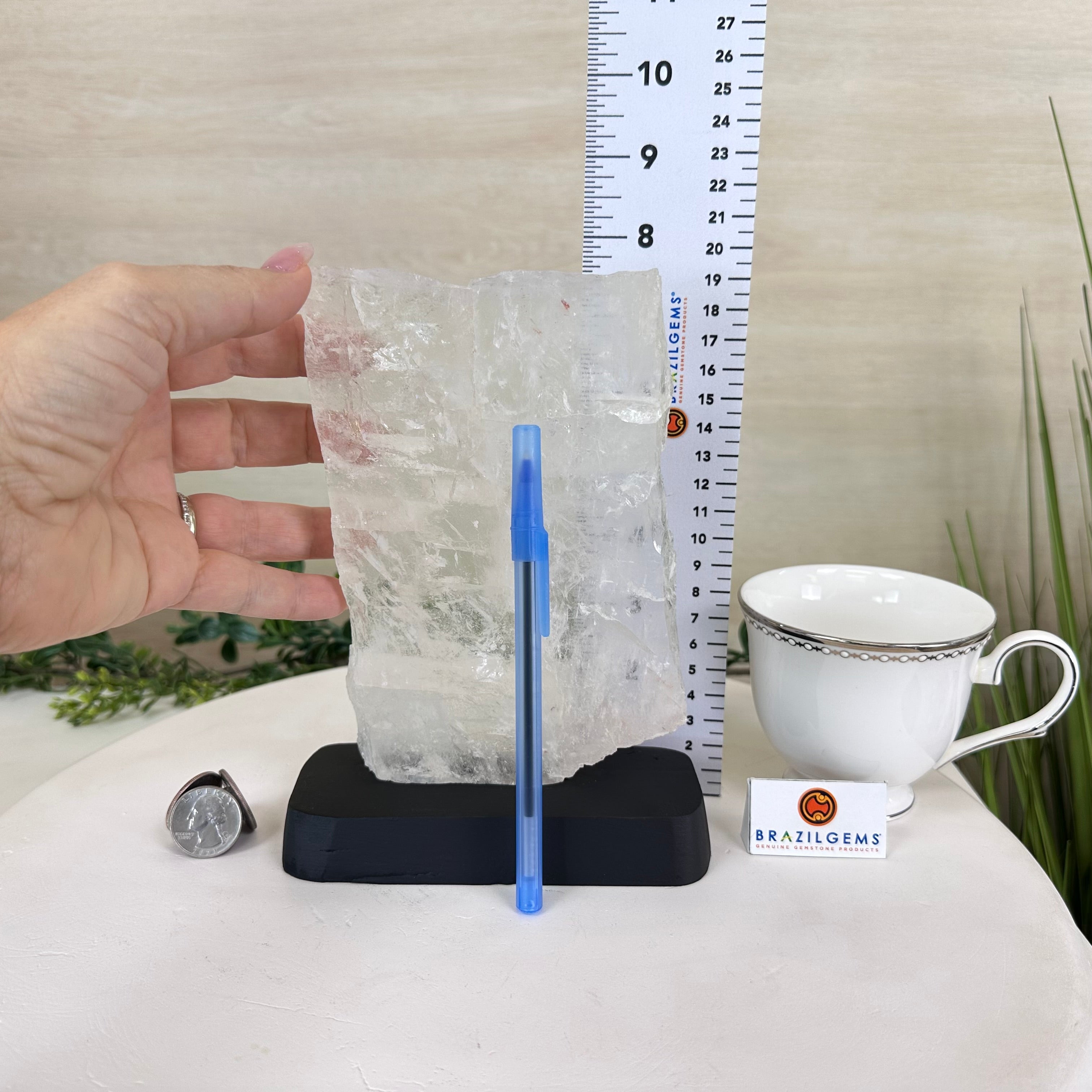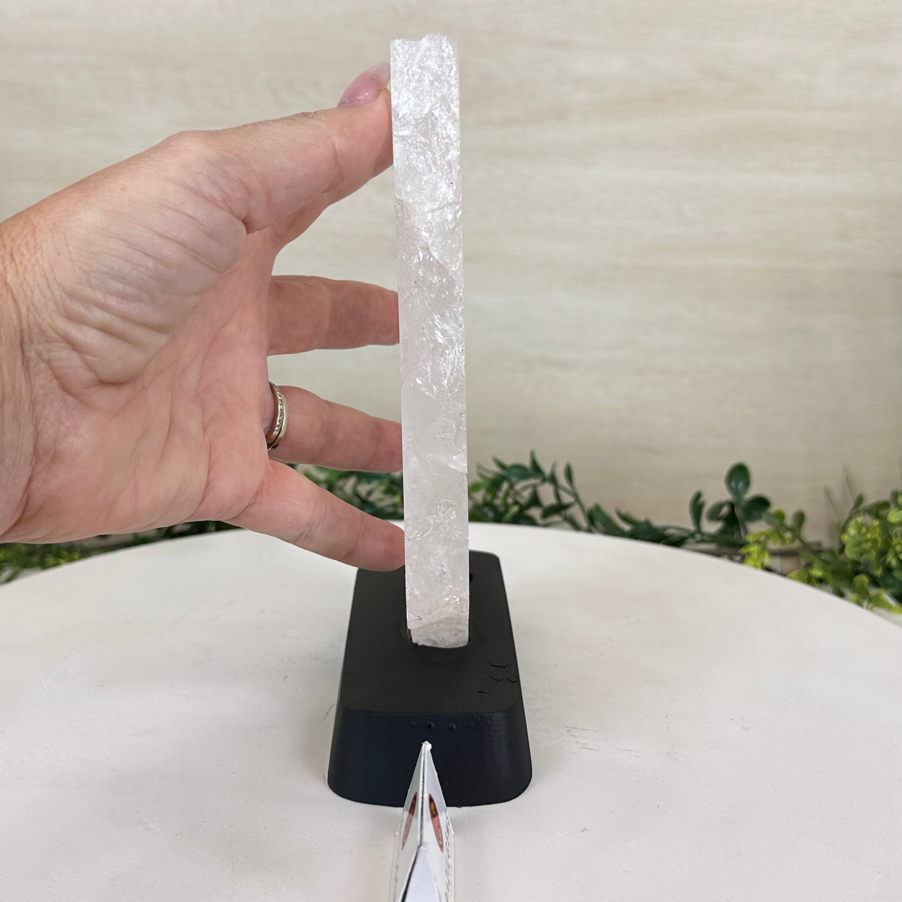Clear Quartz Polished Slice on a Wood Base 7.7" Tall #6100CQ-001