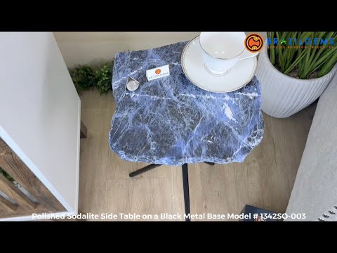 Natural Sodalite Side Table on Black Metal Base, 24.7" Tall #1342SO-003
