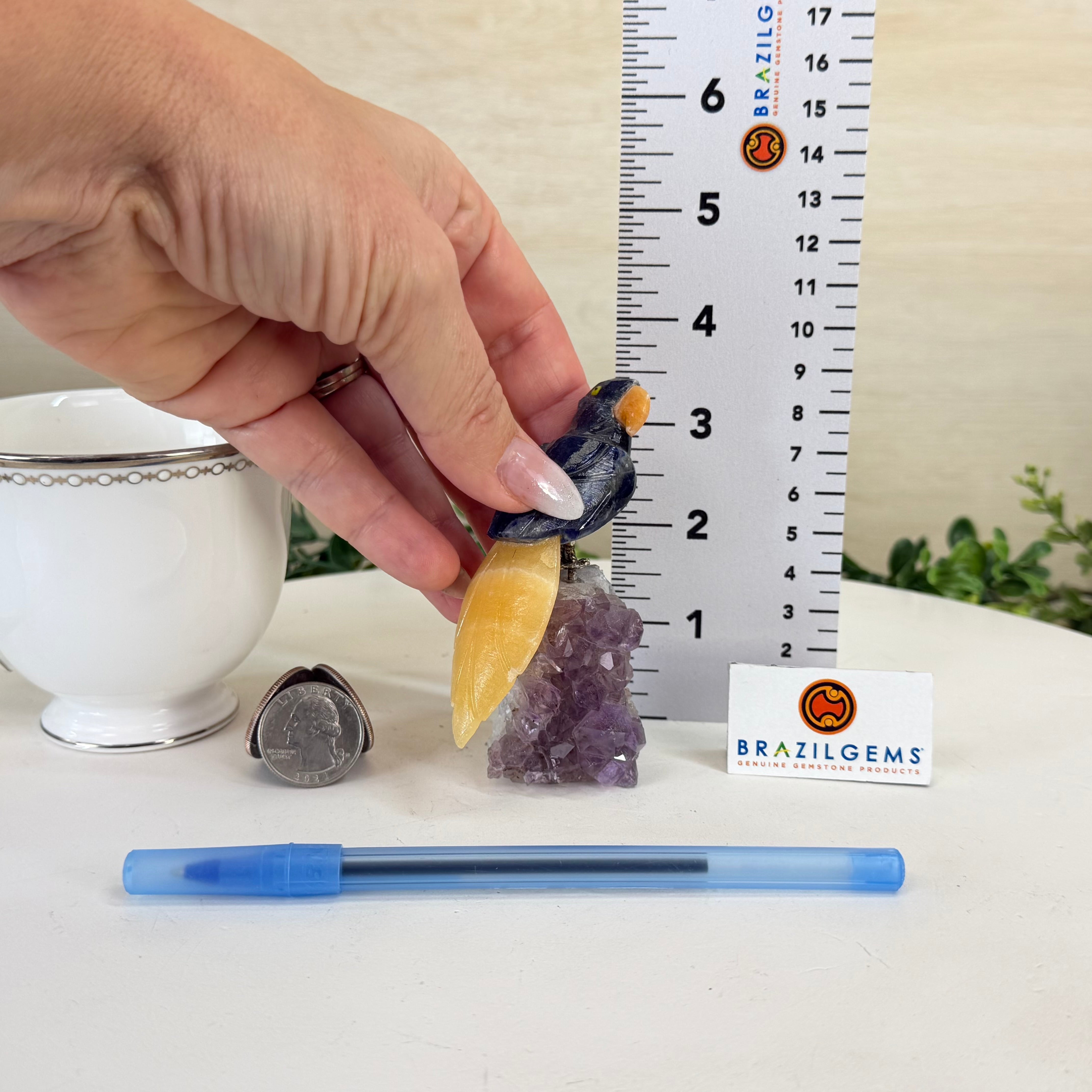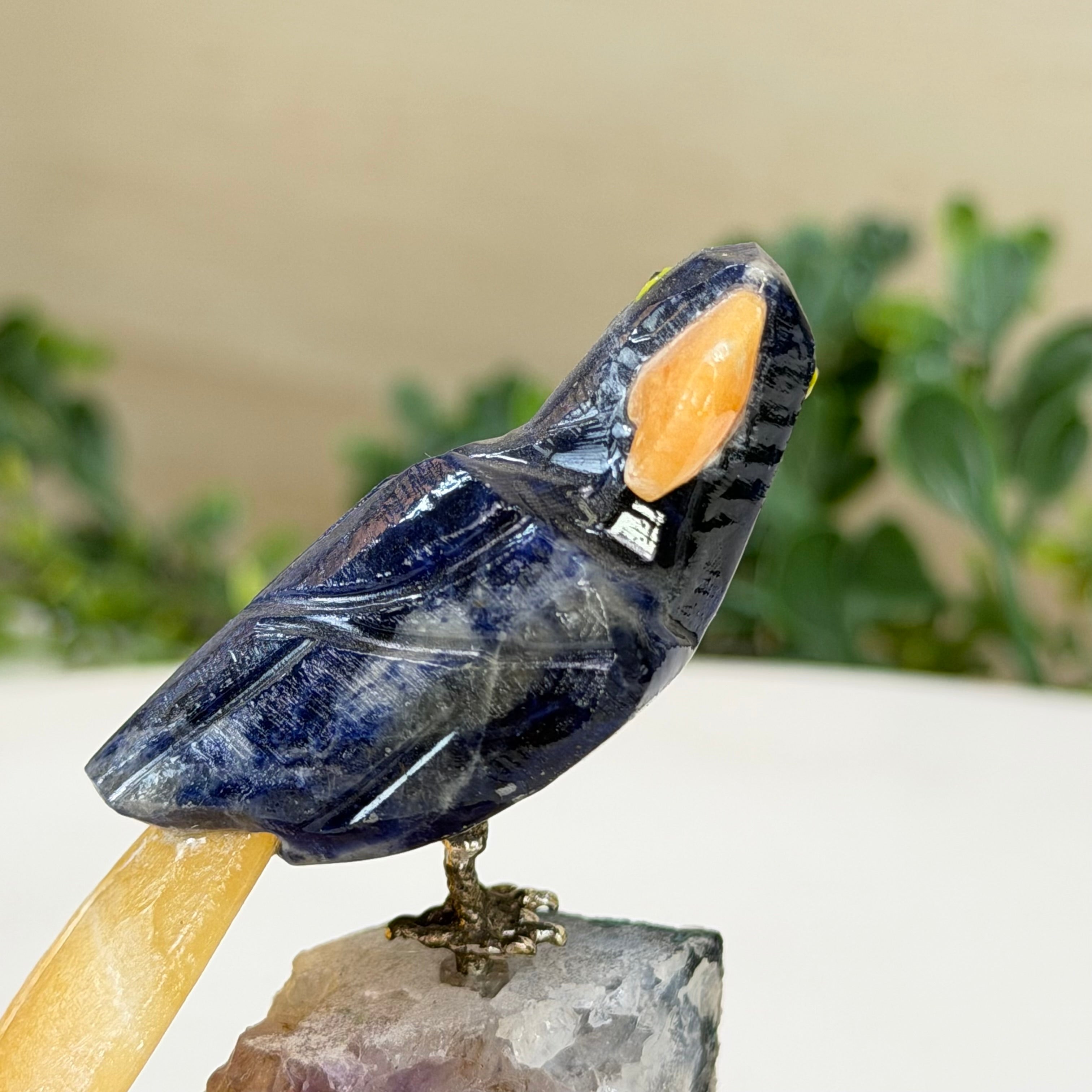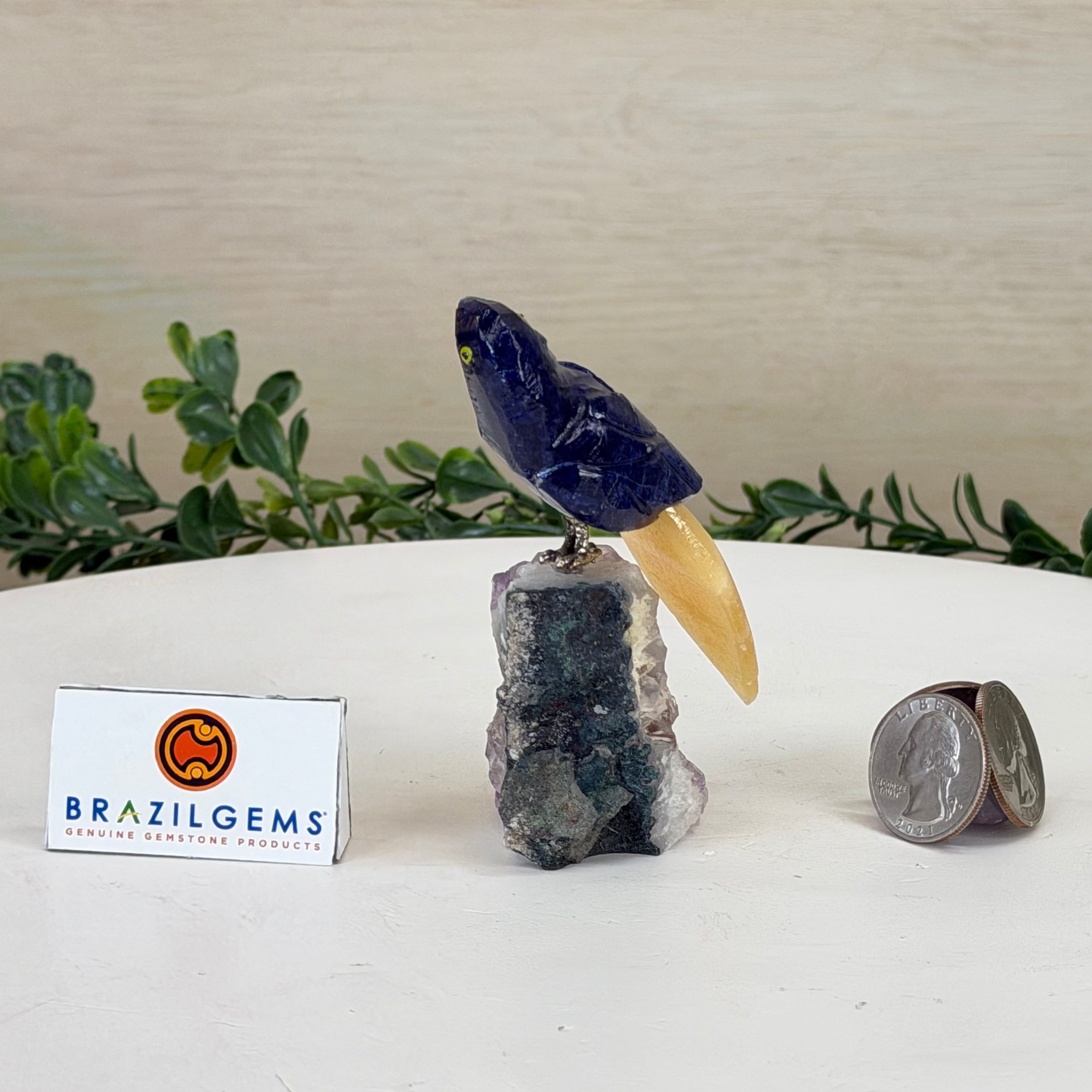 Every bird is meticulously carved by skilled Brazilian artisans who transform Brazil’s finest gemstones into vibrant works of art inspired by native wildlife. From its expressive details to its polished finish, this gemstone bird adds sophistication, charm, and natural energy to any space.