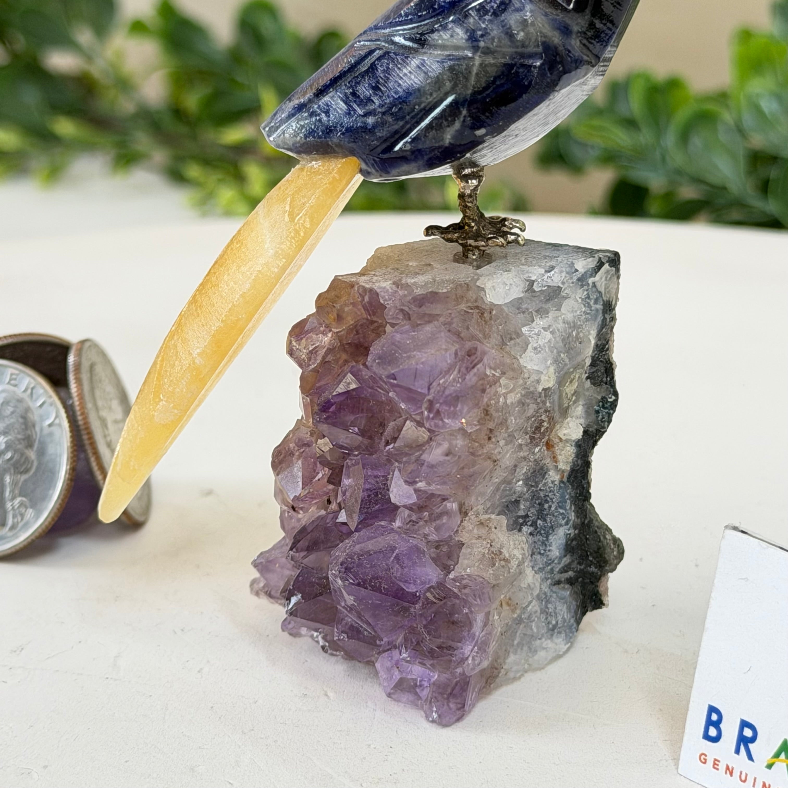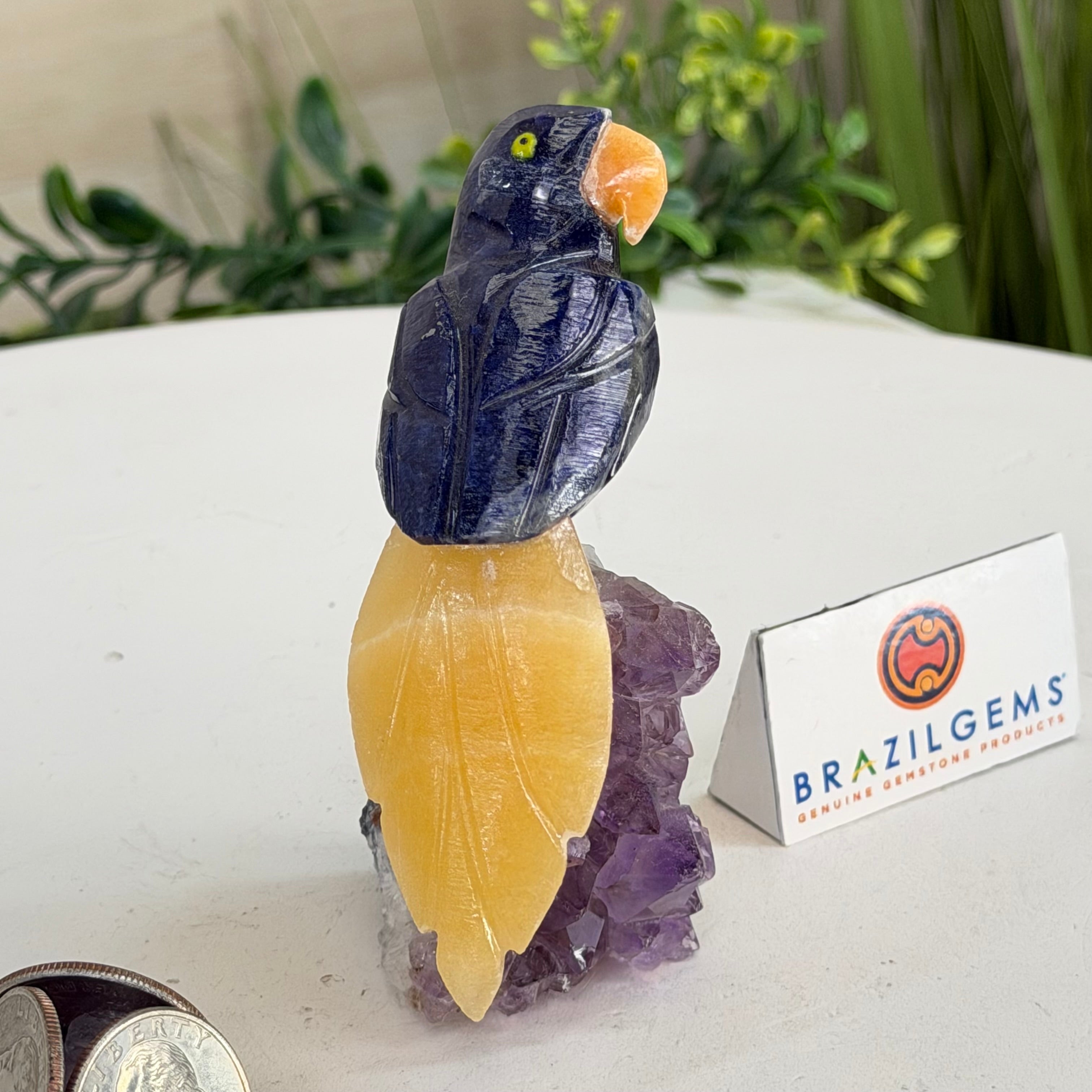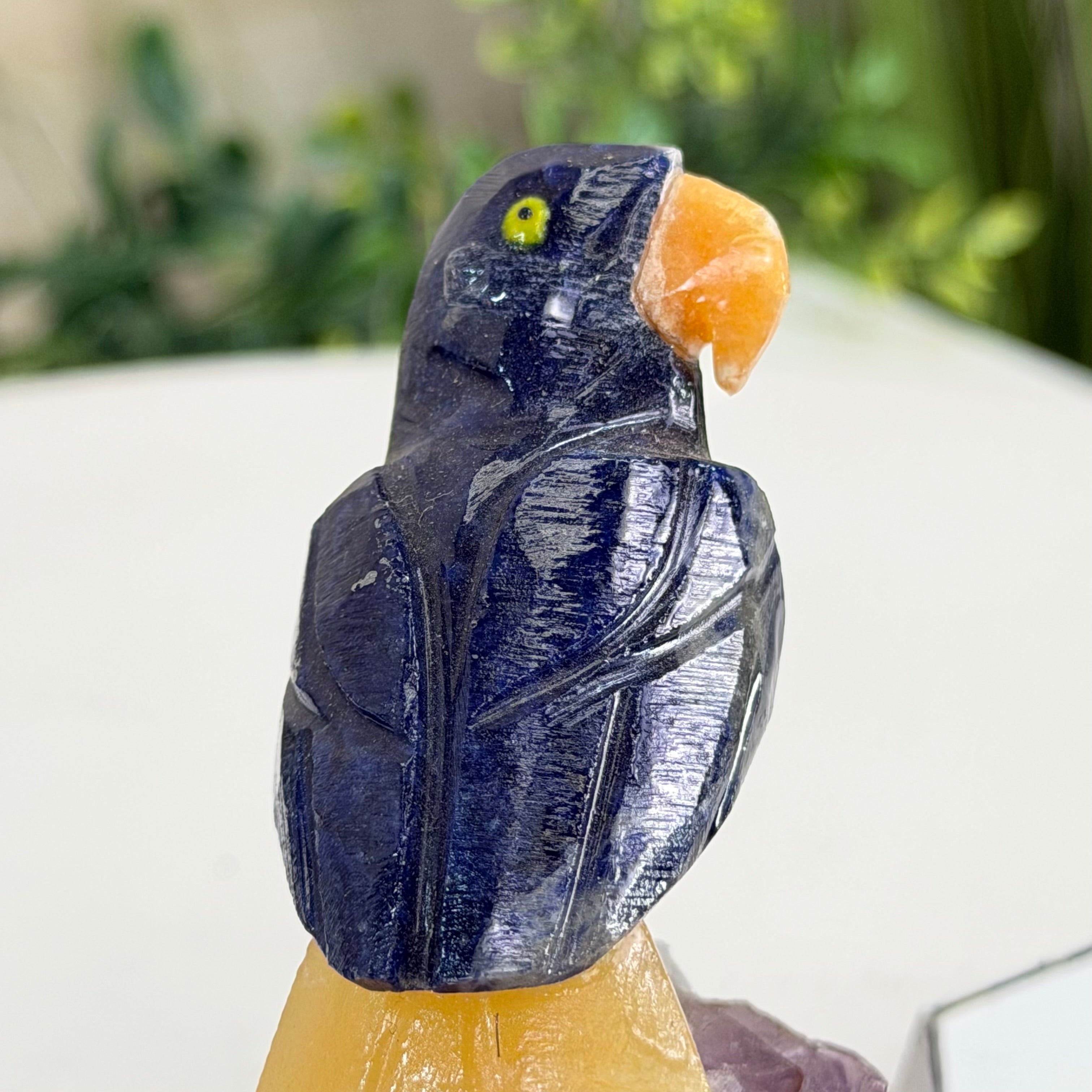 Discover the beauty of our hand-carved gemstone bird, a stunning fusion of Brazilian artistry and natural elegance. Each sculpture is thoughtfully crafted from genuine gemstones and perched on a captivating crystal cluster base, creating a timeless décor piece that blends nature, color, and craftsmanship.