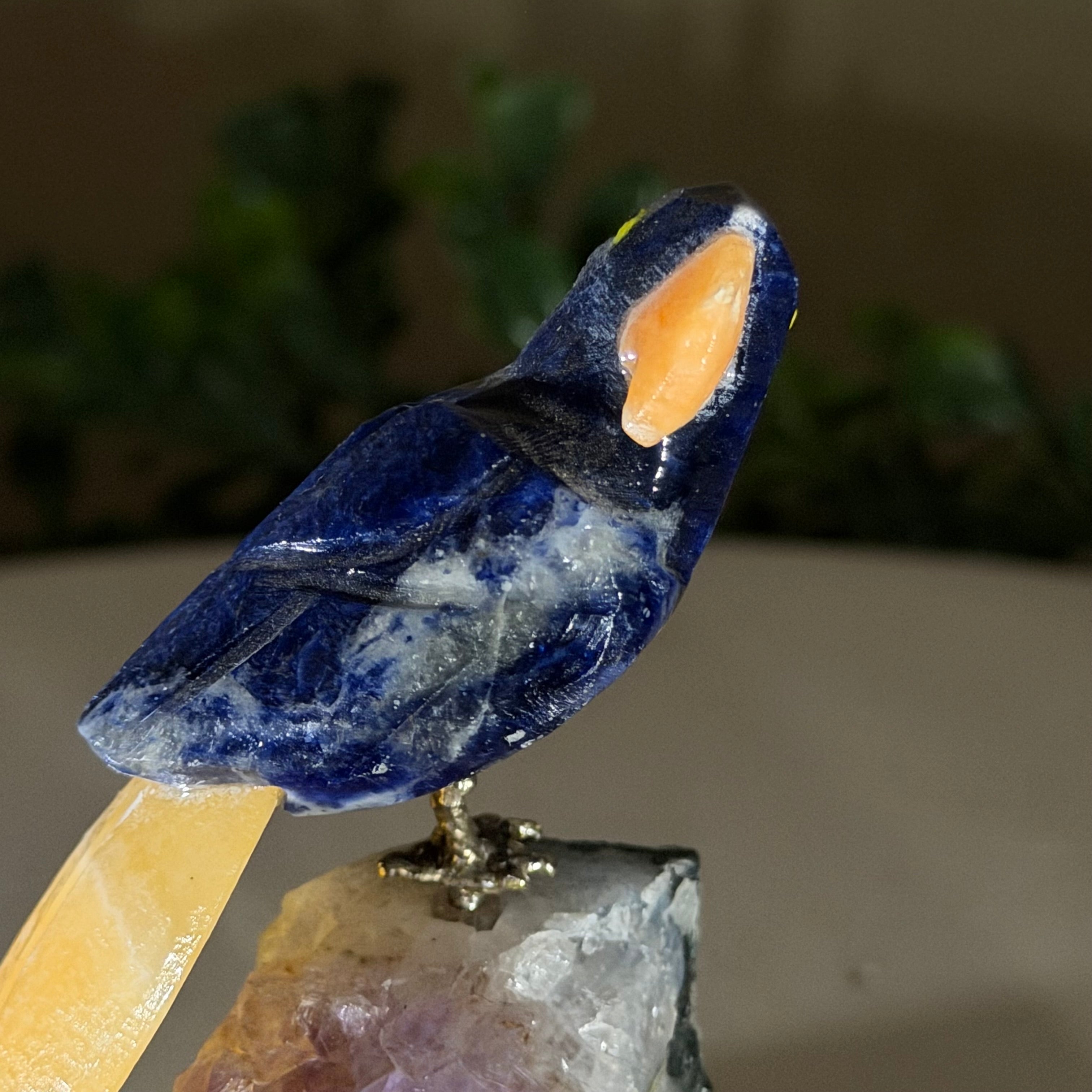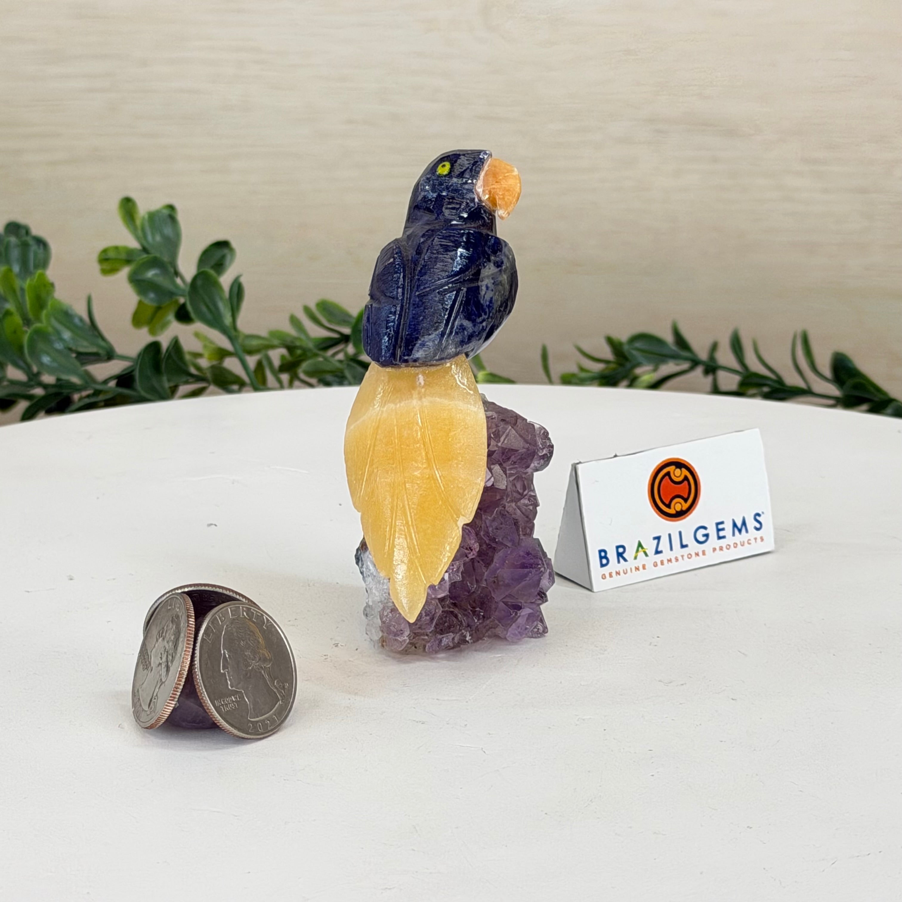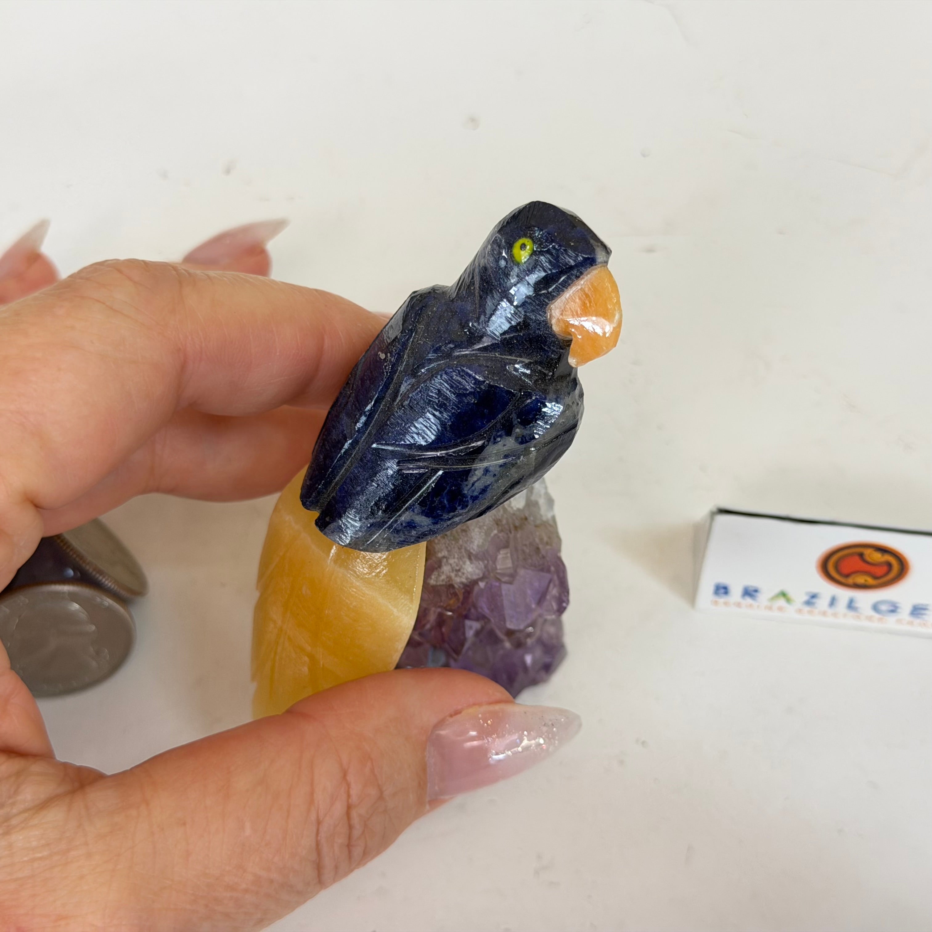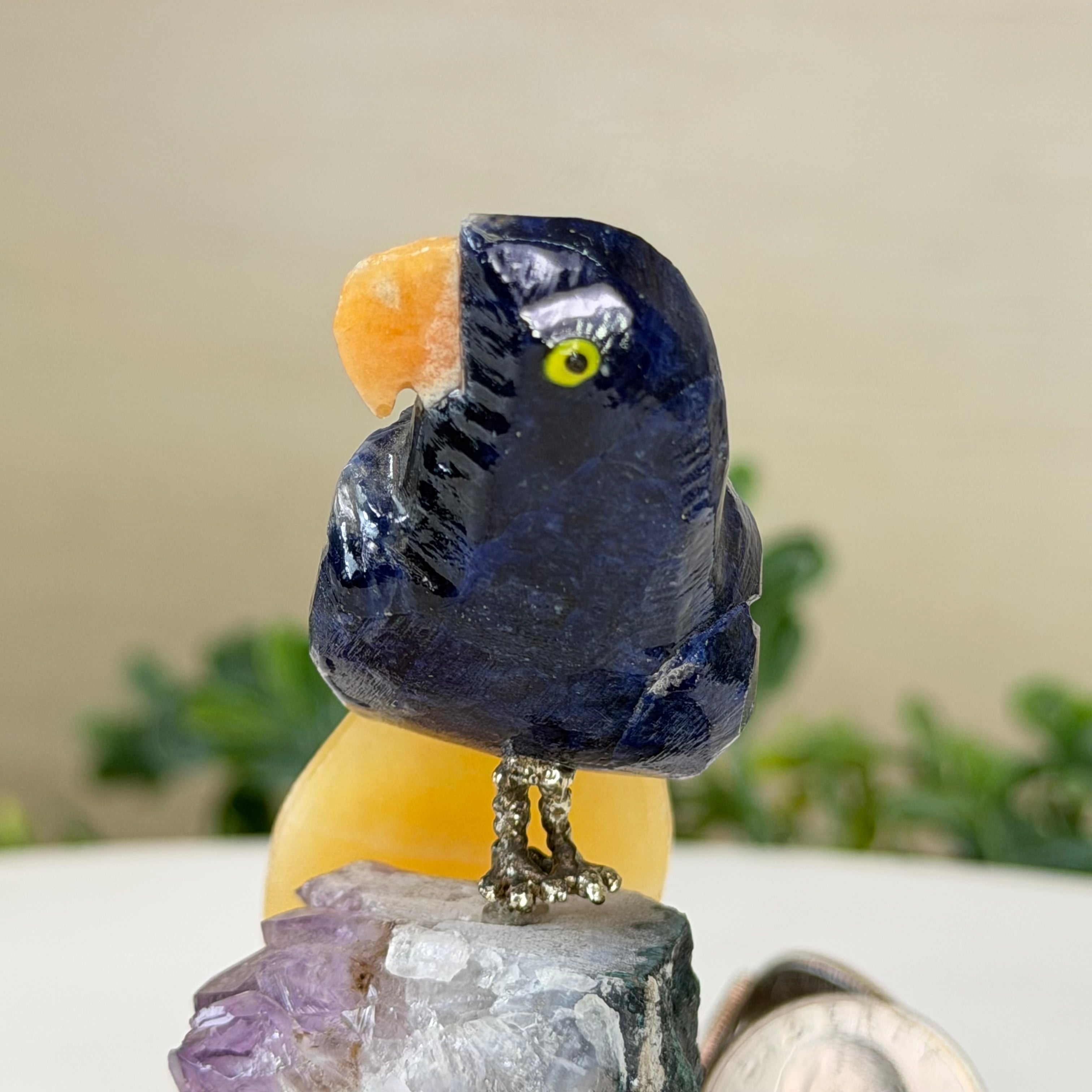 X-Small Sodalite Crystal Parrot, Amethyst Base #3001-SOPAM-103