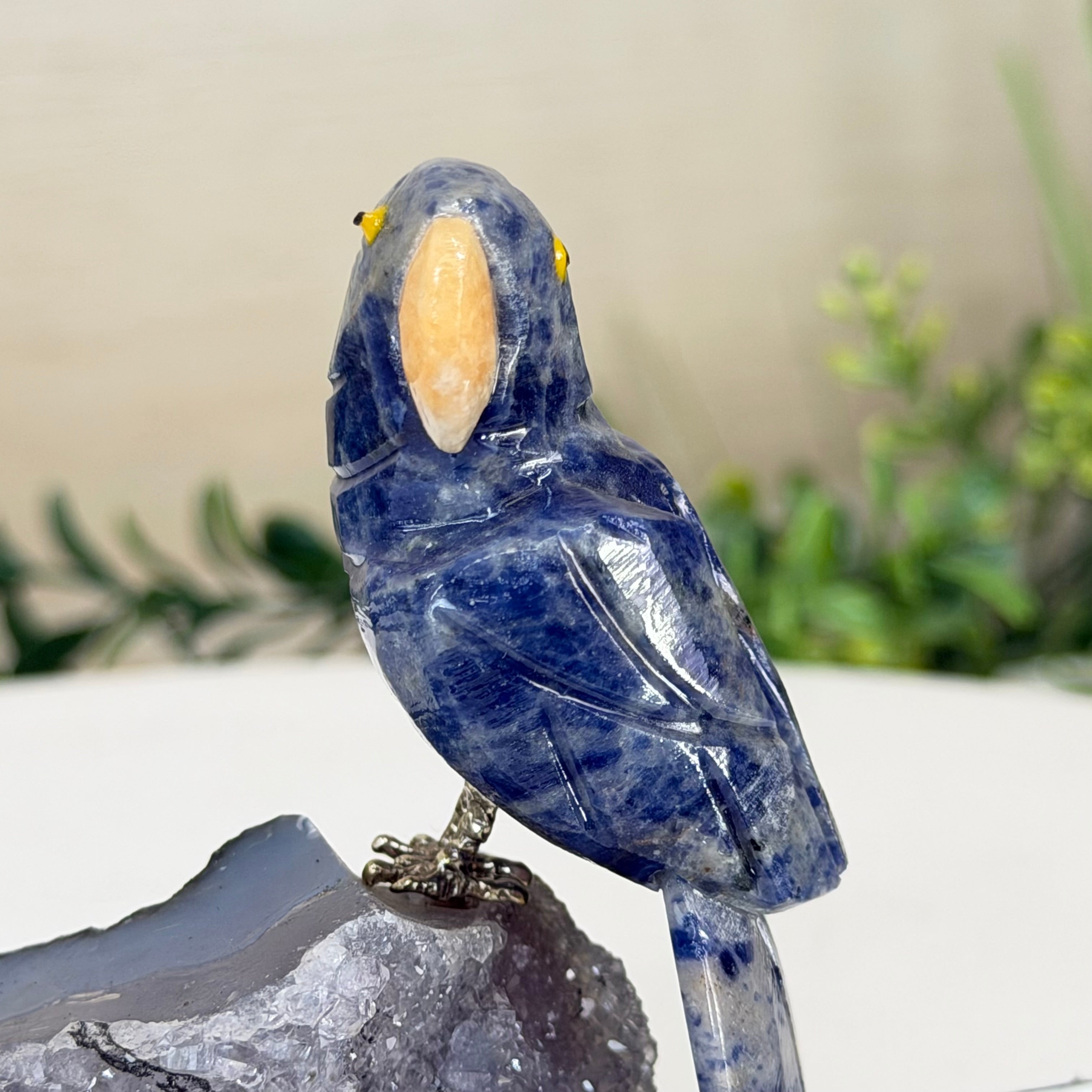 Every bird is meticulously carved by skilled Brazilian artisans who transform Brazil’s finest gemstones into vibrant works of art inspired by native wildlife. From its expressive details to its polished finish, this gemstone bird adds sophistication, charm, and natural energy to any space.