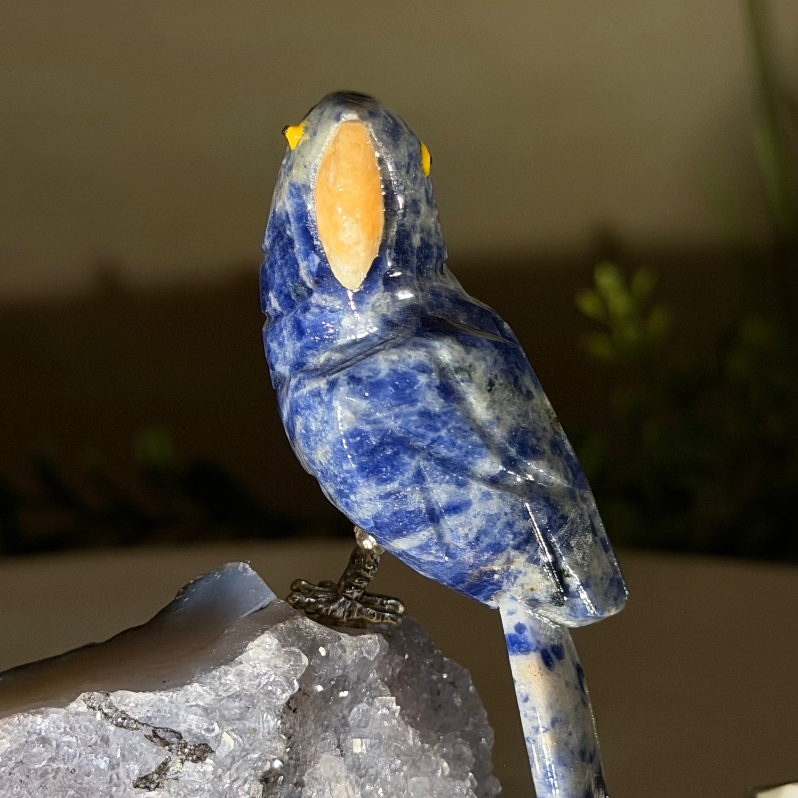 X-Small Sodalite Crystal Parrot, Amethyst Base #3001-SOPAM-104