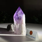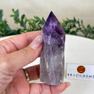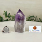Elevate your spiritual rituals with Brazil Gems' Super Quality Polished Amethyst Crystal Foot & Point. Featuring deep purple tones, this exquisite crystal exudes incredible energy and exquisite artistry. Whether used in meditation or healing, it is a must-have for the refined crystal connoisseur. With its polished point, flat base, and raw side edges, this piece has a tactile and visual appeal, perfect to hold or display on a tabletop.