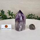 Elevate your spiritual rituals with Brazil Gems' Super Quality Polished Amethyst Crystal Foot & Point. Featuring deep purple tones, this exquisite crystal exudes incredible energy and exquisite artistry. Whether used in meditation or healing, it is a must-have for the refined crystal connoisseur. With its polished point, flat base, and raw side edges, this piece has a tactile and visual appeal, perfect to hold or display on a tabletop.