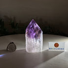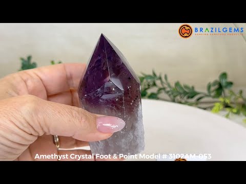 Elevate your spiritual rituals with Brazil Gems' Super Quality Polished Amethyst Crystal Foot & Point. Featuring deep purple tones, this exquisite crystal exudes incredible energy and exquisite artistry. Whether used in meditation or healing, it is a must-have for the refined crystal connoisseur. With its polished point, flat base, and raw side edges, this piece has a tactile and visual appeal, perfect to hold or display on a tabletop.