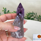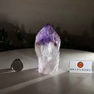 Elevate your spiritual rituals with Brazil Gems' Super Quality Polished Amethyst Crystal Foot & Point. Featuring deep purple tones, this exquisite crystal exudes incredible energy and exquisite artistry. Whether used in meditation or healing, it is a must-have for the refined crystal connoisseur. With its polished point, flat base, and raw side edges, this piece has a tactile and visual appeal, perfect to hold or display on a tabletop.
