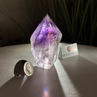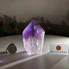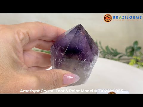 Elevate your spiritual rituals with Brazil Gems' Super Quality Polished Amethyst Crystal Foot & Point. Featuring deep purple tones, this exquisite crystal exudes incredible energy and exquisite artistry. Whether used in meditation or healing, it is a must-have for the refined crystal connoisseur. With its polished point, flat base, and raw side edges, this piece has a tactile and visual appeal, perfect to hold or display on a tabletop.