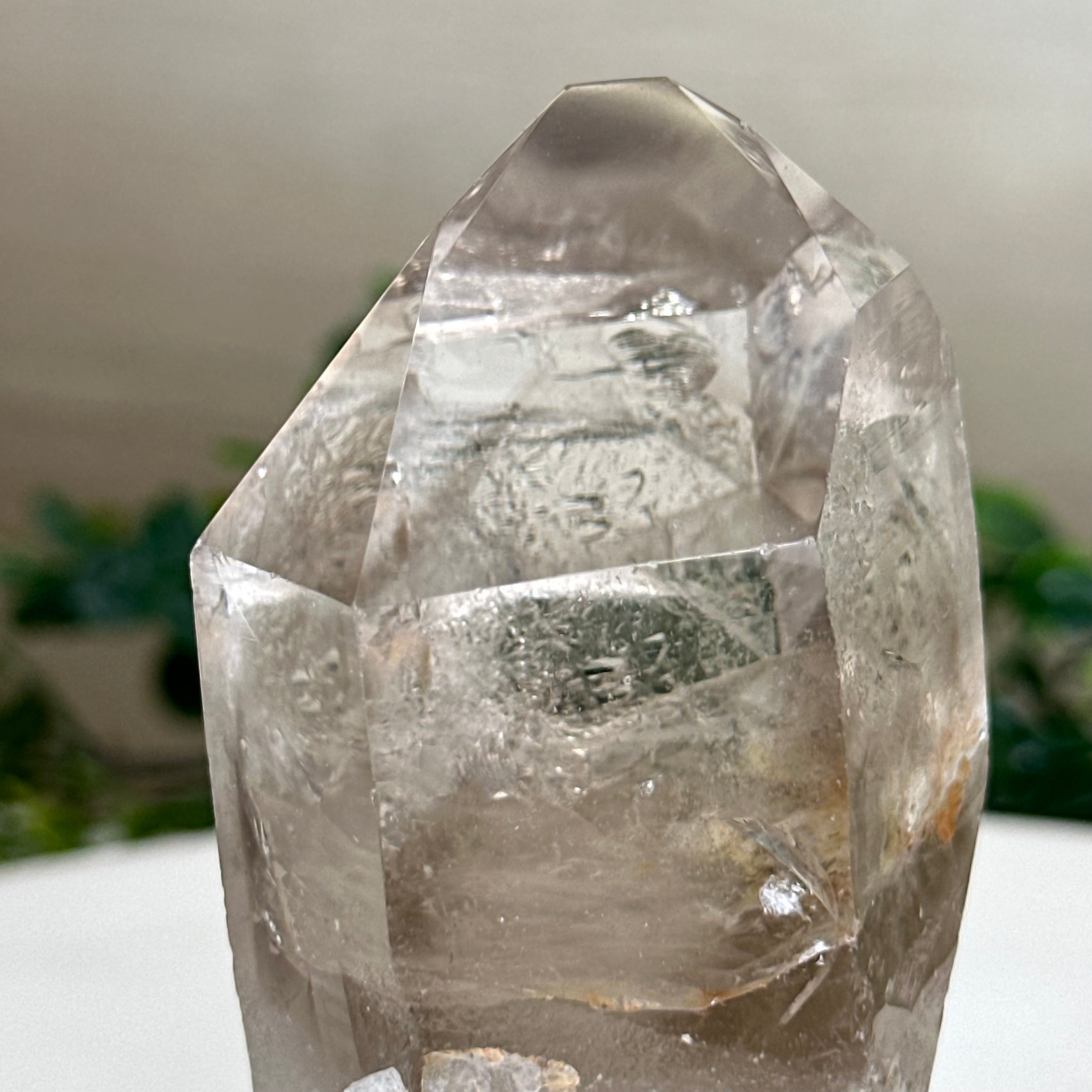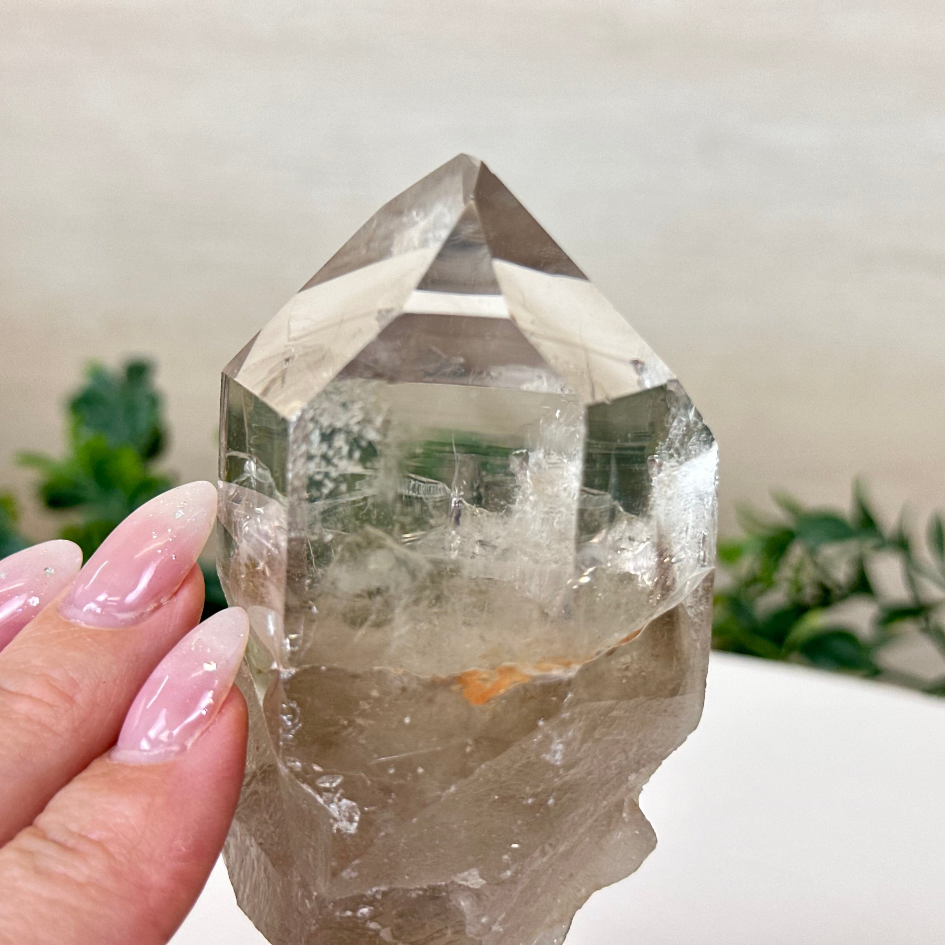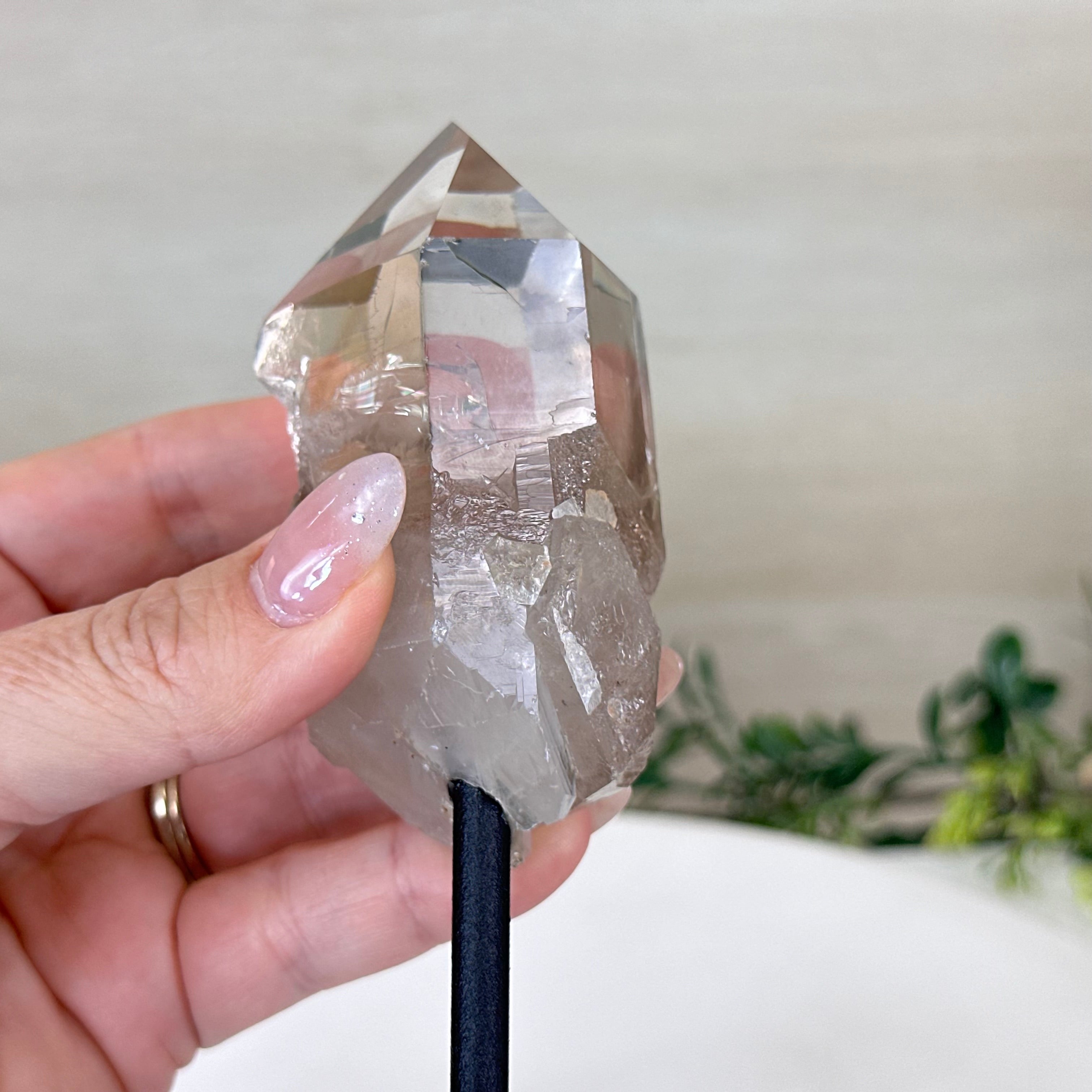 Enhance your home or sacred space with the multi-faceted beauty of this Smoky Quartz Crystal Point on a Metal Stand by Brazil Gems. Crafted from Brazilian Smoky Quartz, this all natural crystal has naturally smooth faces of a 6-sided point on the top, rough side edges, a warm hue and a translucent glow when lit from behind. Its calming presence is perfect for home décor, and its beauty and natural energy will enrich any environment.