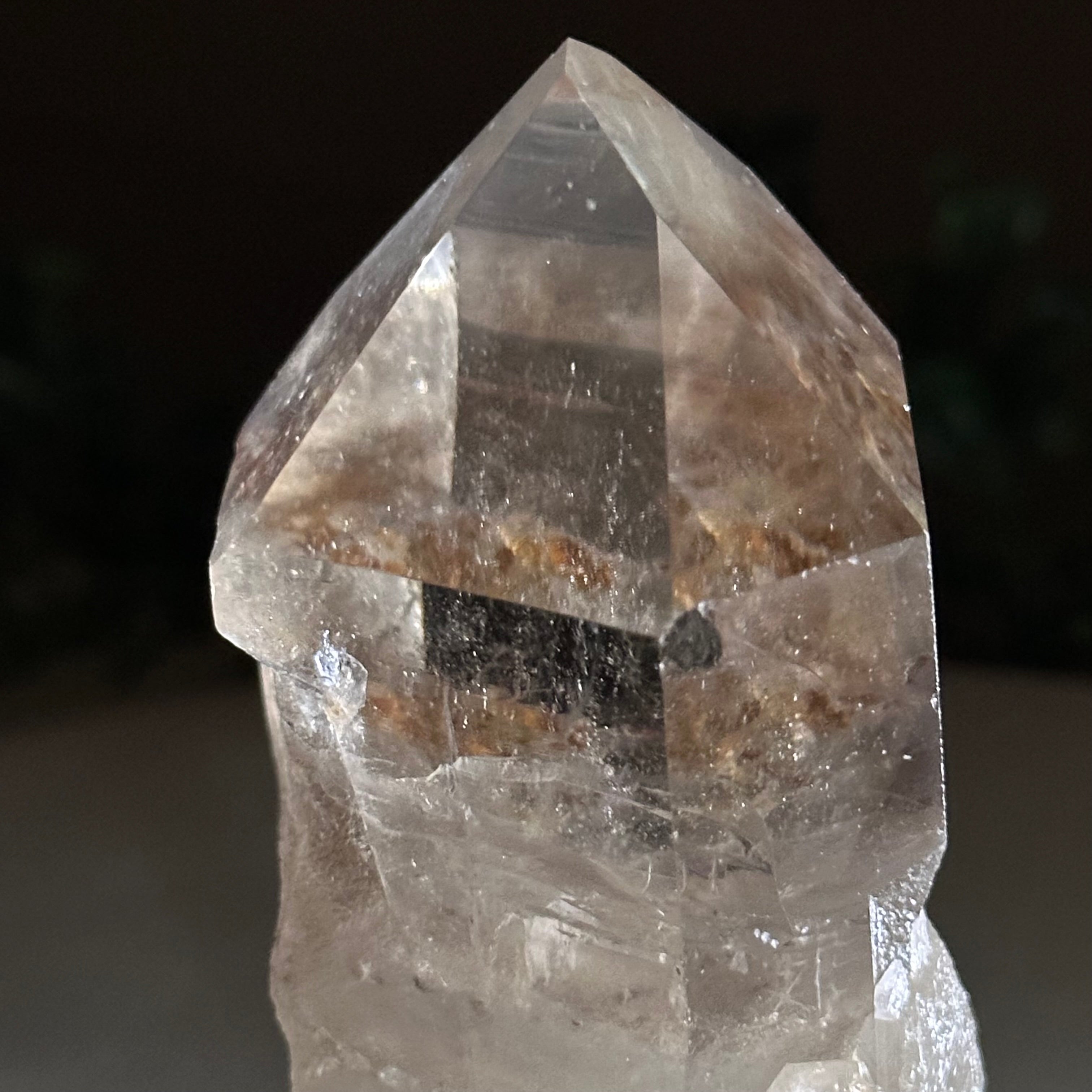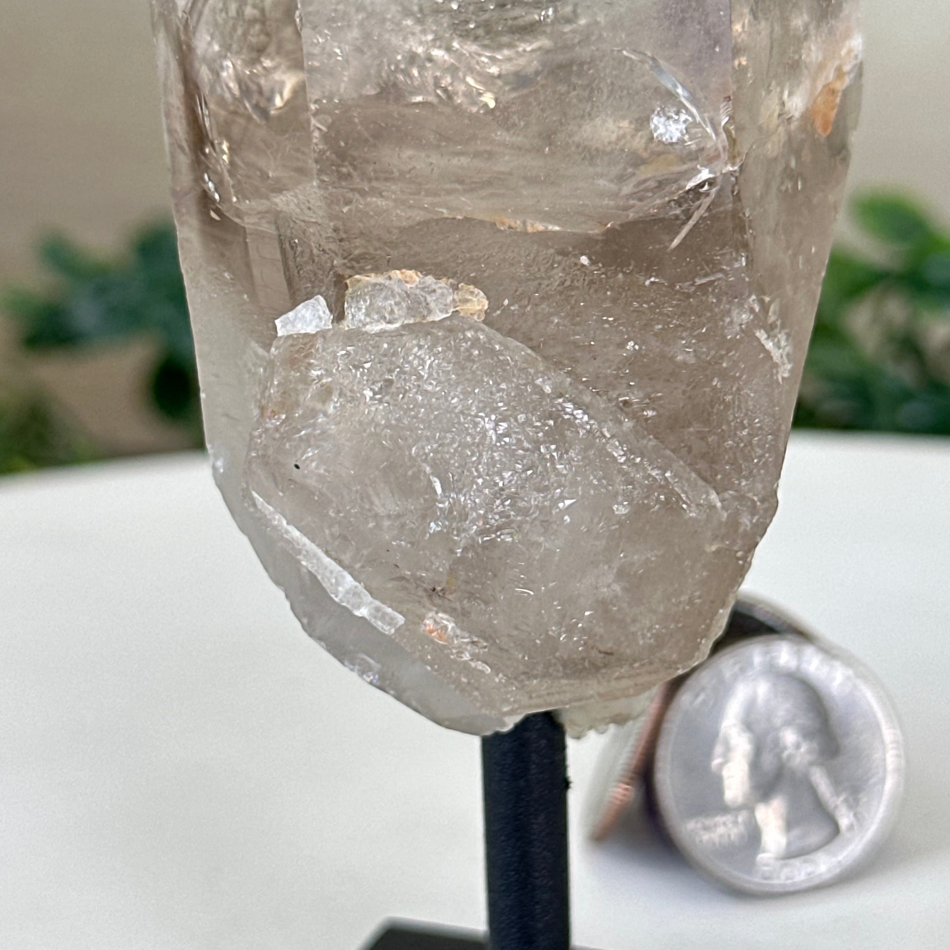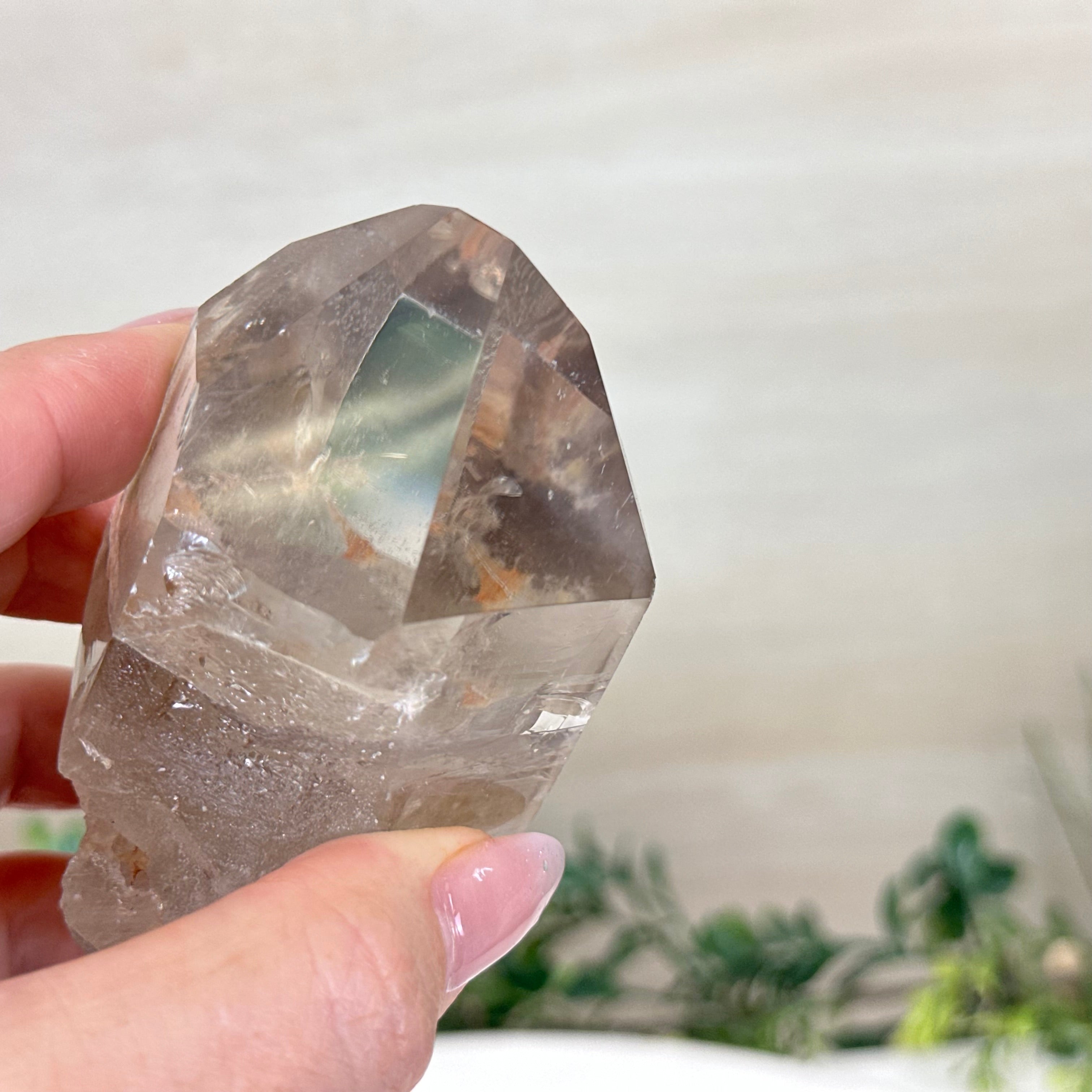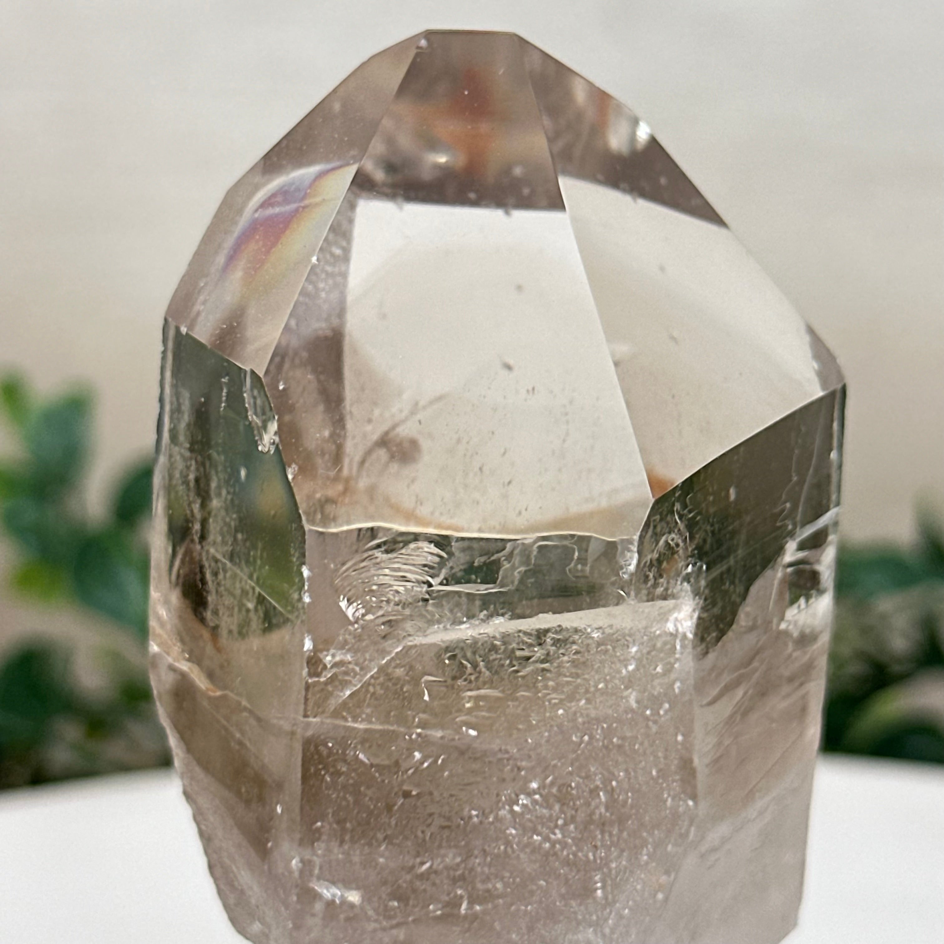 Enhance your home or sacred space with the multi-faceted beauty of this Smoky Quartz Crystal Point on a Metal Stand by Brazil Gems. Crafted from Brazilian Smoky Quartz, this all natural crystal has naturally smooth faces of a 6-sided point on the top, rough side edges, a warm hue and a translucent glow when lit from behind. Its calming presence is perfect for home décor, and its beauty and natural energy will enrich any environment.