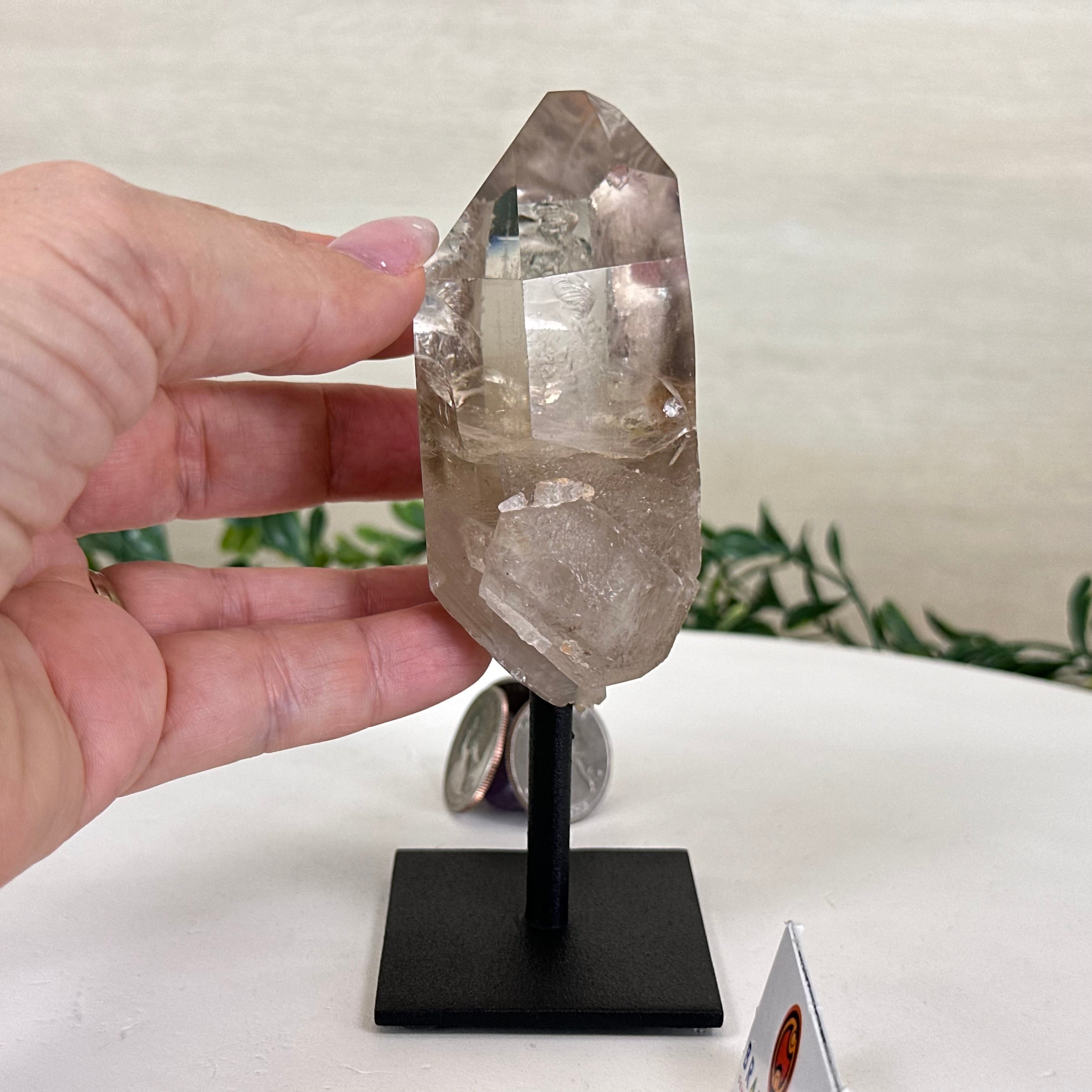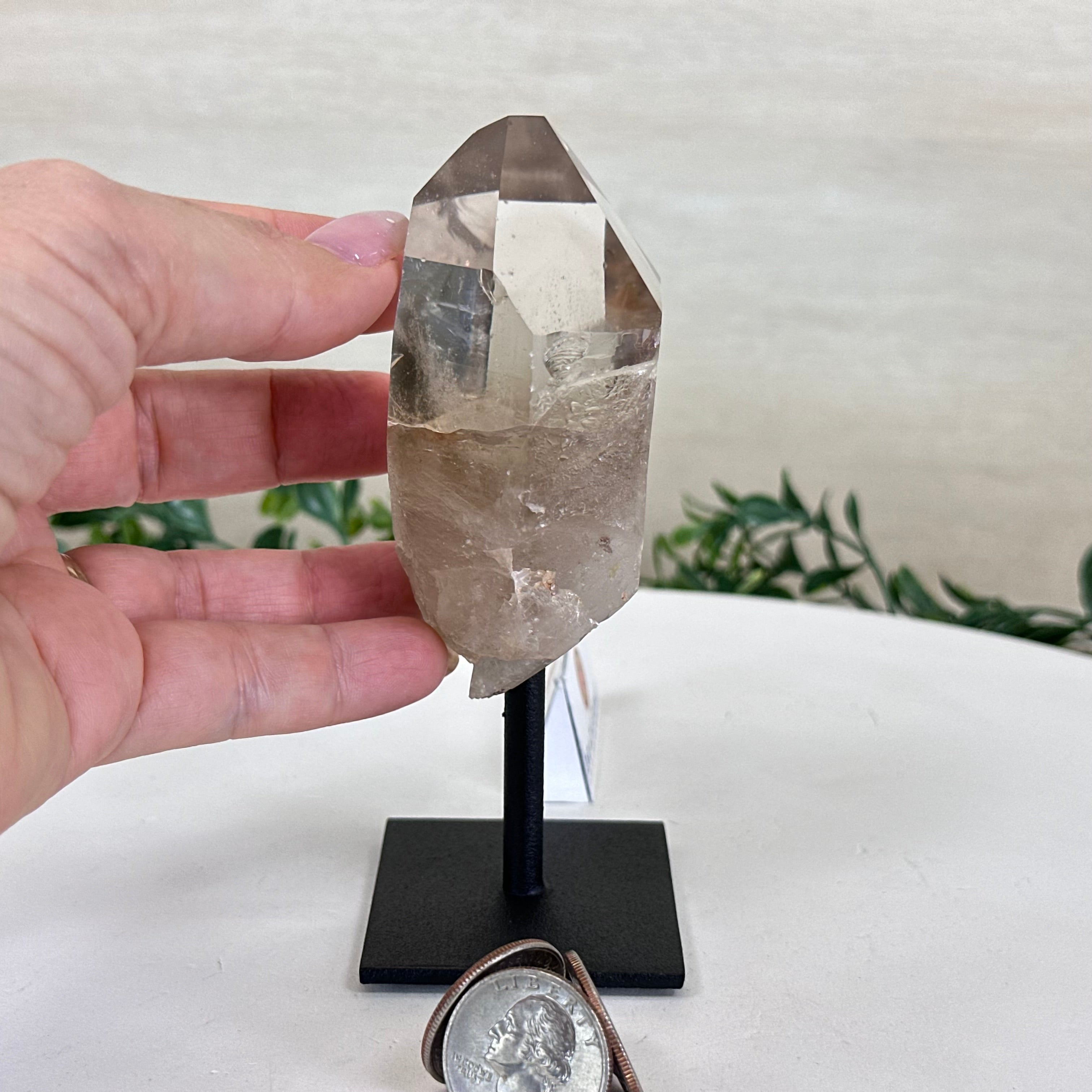 Smoky Quartz Crystal Point on a Metal Stand, 5.2" Tall #3122SQ-018