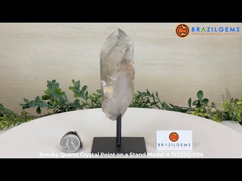 Enhance your home or sacred space with the multi-faceted beauty of this Smoky Quartz Crystal Point on a Metal Stand by Brazil Gems. Crafted from Brazilian Smoky Quartz, this all natural crystal has naturally smooth faces of a 6-sided point on the top, rough side edges, a warm hue and a translucent glow when lit from behind. Its calming presence is perfect for home décor, and its beauty and natural energy will enrich any environment.