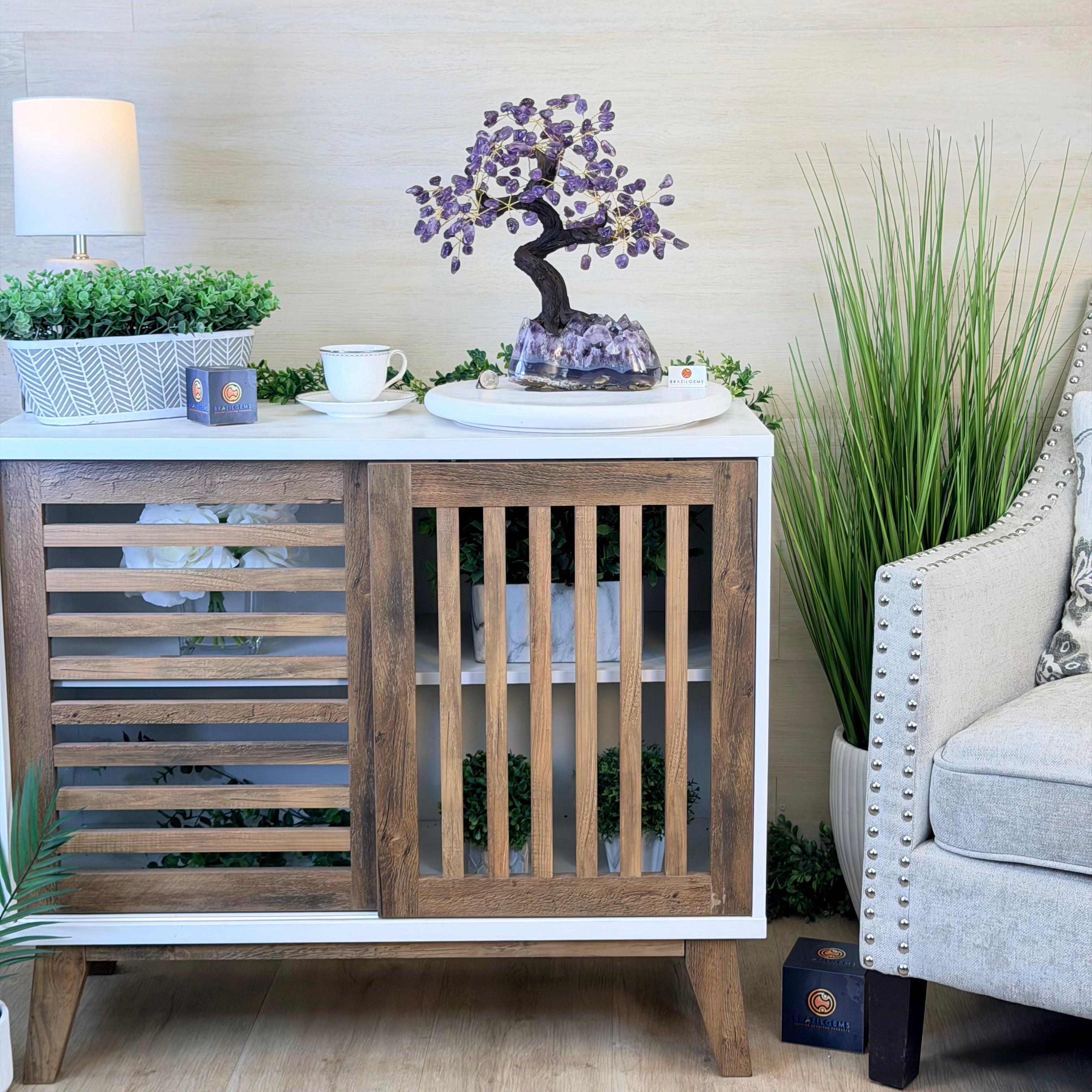 Rooted in a large natural Amethyst cluster, this tree is substantial in size—designed to become a focal point in any room, whether it’s a peaceful home corner or a thoughtful office space. It also makes a meaningful and lasting gift for someone special.