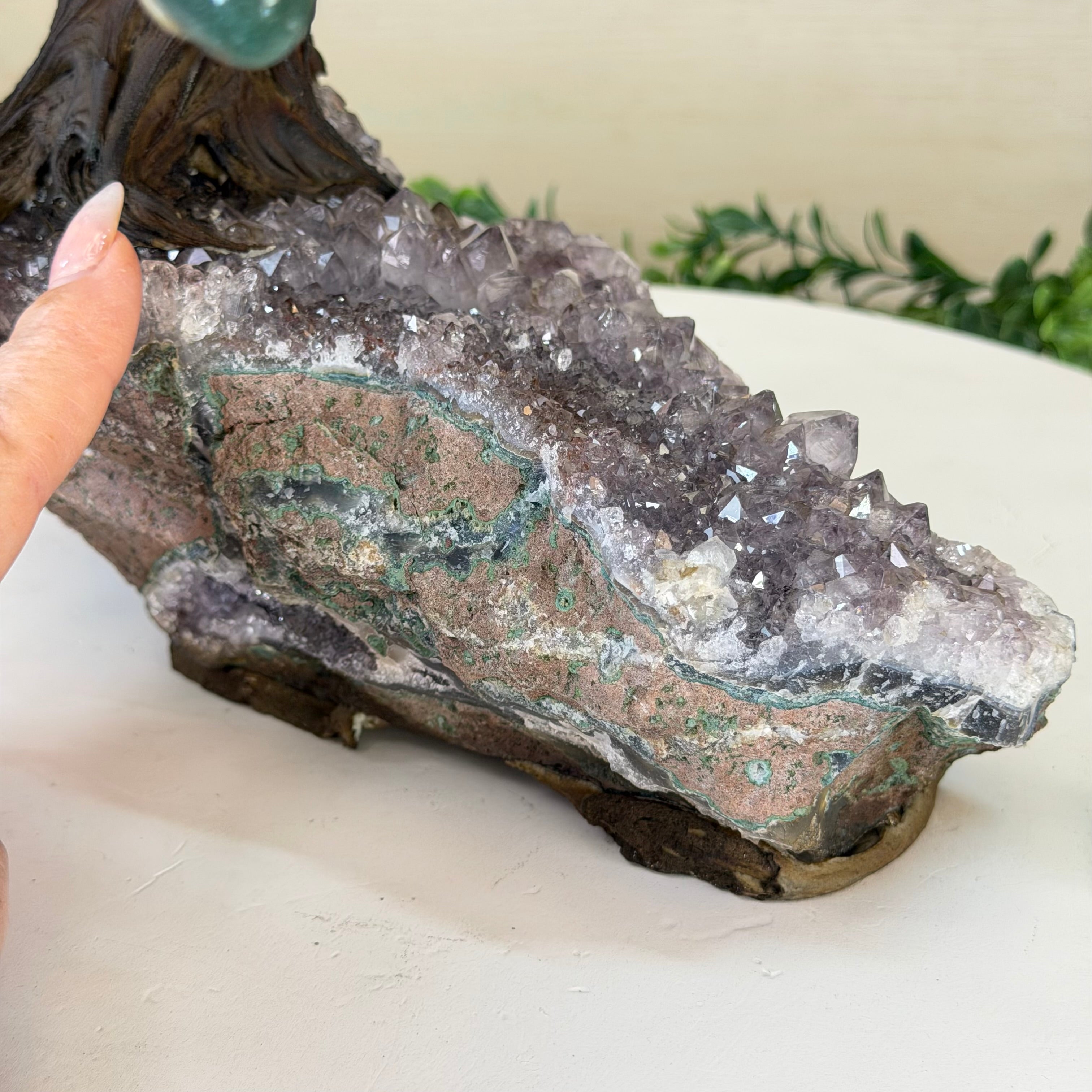 Rooted in a large natural Amethyst cluster, this tree is substantial in size—designed to become a focal point in any room, whether it’s a peaceful home corner or a thoughtful office space. It also makes a meaningful and lasting gift for someone special.