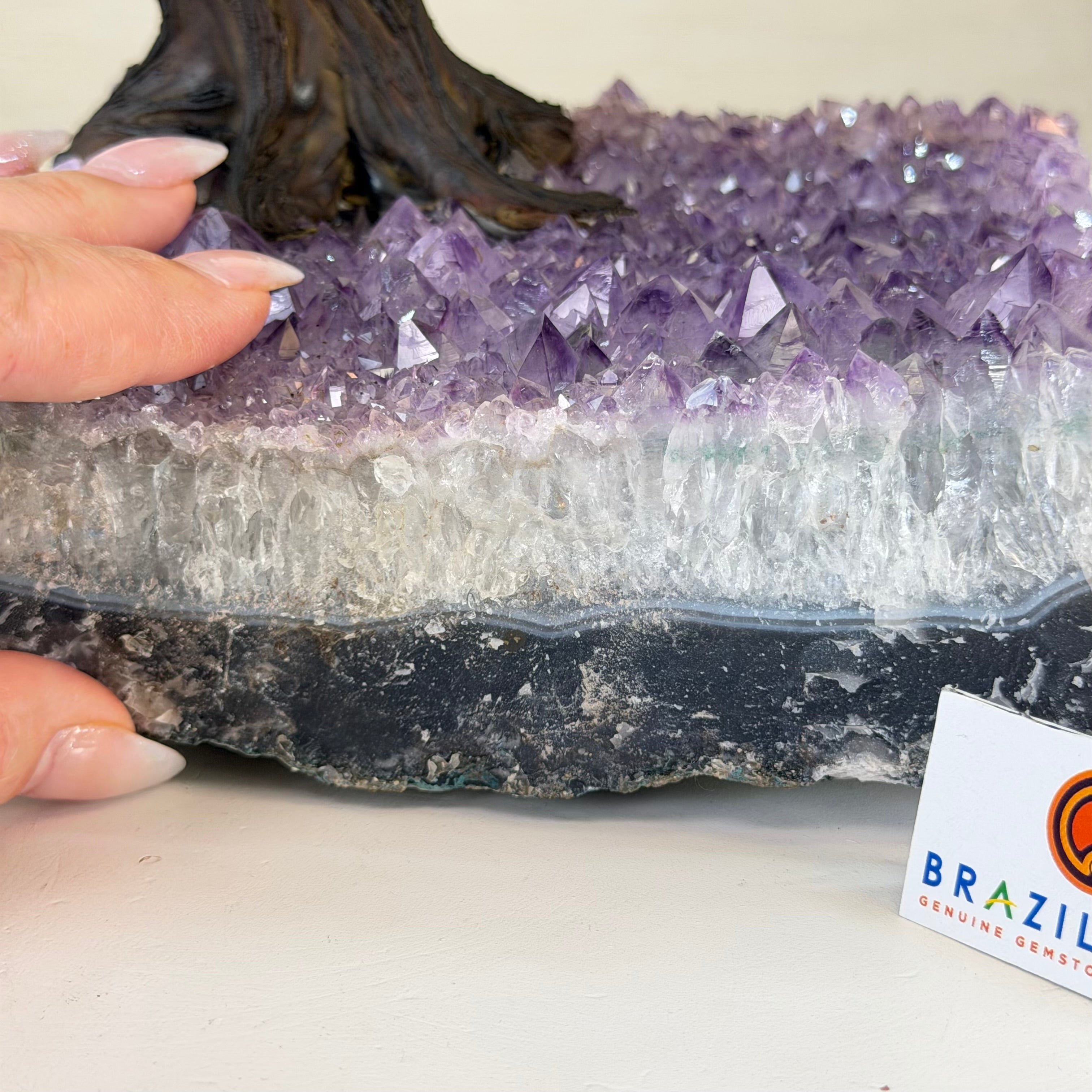Rooted in a large natural Amethyst cluster, this tree is substantial in size—designed to become a focal point in any room, whether it’s a peaceful home corner or a thoughtful office space. It also makes a meaningful and lasting gift for someone special.