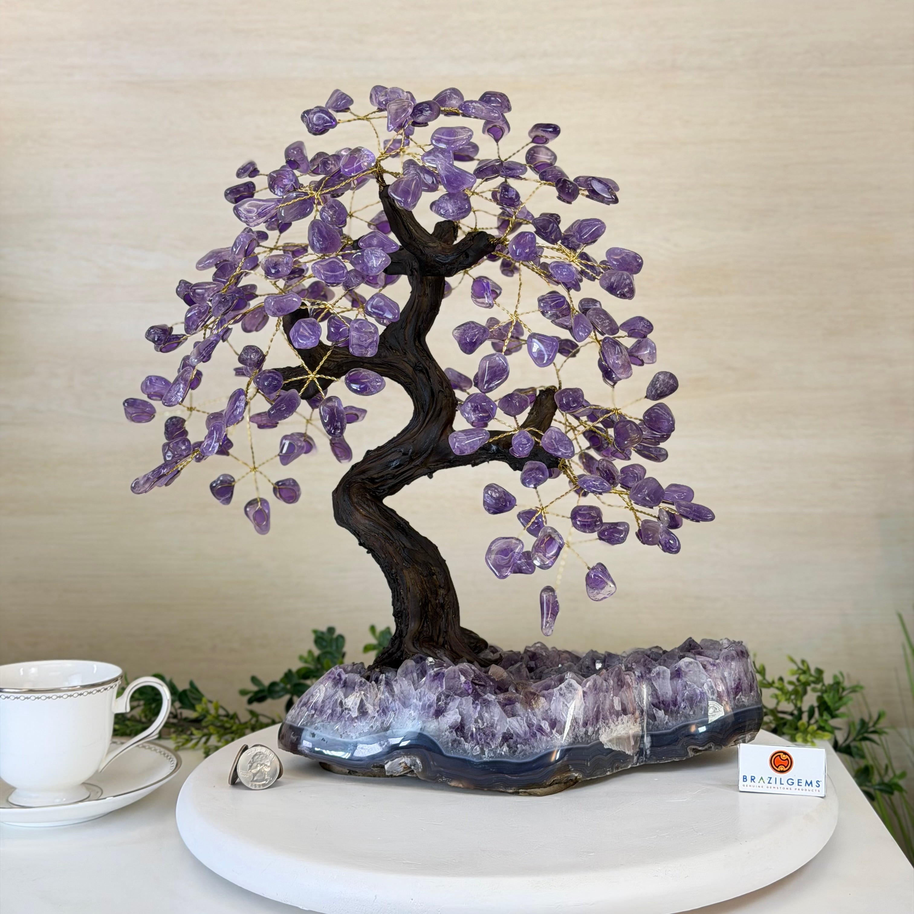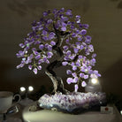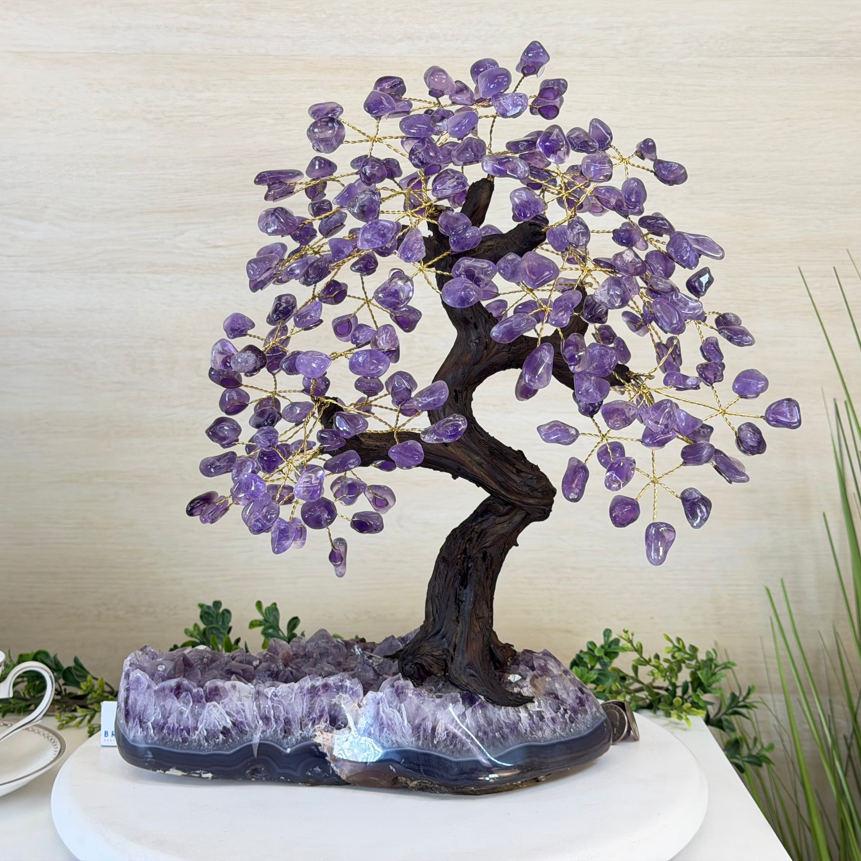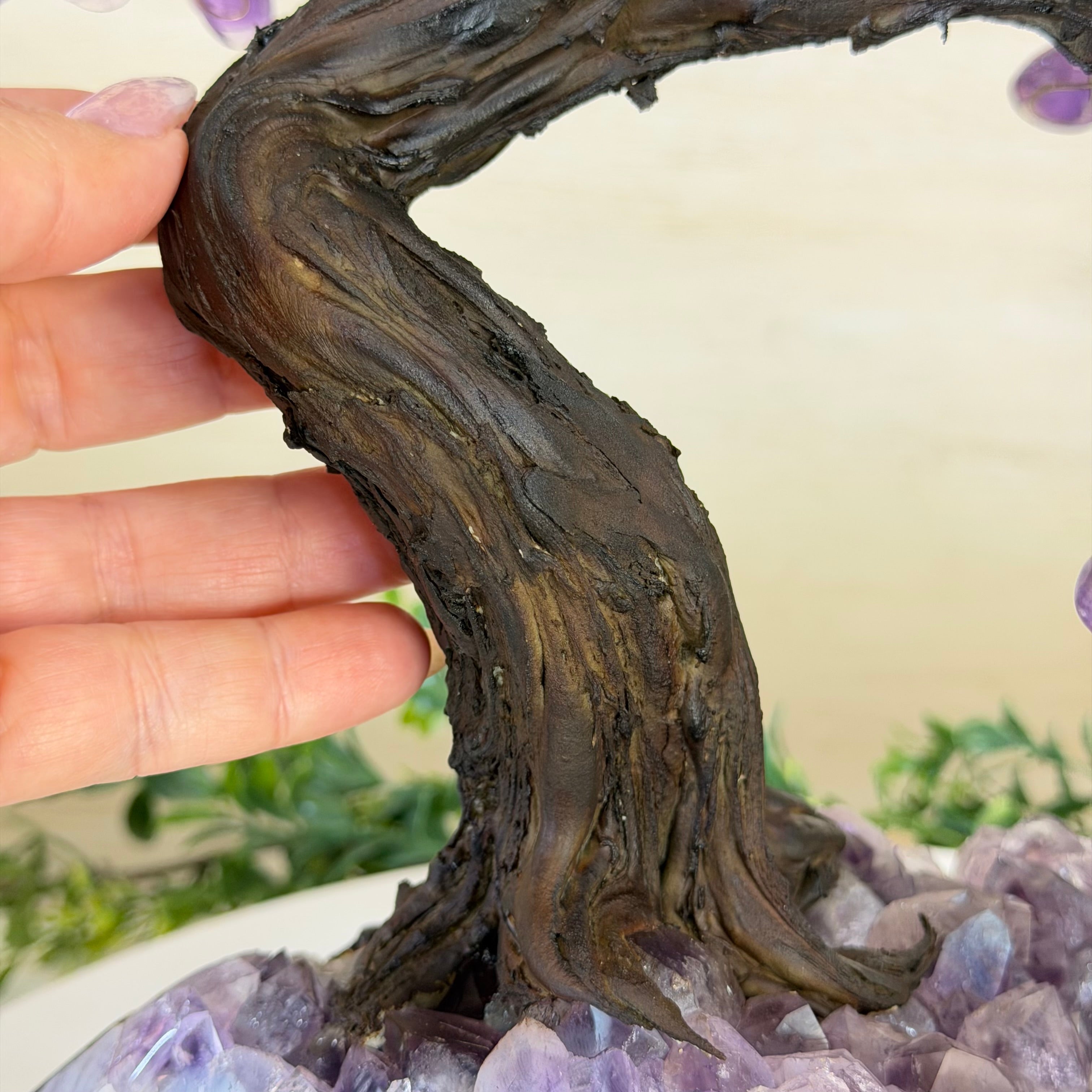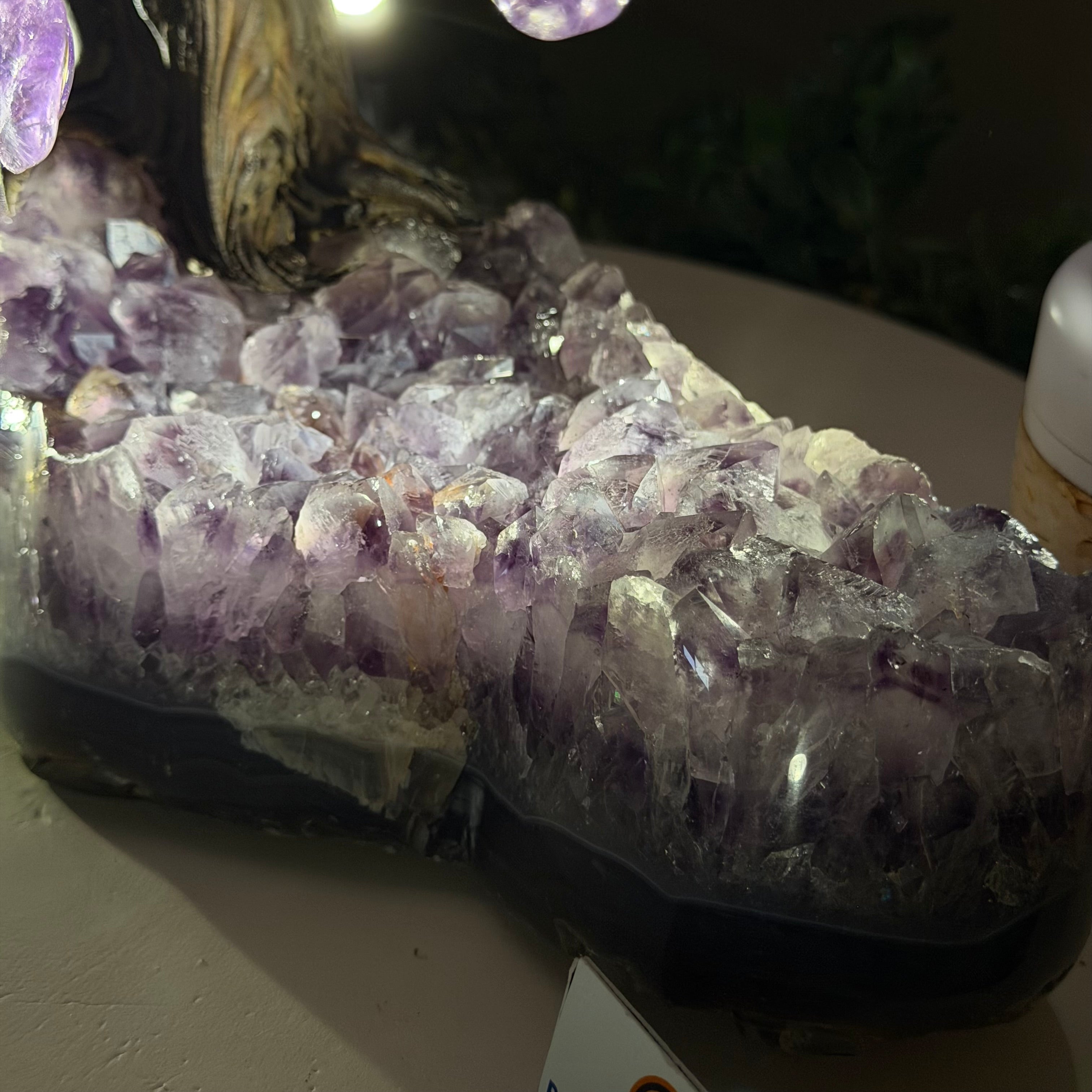 Special Amethyst Bonsai Gemstone Tree on a Polished Amethyst Cluster Base