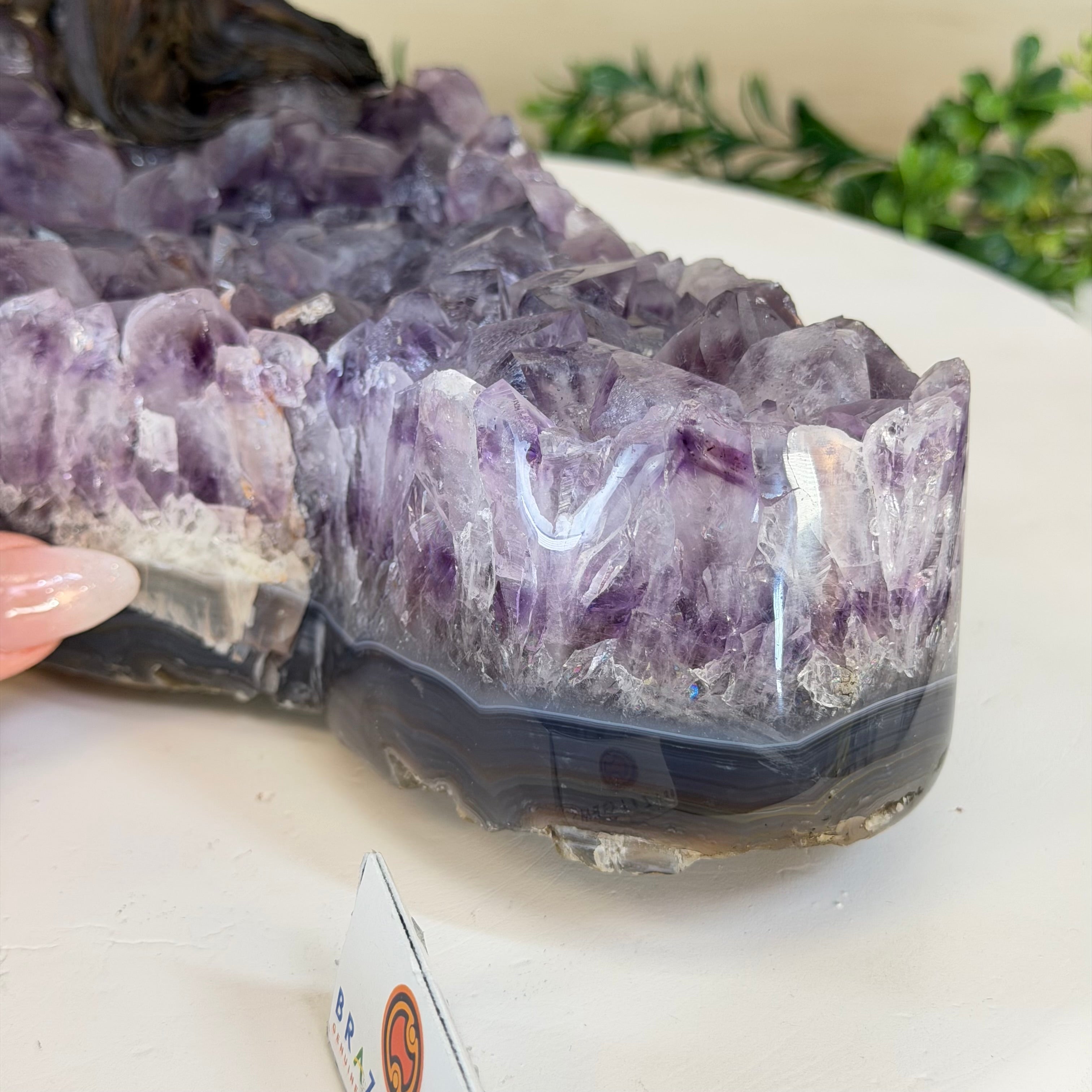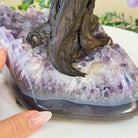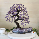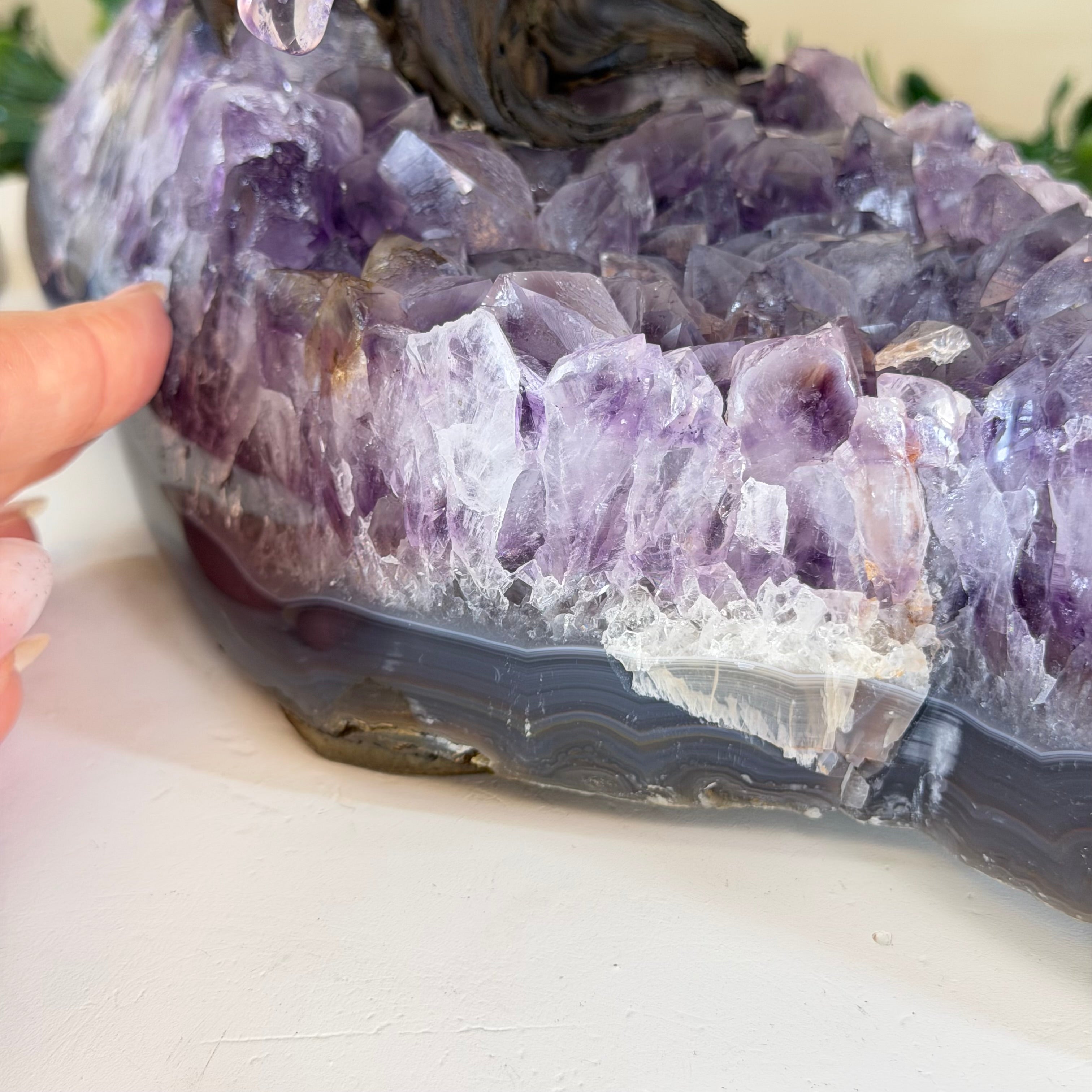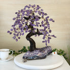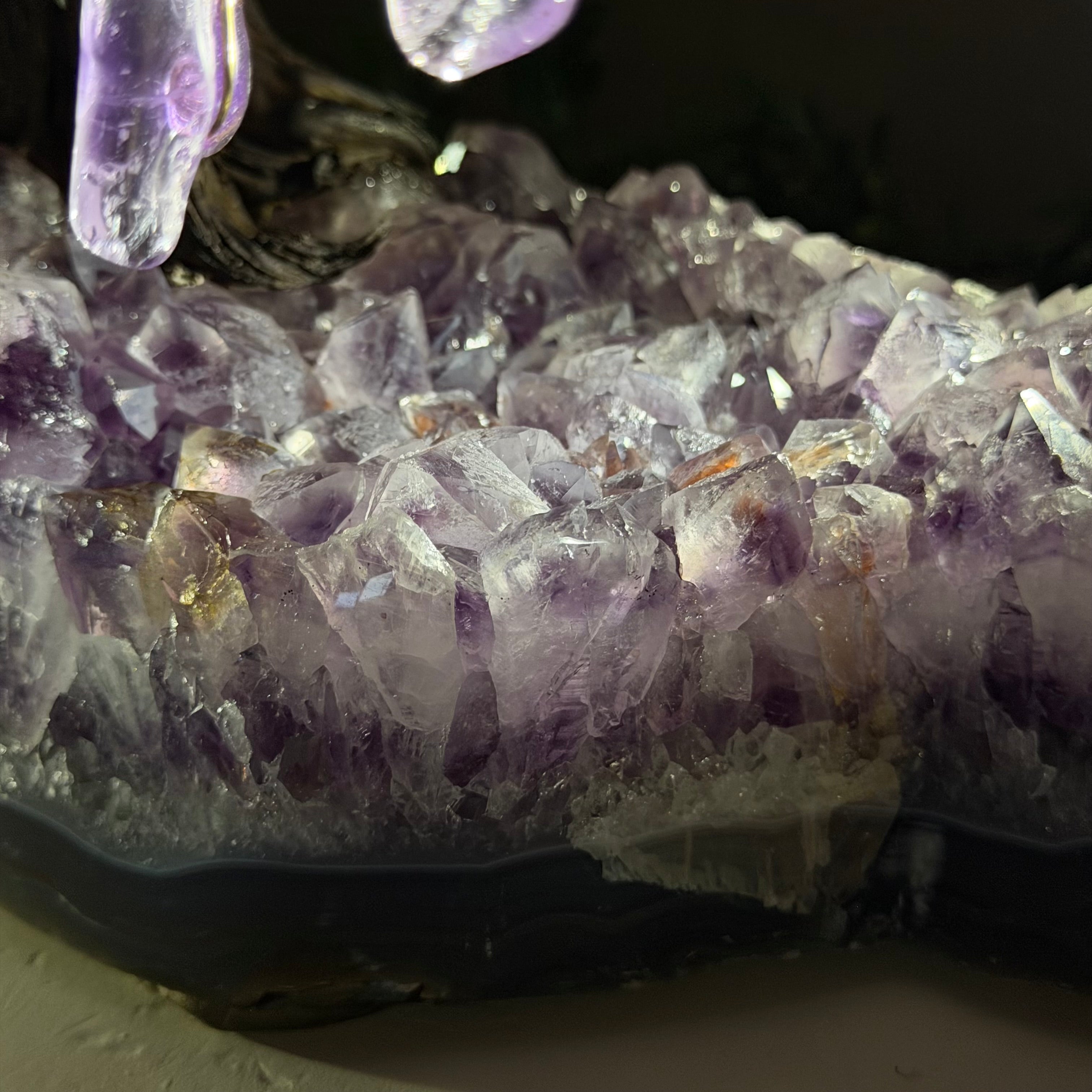 Special Amethyst Bonsai Gemstone Tree on a Polished Amethyst Cluster Base