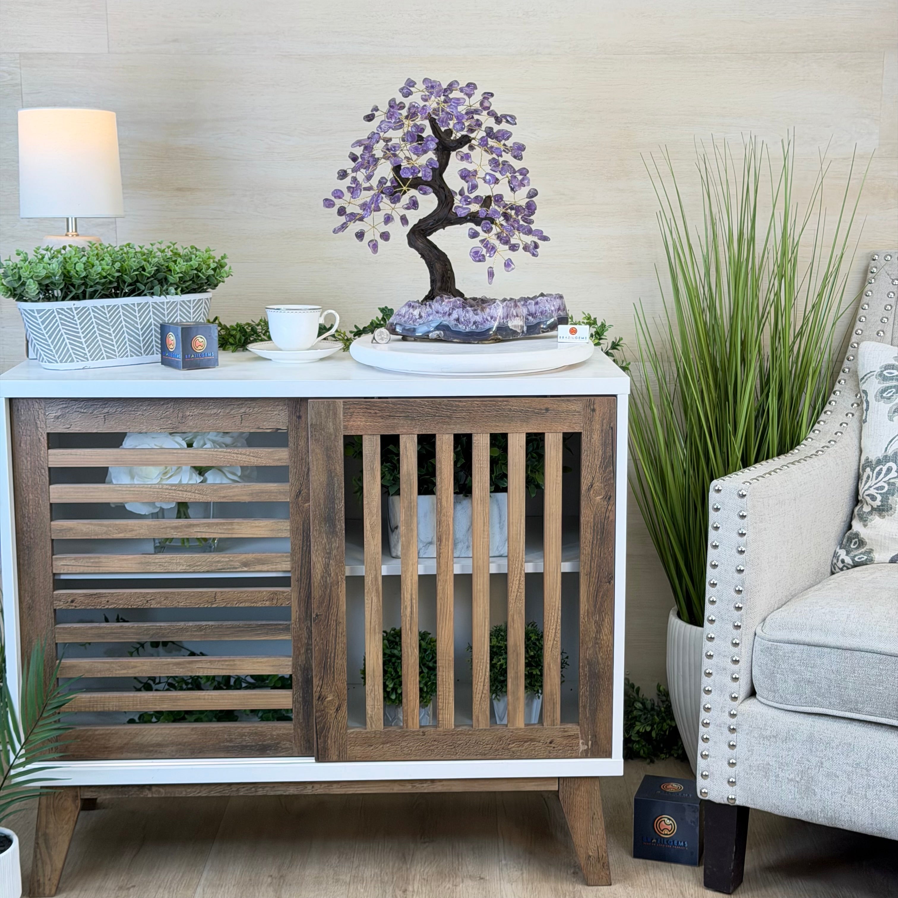 Rooted in a large natural Amethyst cluster, this tree is substantial in size—designed to become a focal point in any room, whether it’s a peaceful home corner or a thoughtful office space. It also makes a meaningful and lasting gift for someone special.
