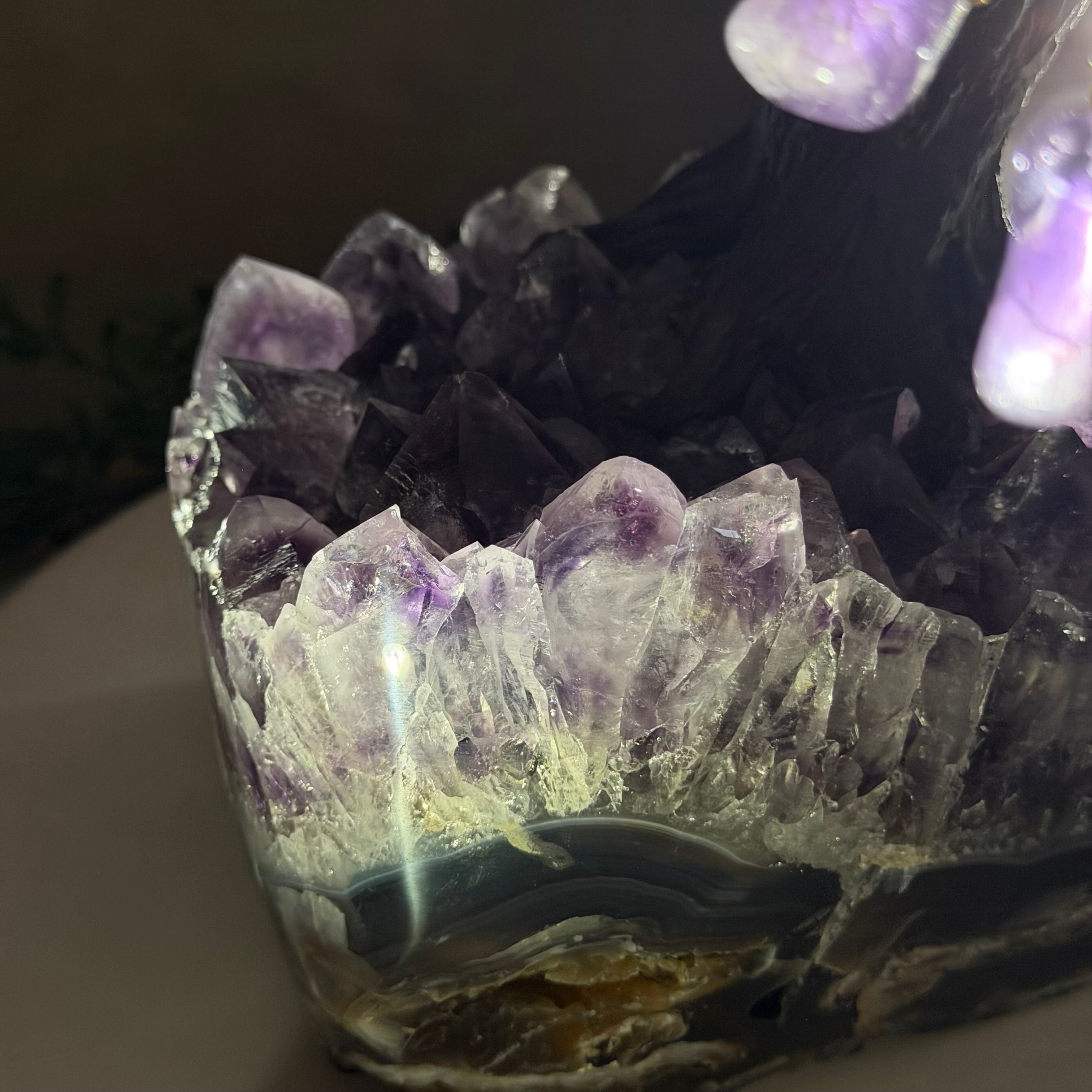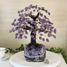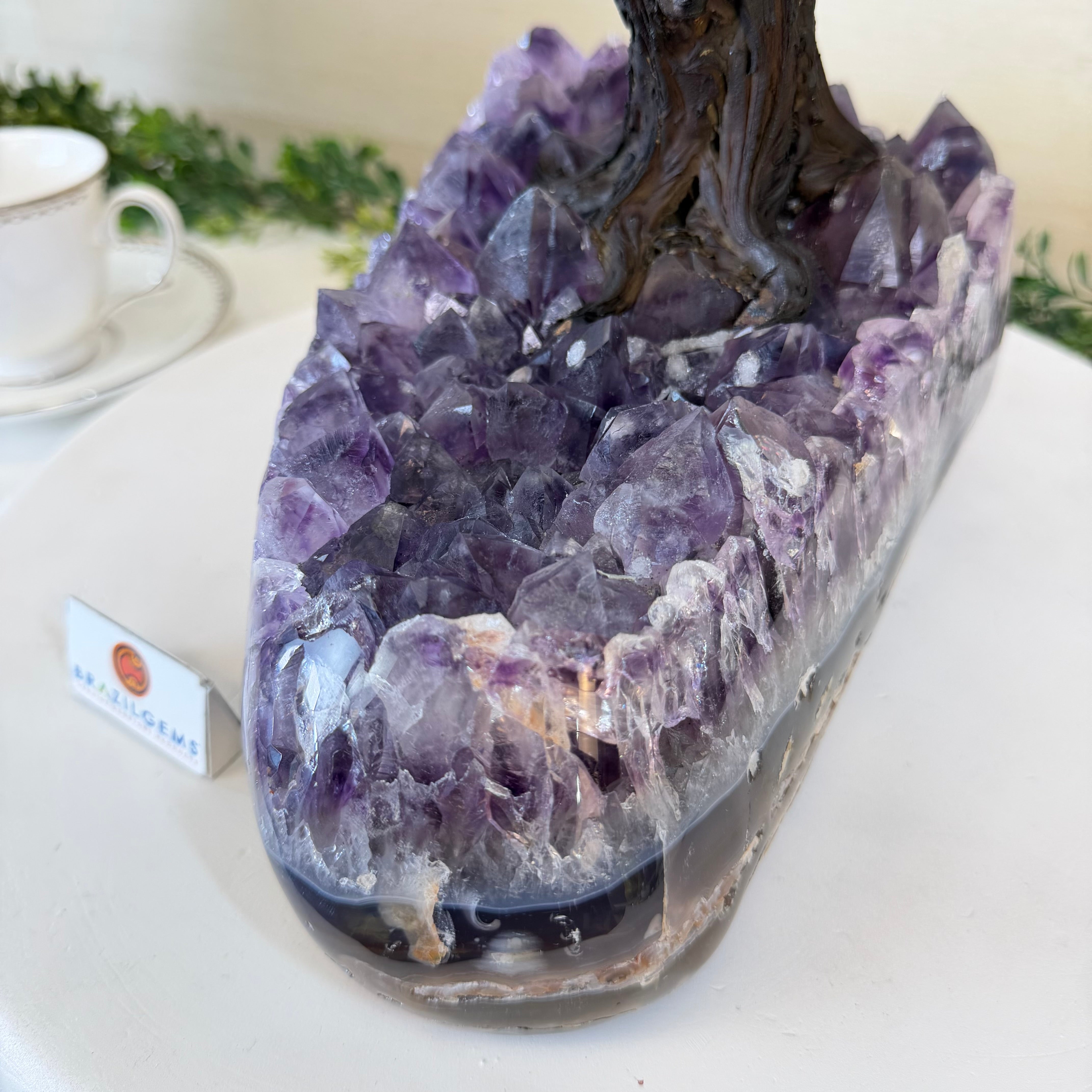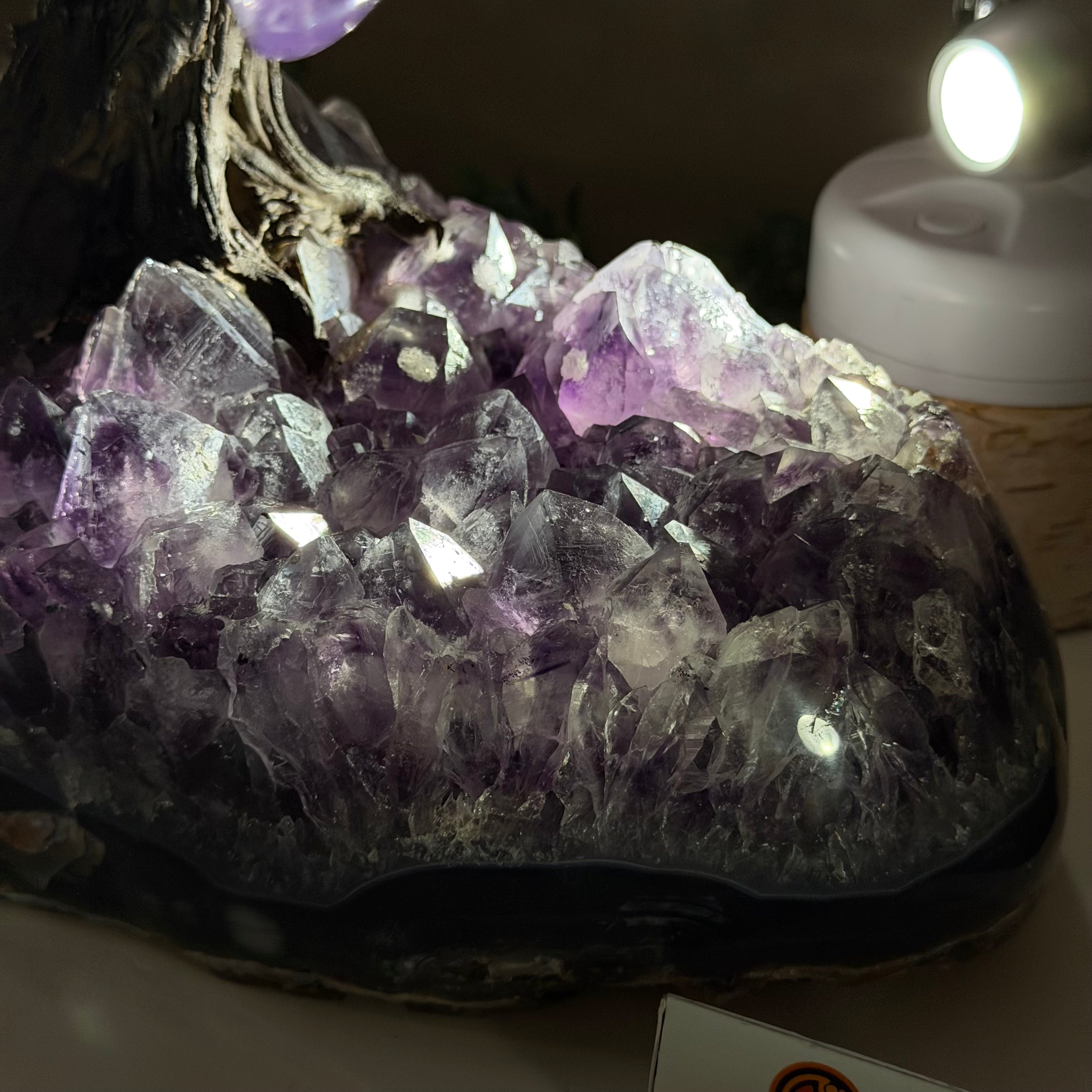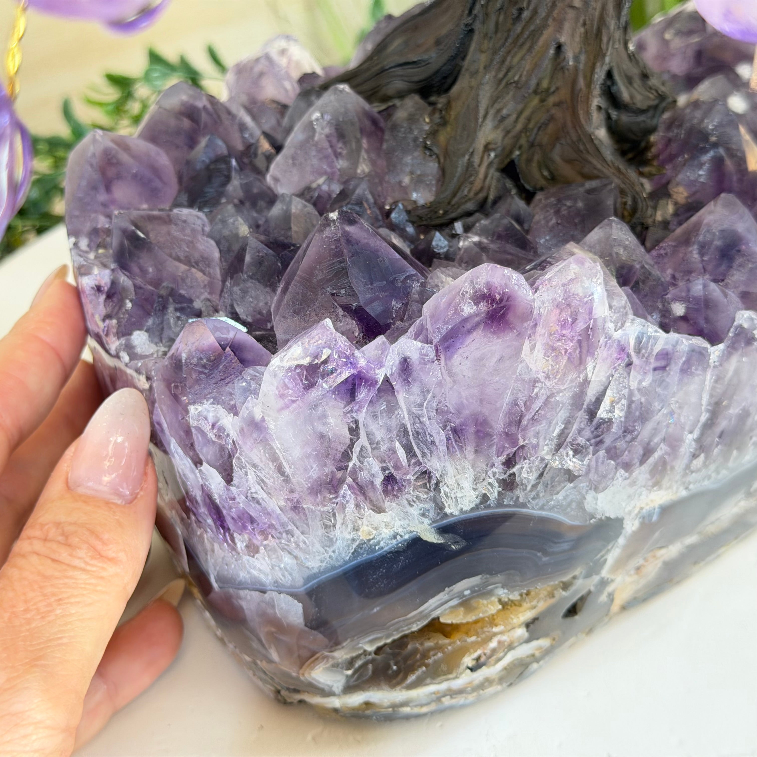 Special Amethyst Bonsai Gemstone Tree on a Polished Amethyst Cluster Base