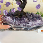 The process to make a gemstone tree like this is very extensive and meticulous. A special polished Amethyst cluster is selected for the base, the resin trunk and branches are crafted into a bonsai style by artisans in Brazil and then each gemstone is glued to the tree by hand. The result is a work of art that radiates harmony, care, and intention.